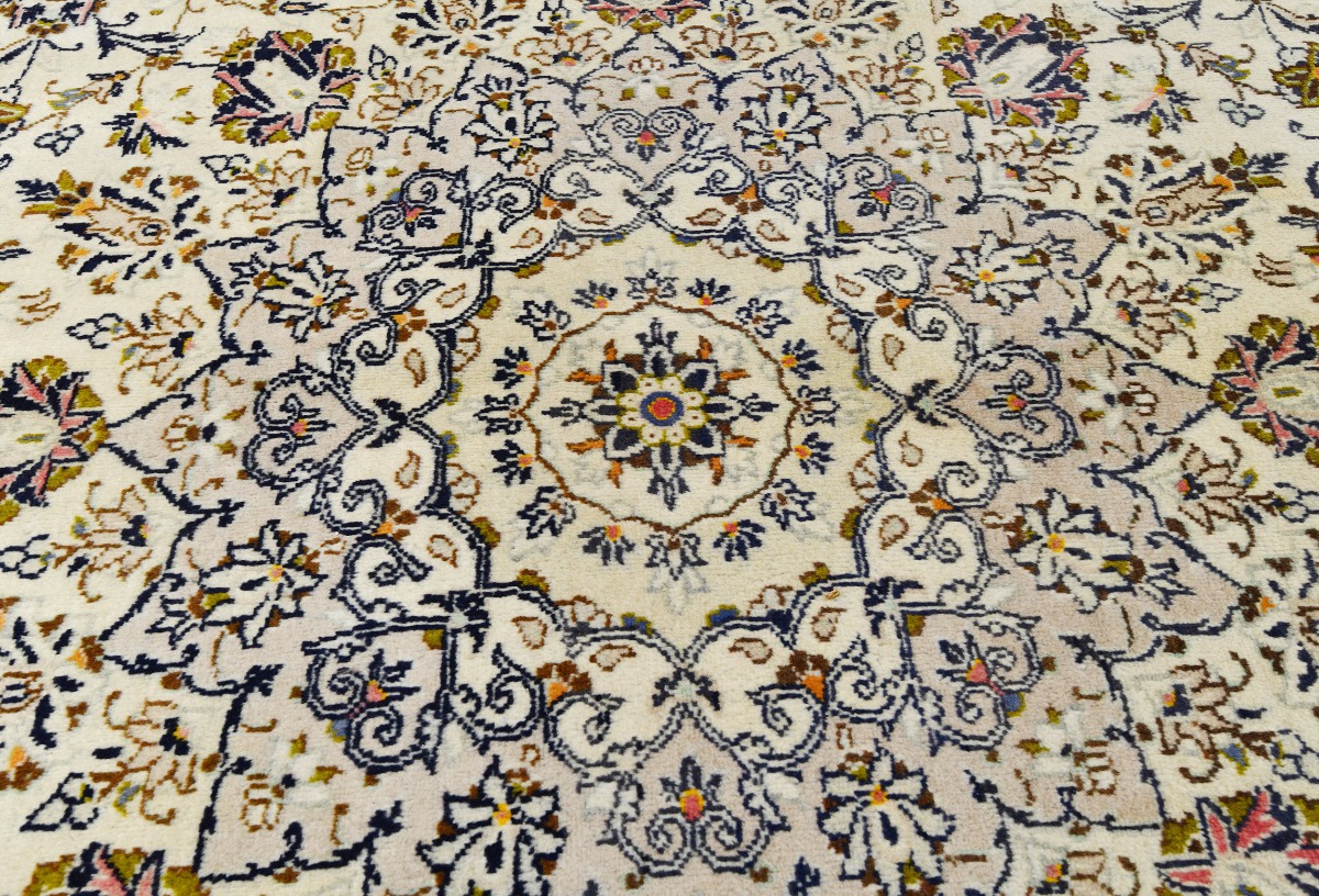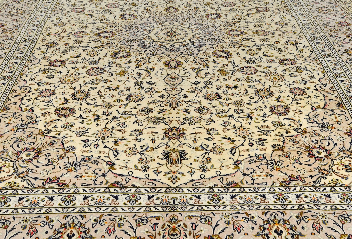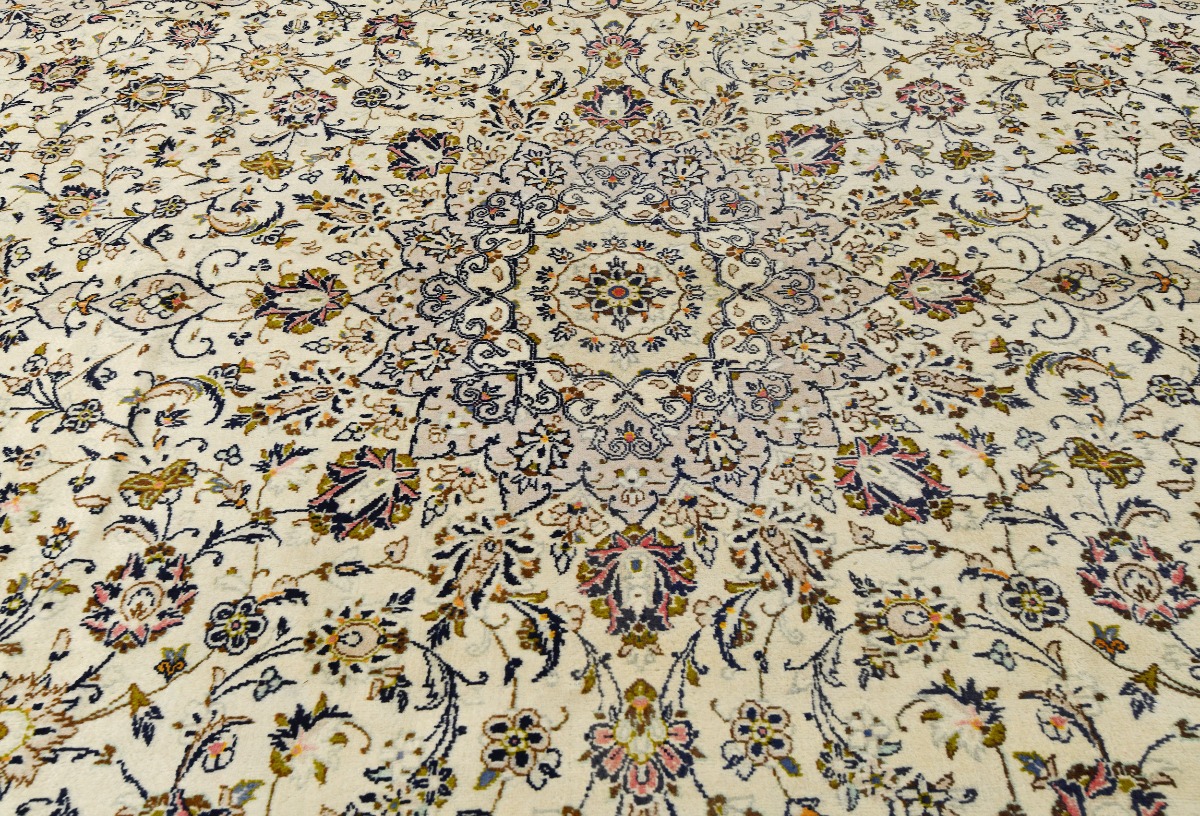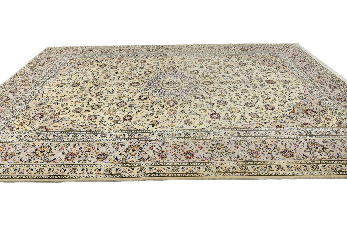 Vintage Cream Traditional 10X13 Kashan Persian Rug