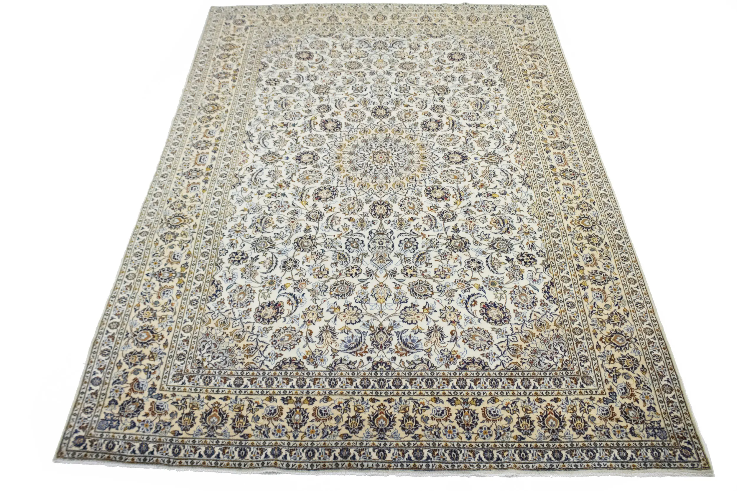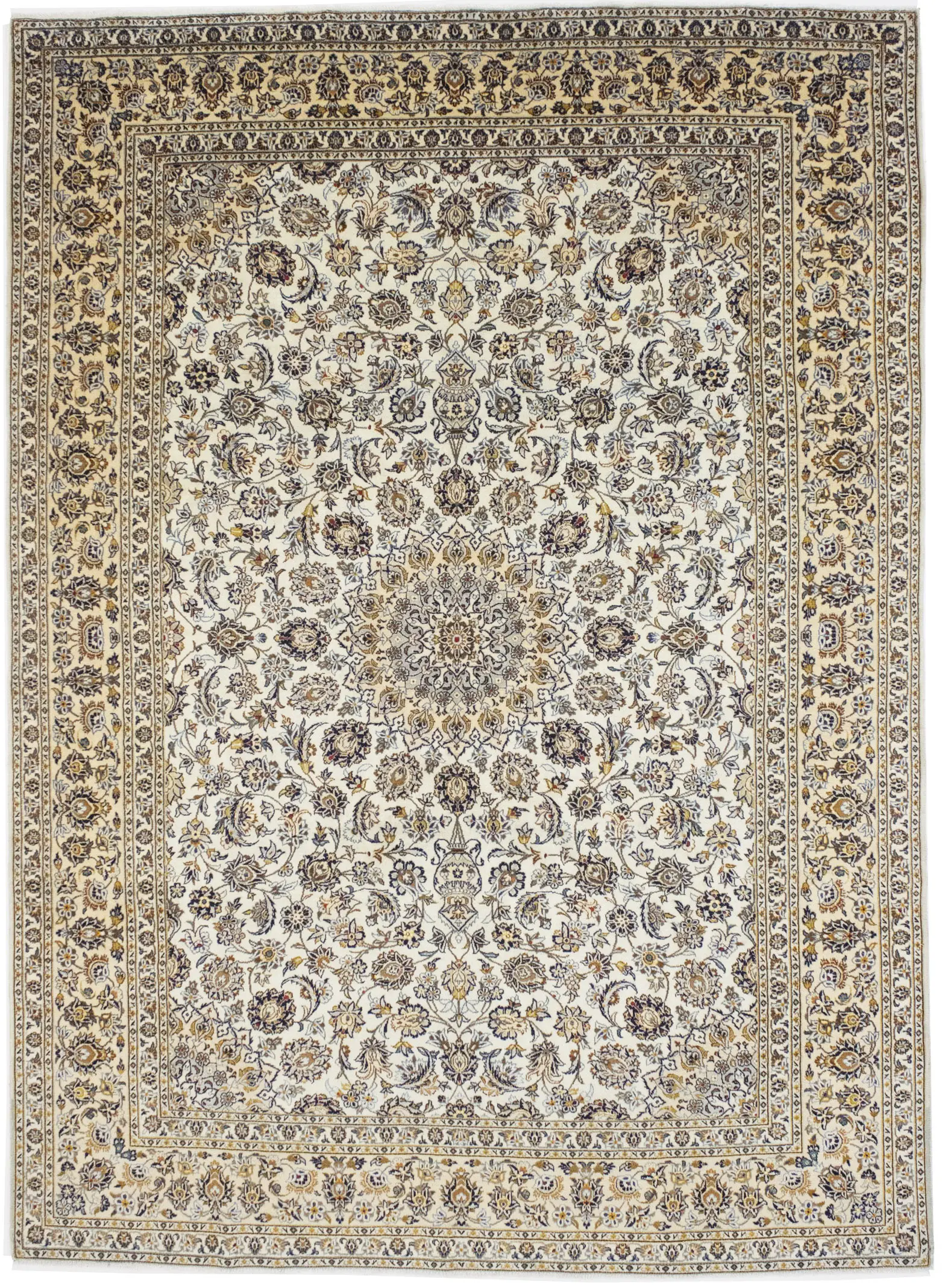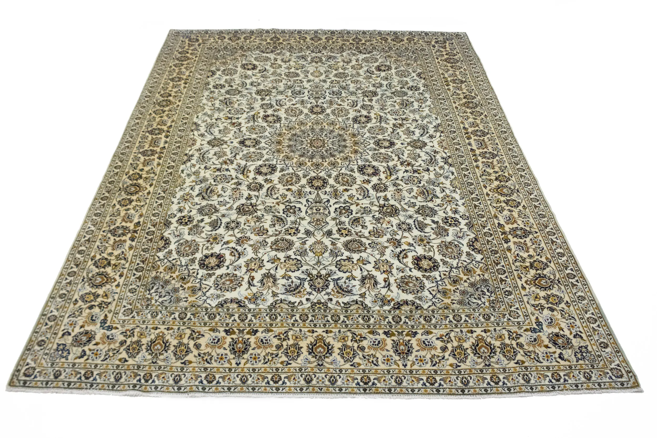 Vintage Cream Traditional 10X14 Kashan Persian Rug
