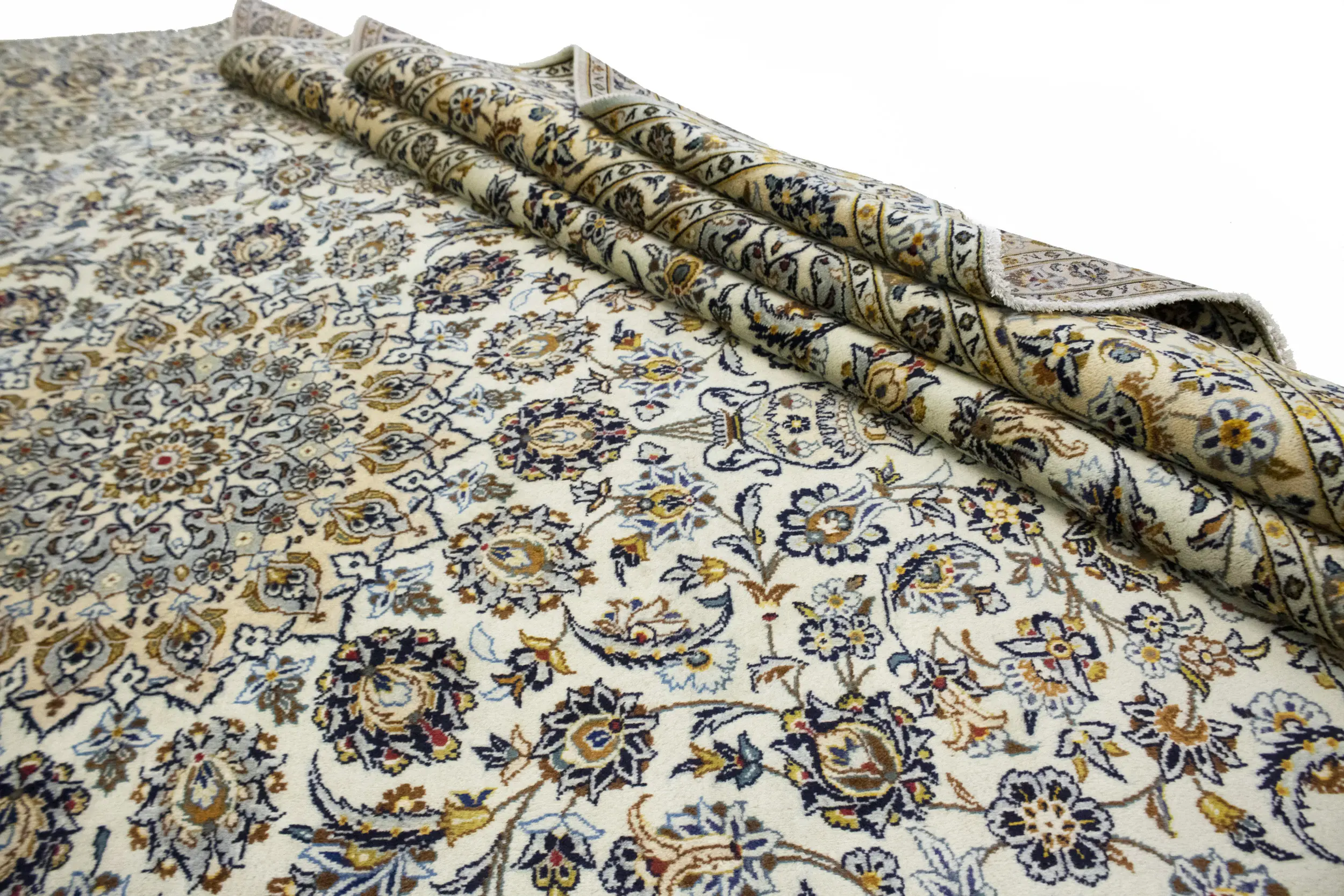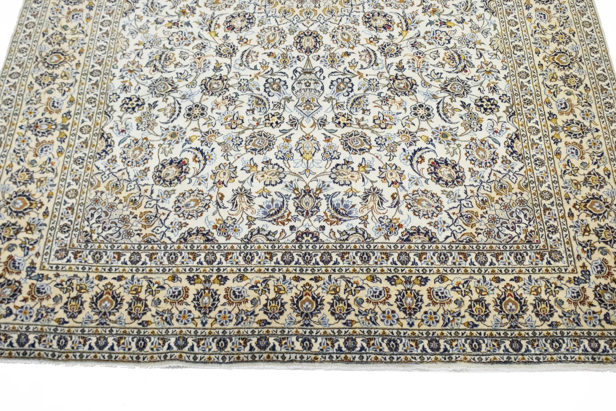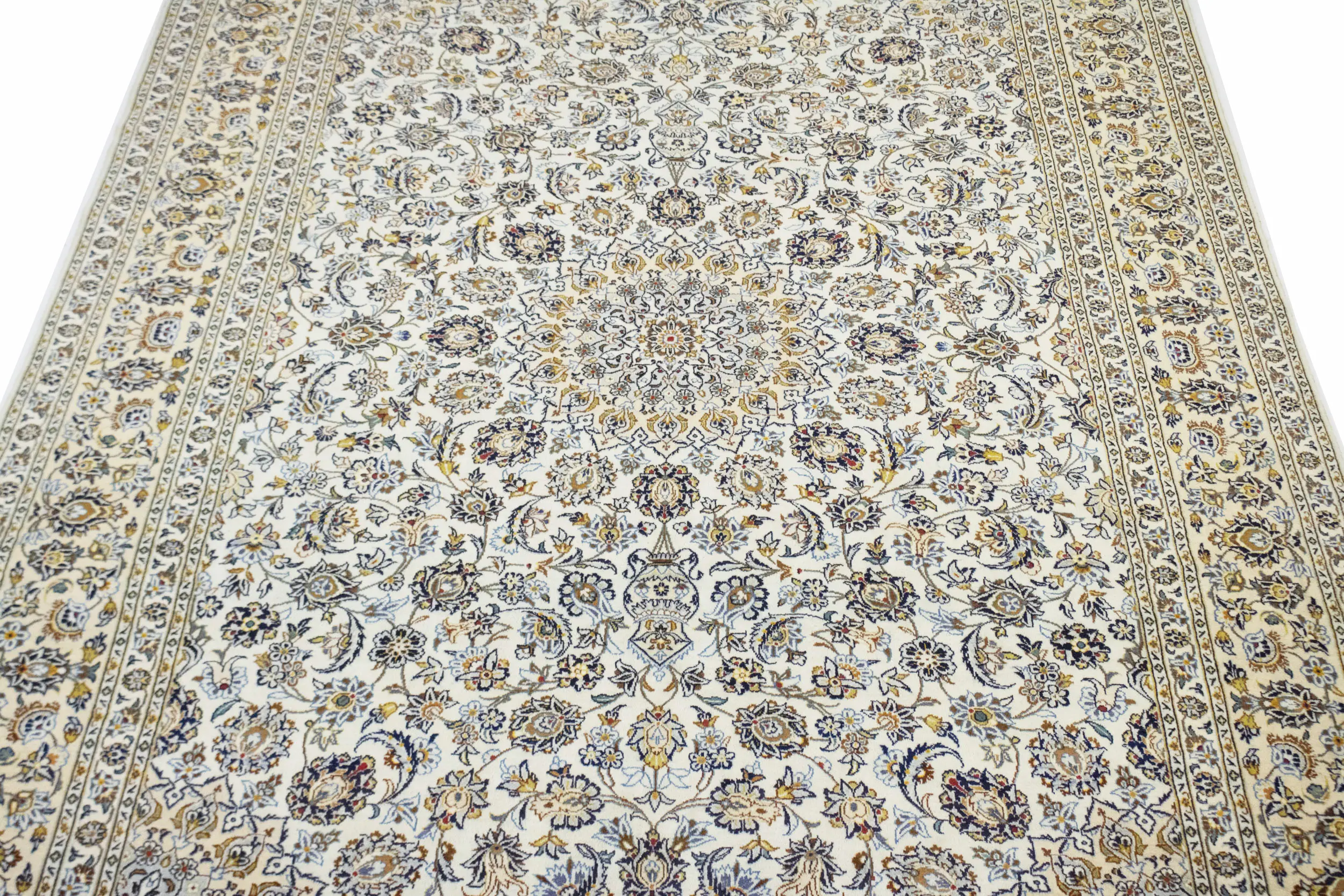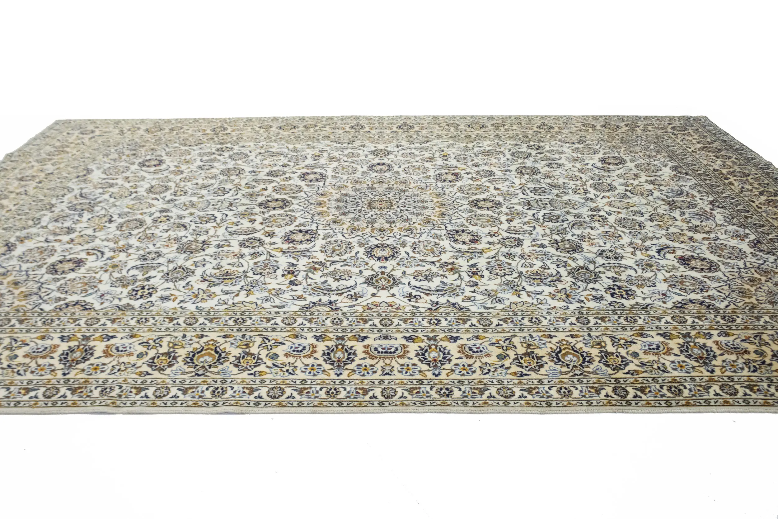 Vintage Cream Traditional 10X14 Kashan Persian Rug