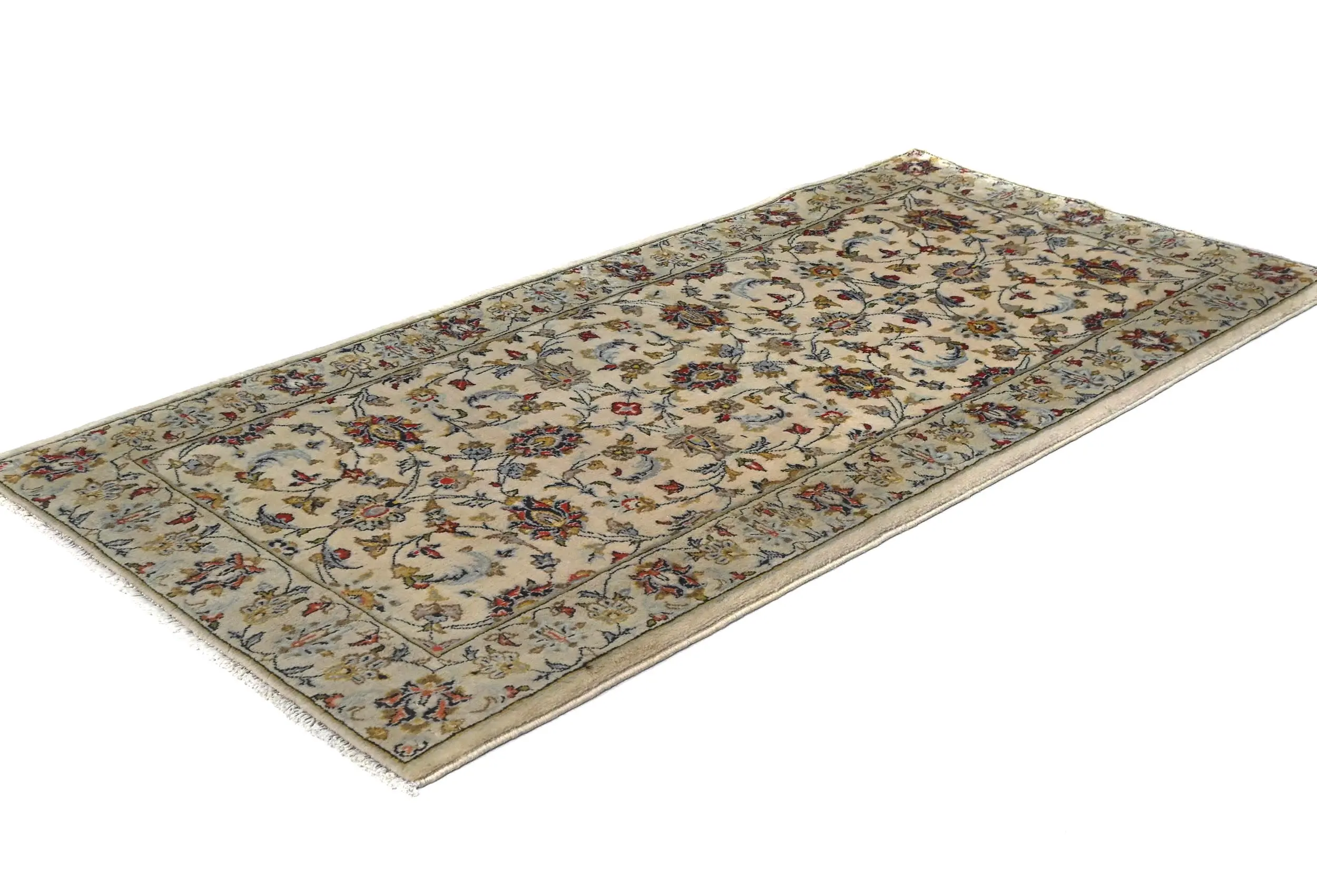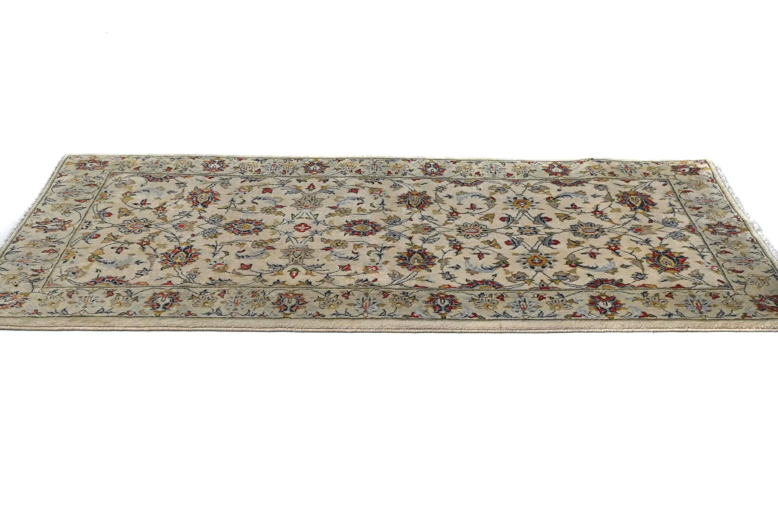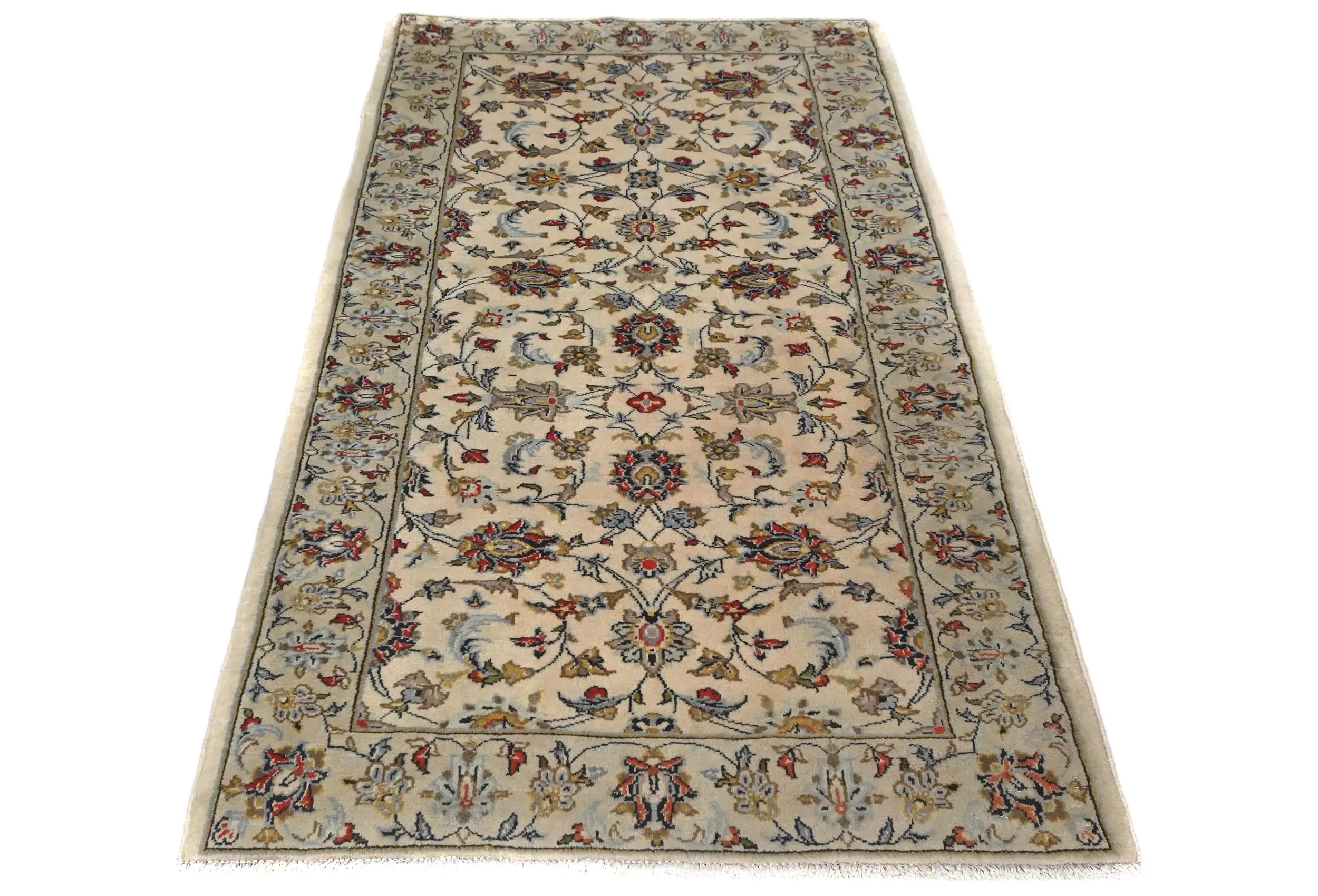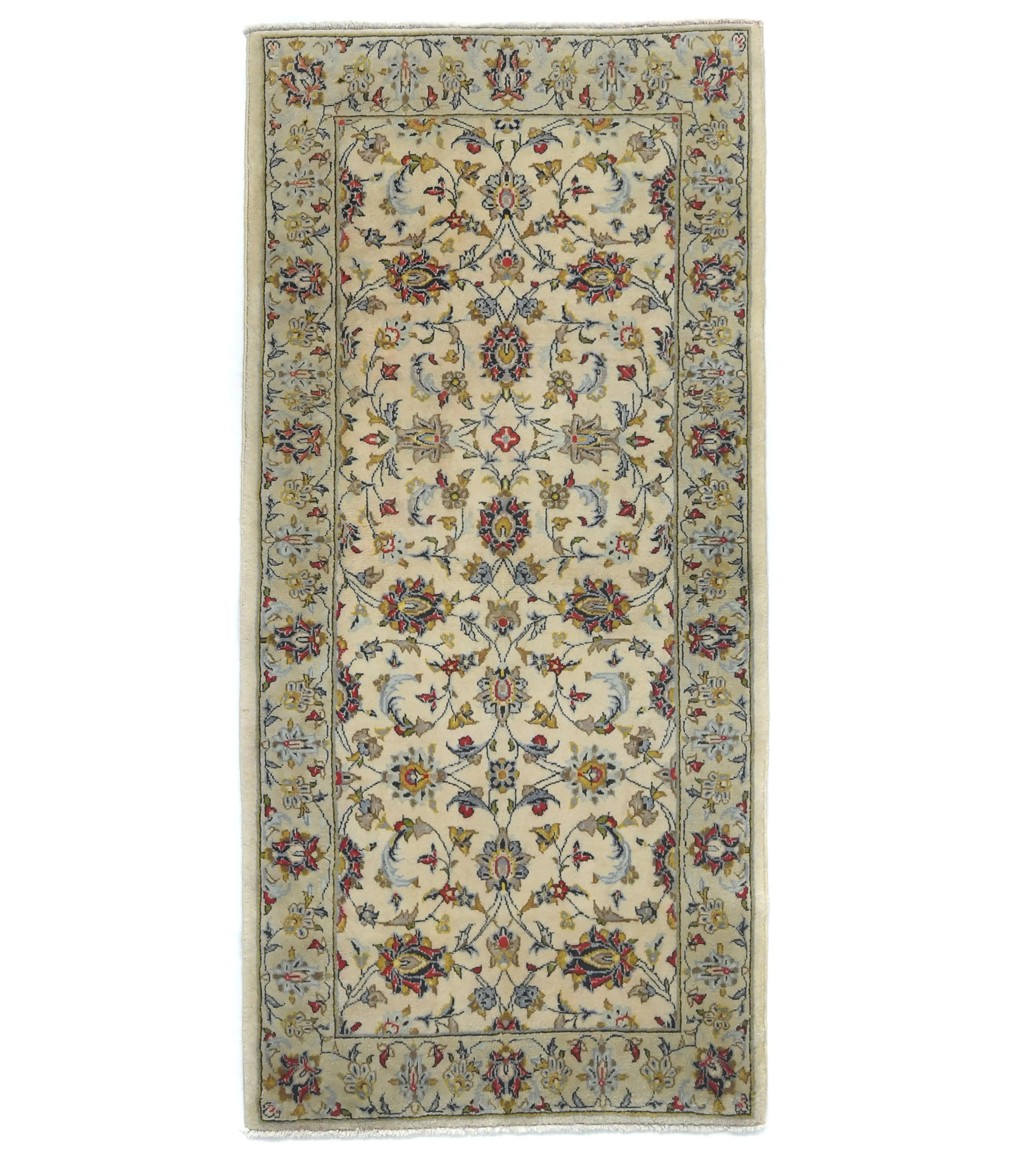 Vintage Cream Traditional 2'7X5'4 Kashan Persian Rug
