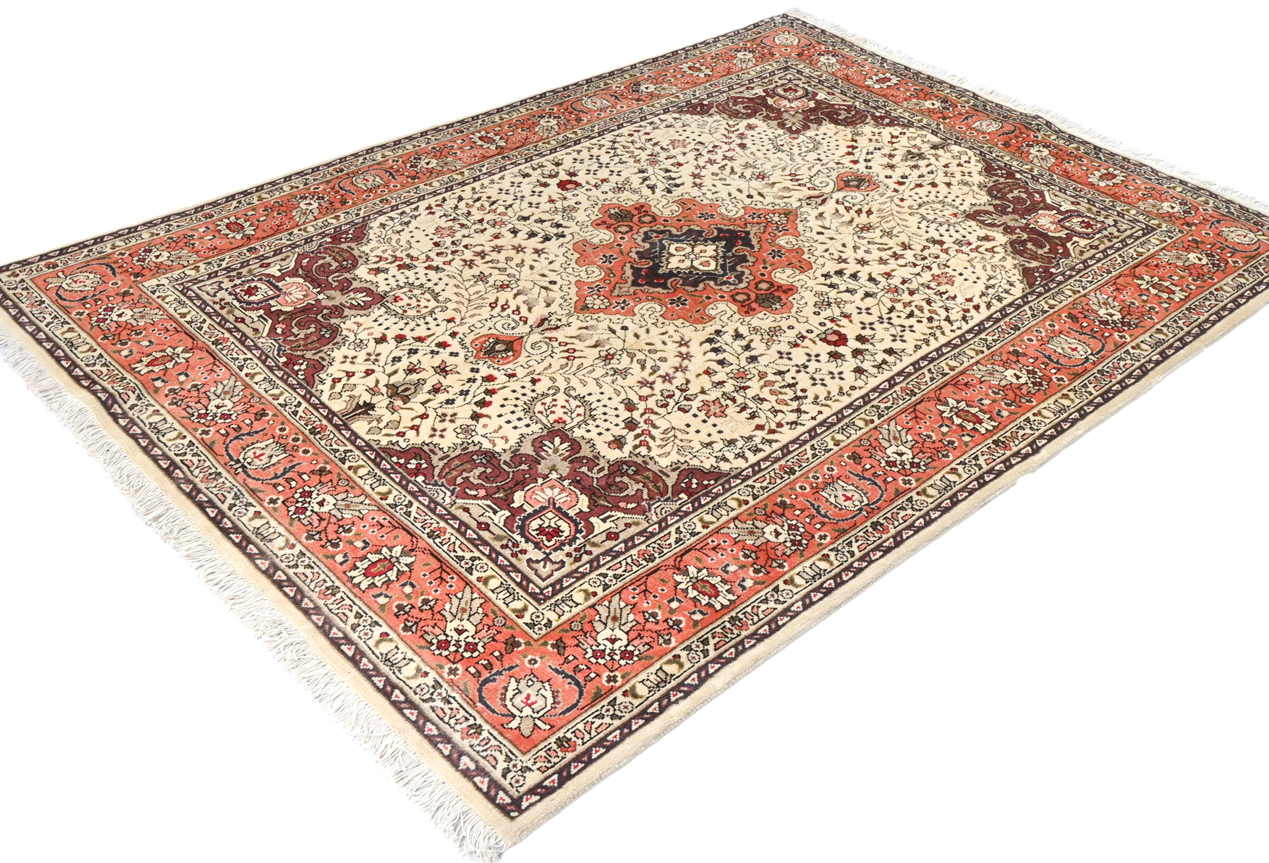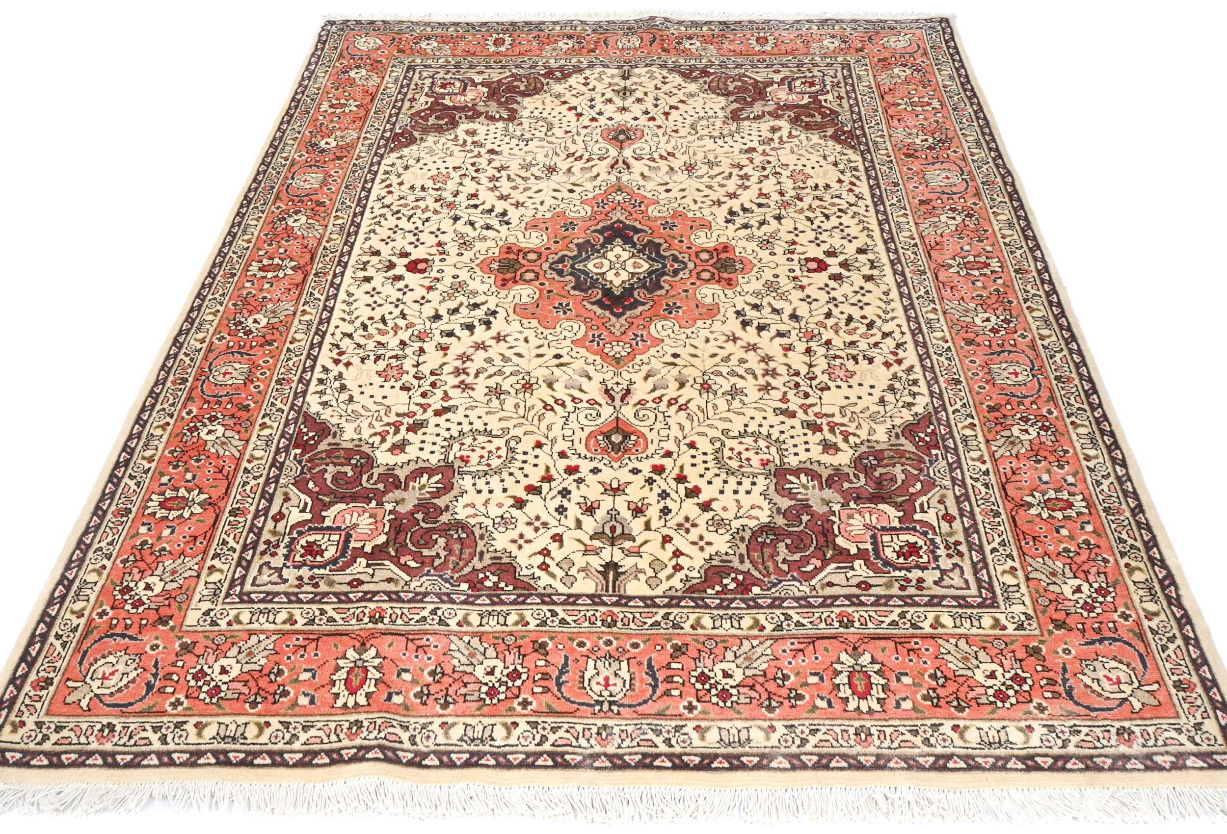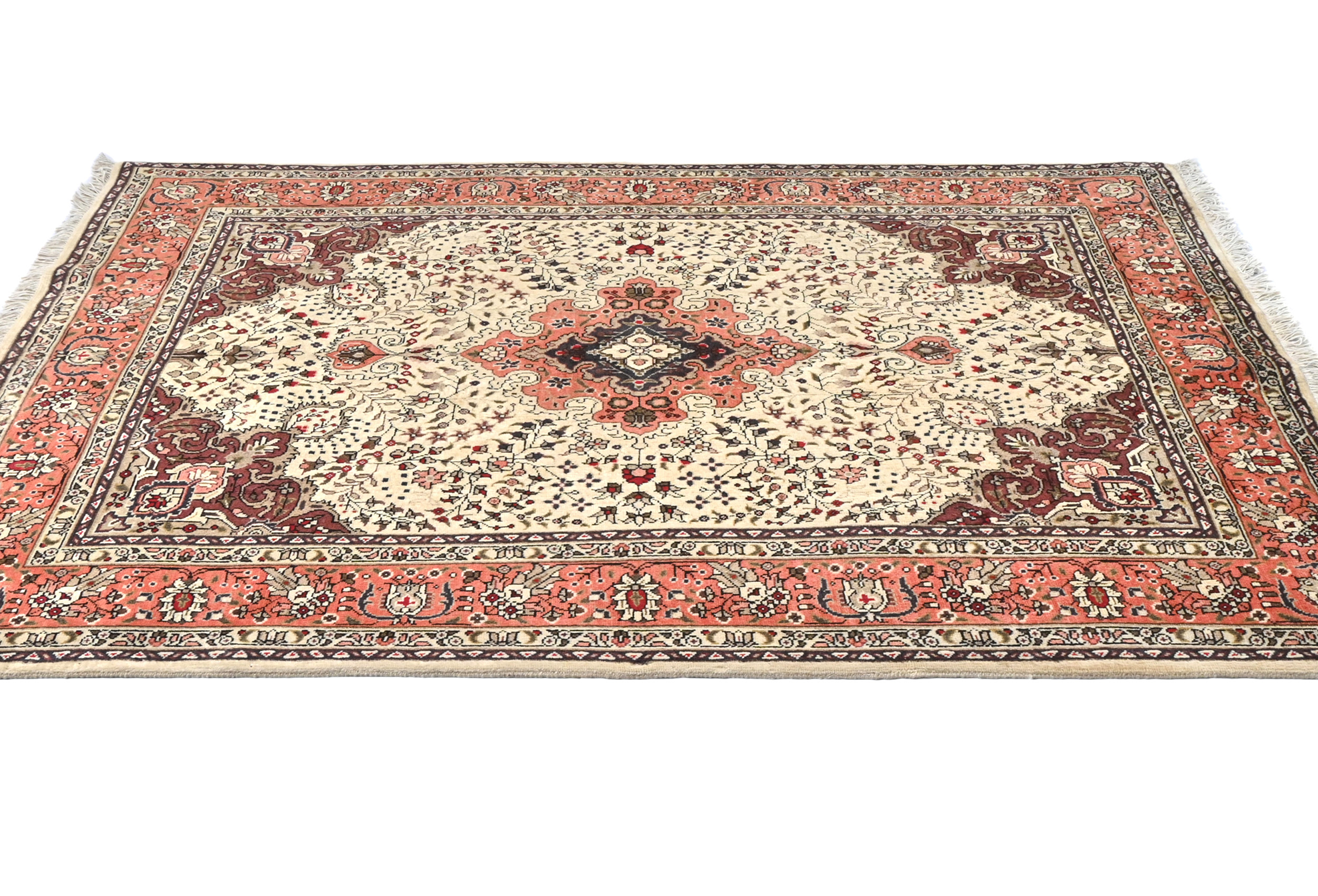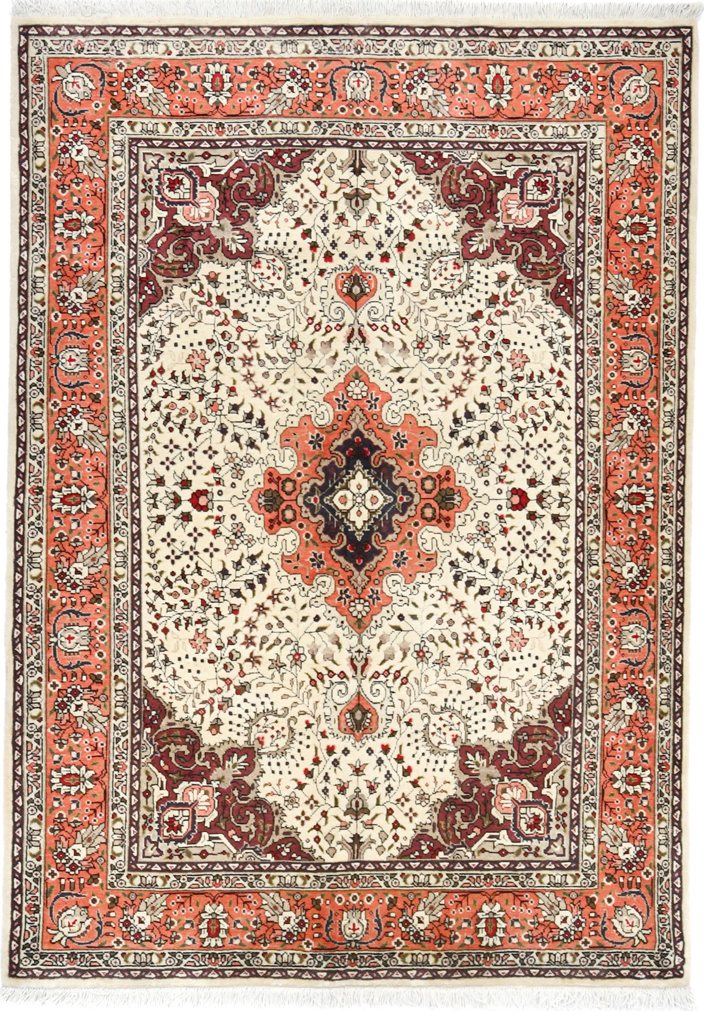 Vintage Cream Traditional 5X7 Tabriz Persian Rug