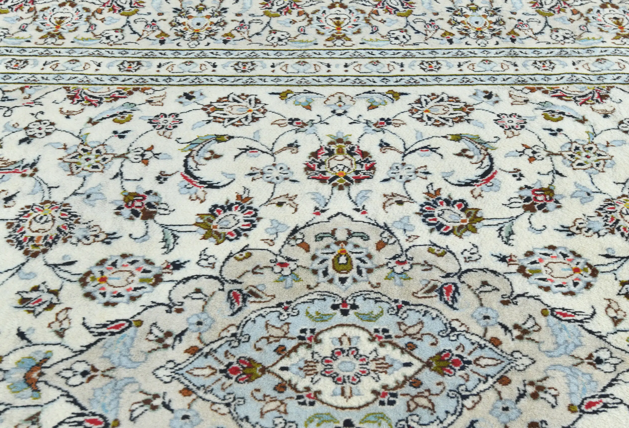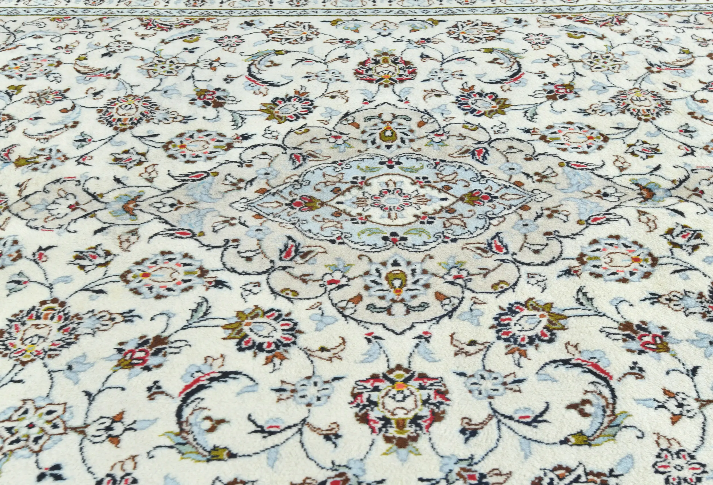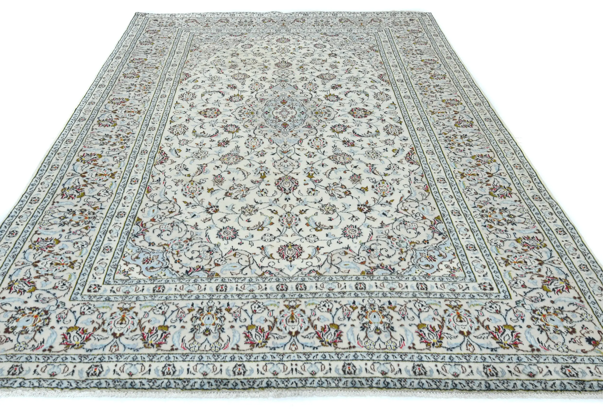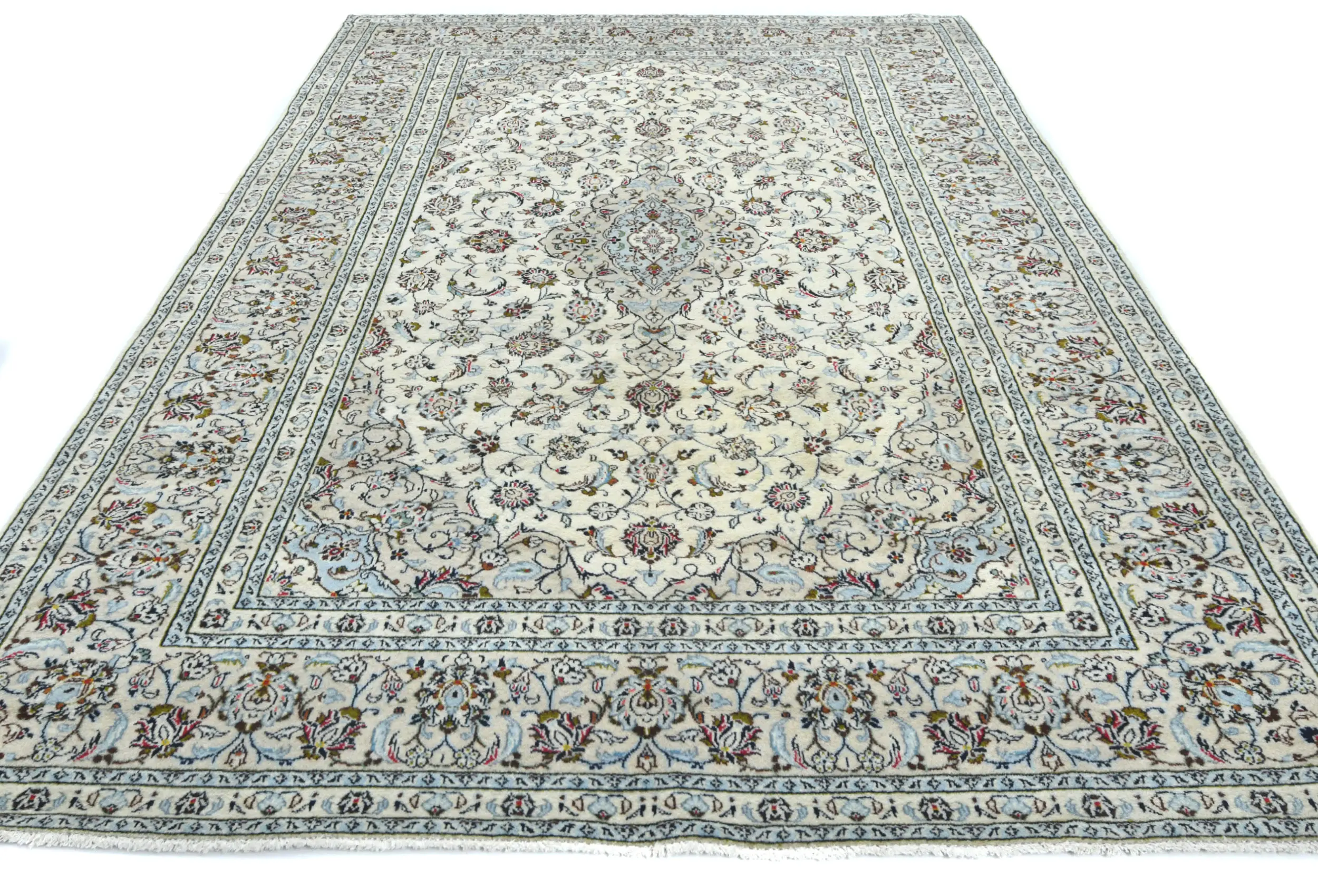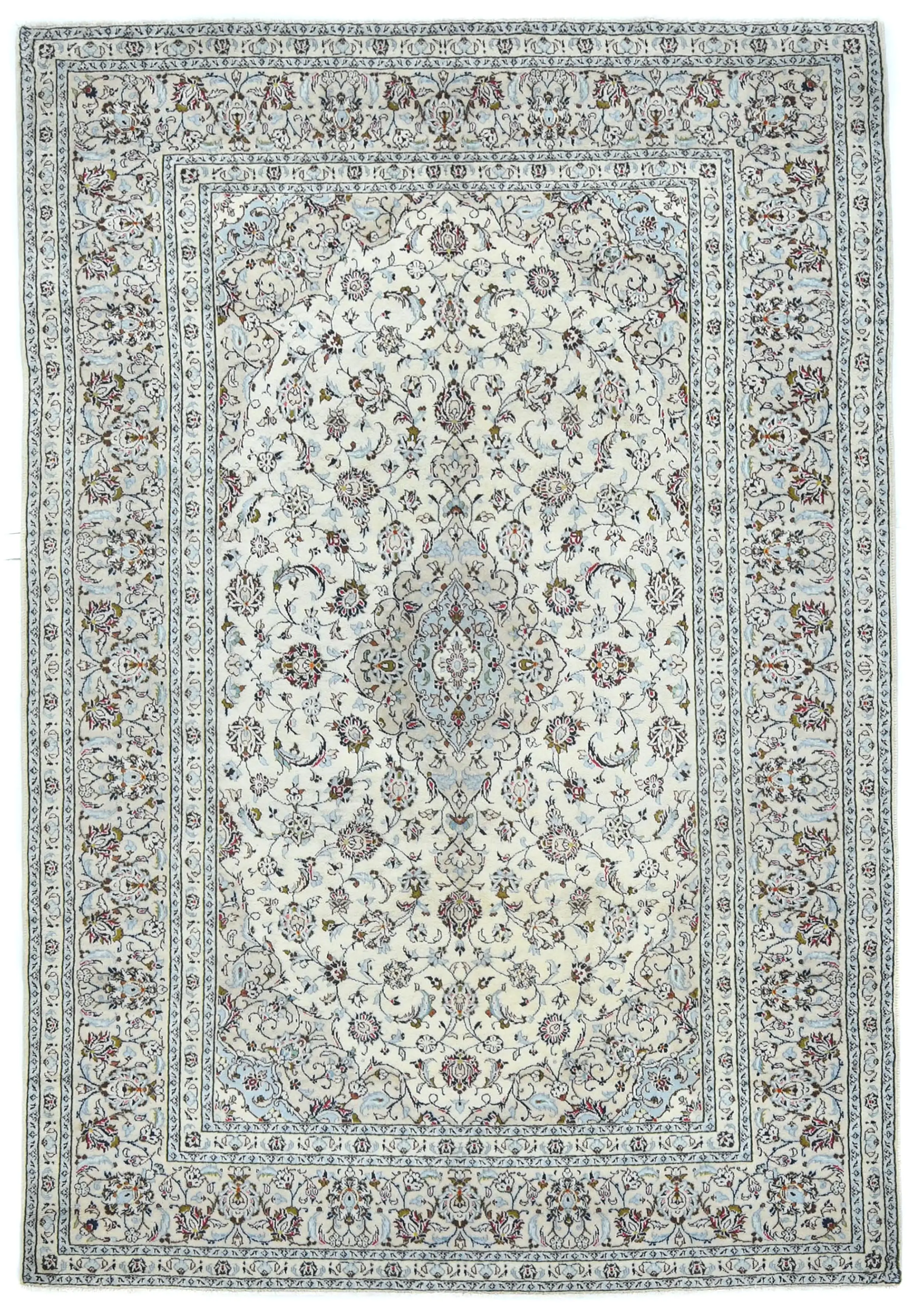 Vintage Cream Traditional 6'3X9'5 Kashan Persian Rug