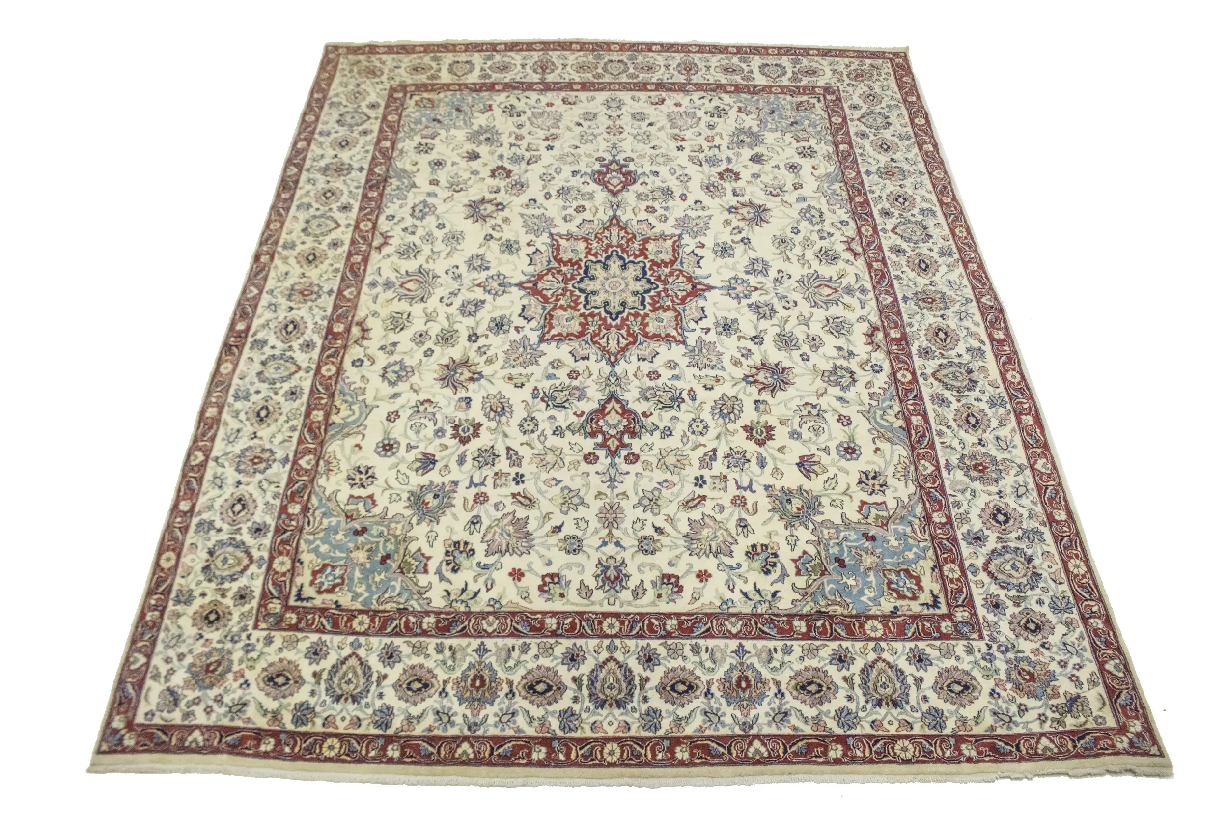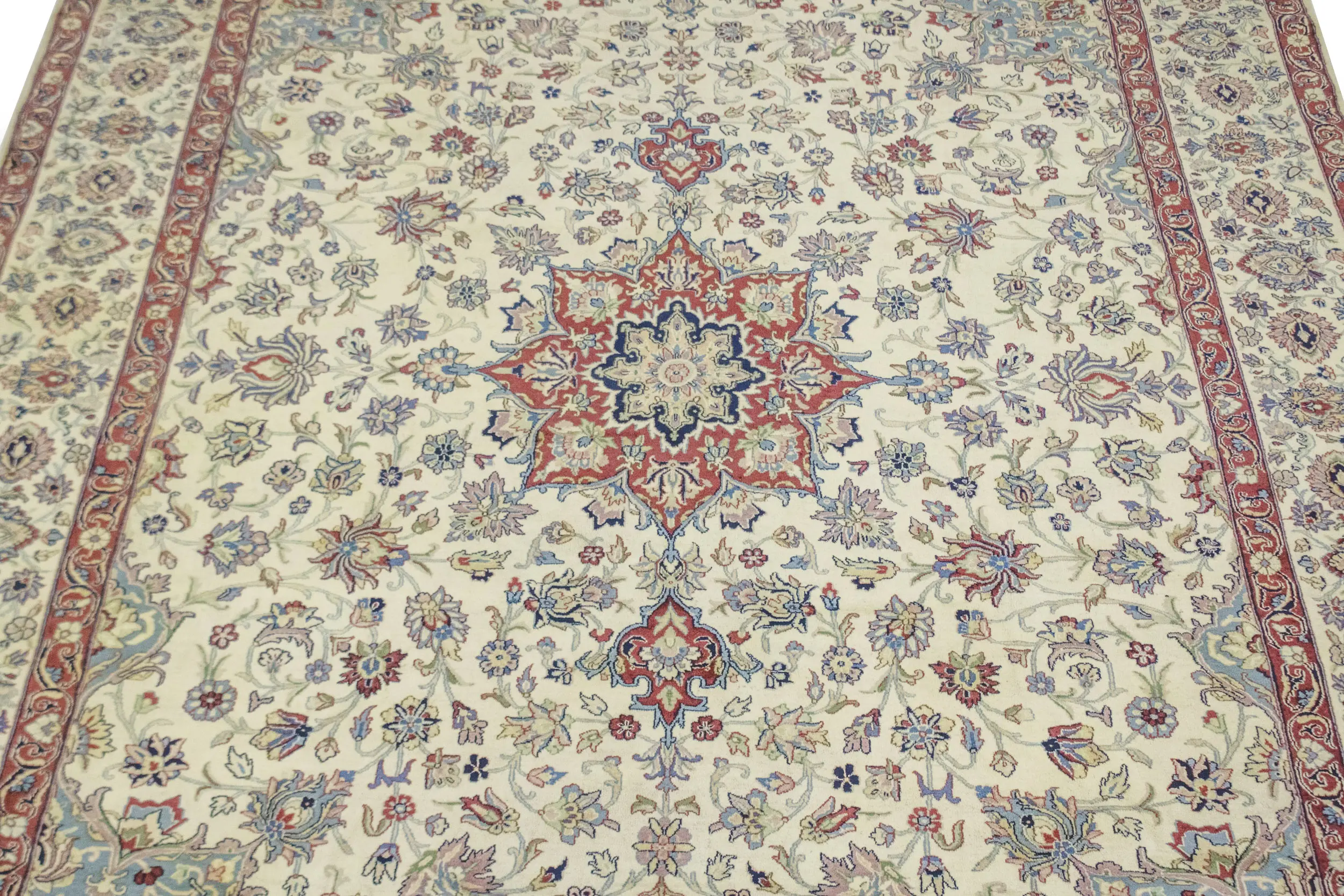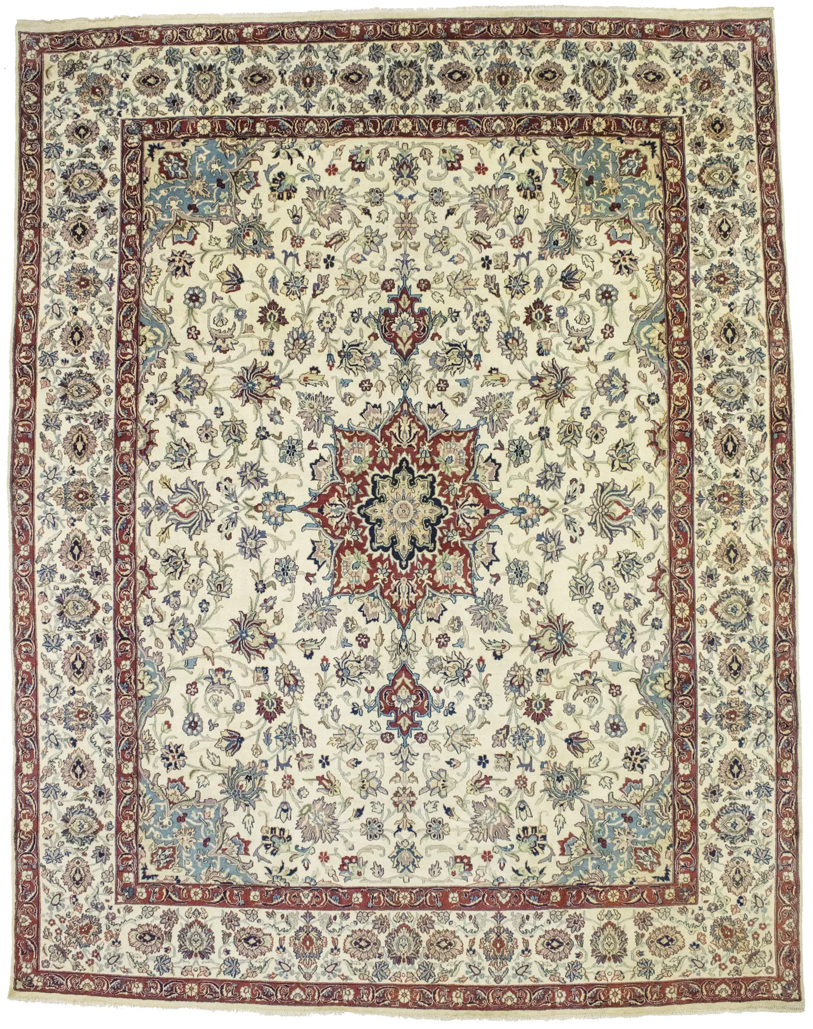 Vintage Cream Traditional 9X12 Isfahan Persian Rug