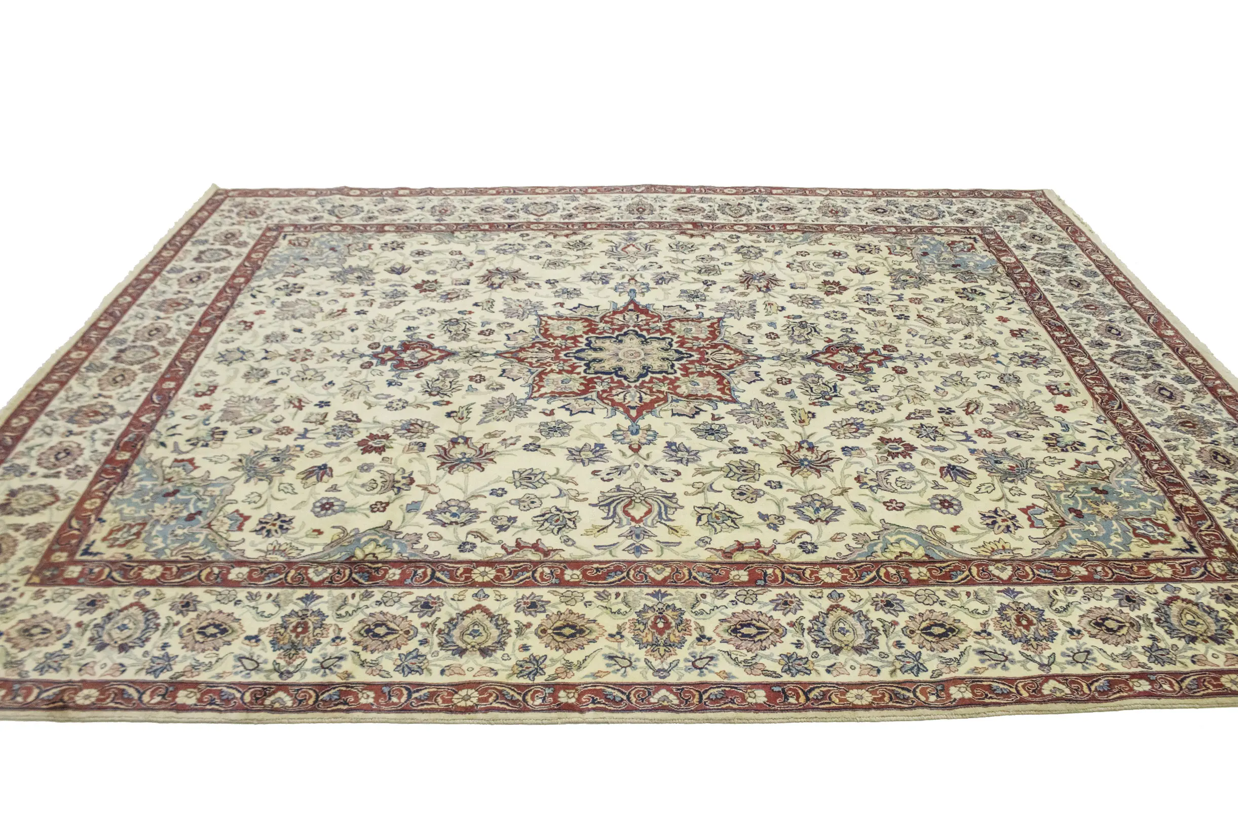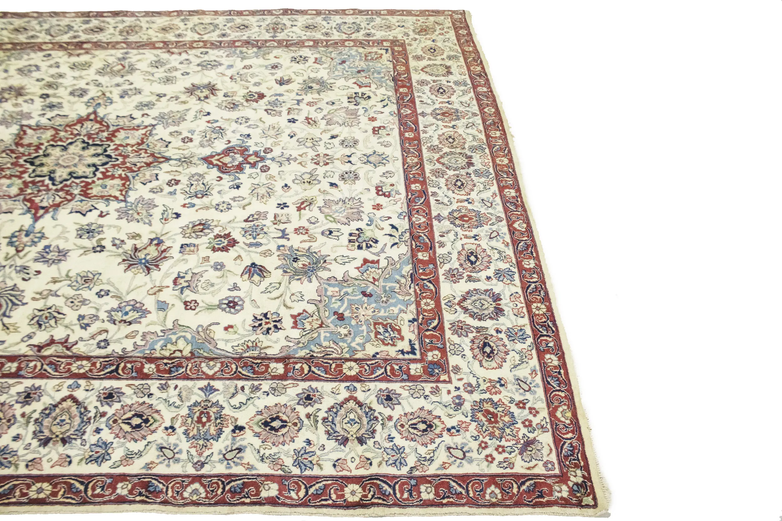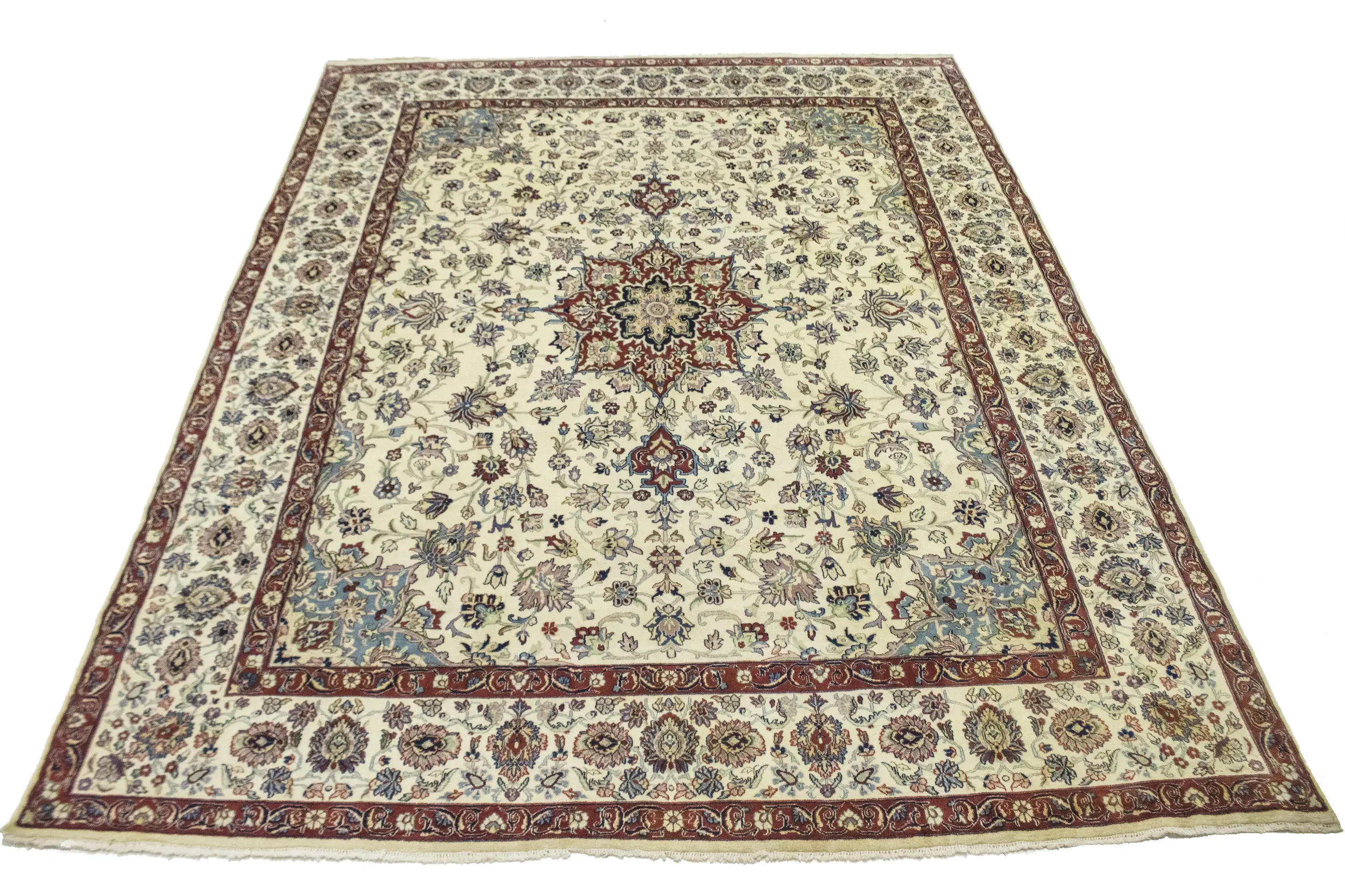 Vintage Cream Traditional 9X12 Isfahan Persian Rug