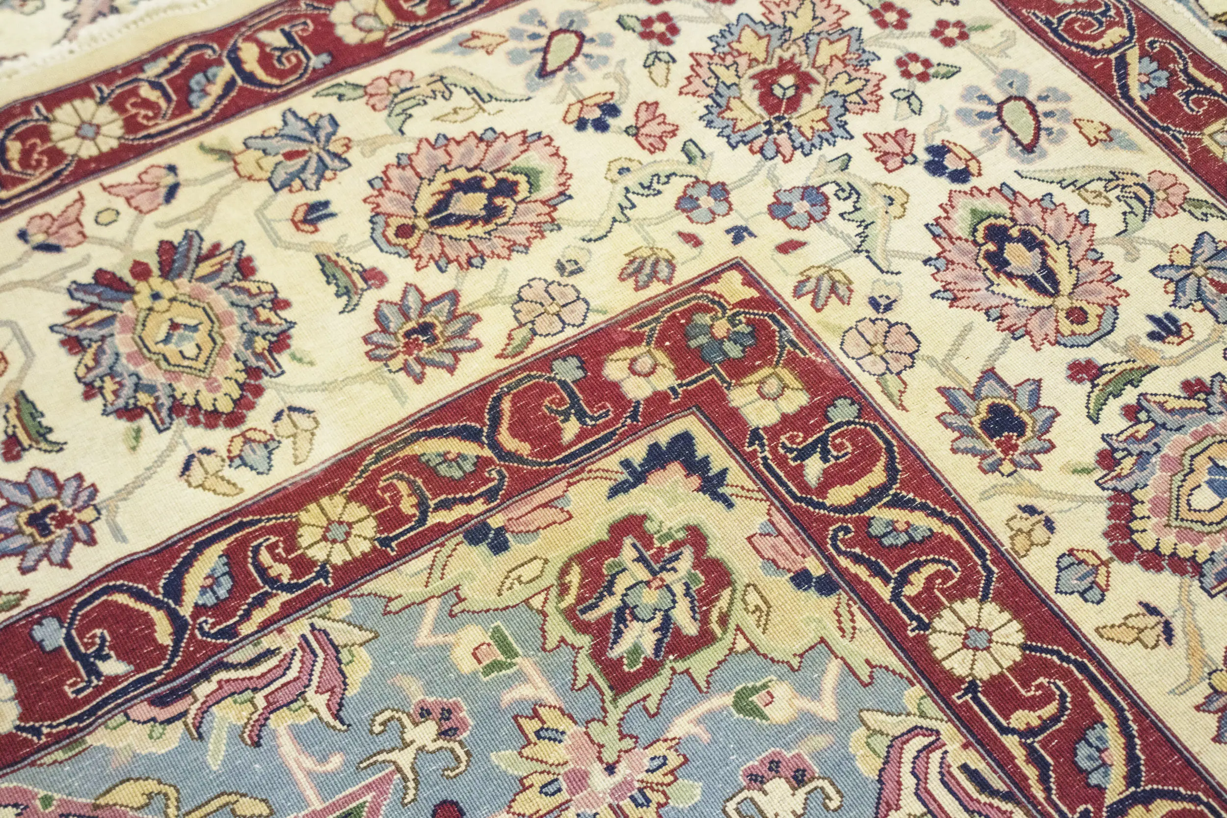 This original 9X12 cream vintage Persian rug was well-constructed by the hands of master weavers motivated by a variety of stunning artistic designs, to recreate the aged look of the exceptional piece with a richness of color and developed decorative floral background field. What set this traditional Oriental area rug from the others are the material and dye used (wool pile and cotton foundation), knot count, ancient designs, fantastic grades, and its regional historical connection: it has deep roots, from the story of the people who produced it to the meaning of the symbols and colors displayed across its canvas that have been praised for centuries. This classic home décor carpet will be completely cozy and inviting that never will go out of style! Also, this Oriental rug would be among your most valuable treasures, it is a great investment that increase in value over time, and it will last a lifetime because was woven with high-quality, all-natural wool; it won’t rip, tear, or shed. Eco-friendly, opulent yet affordable; this Persian rug will give you an extra pop of character to help define your home environment with elegance and warmth that will capture the eyes and attention of your audience (homeowners, designers, decorators, family and friends). RT-7000