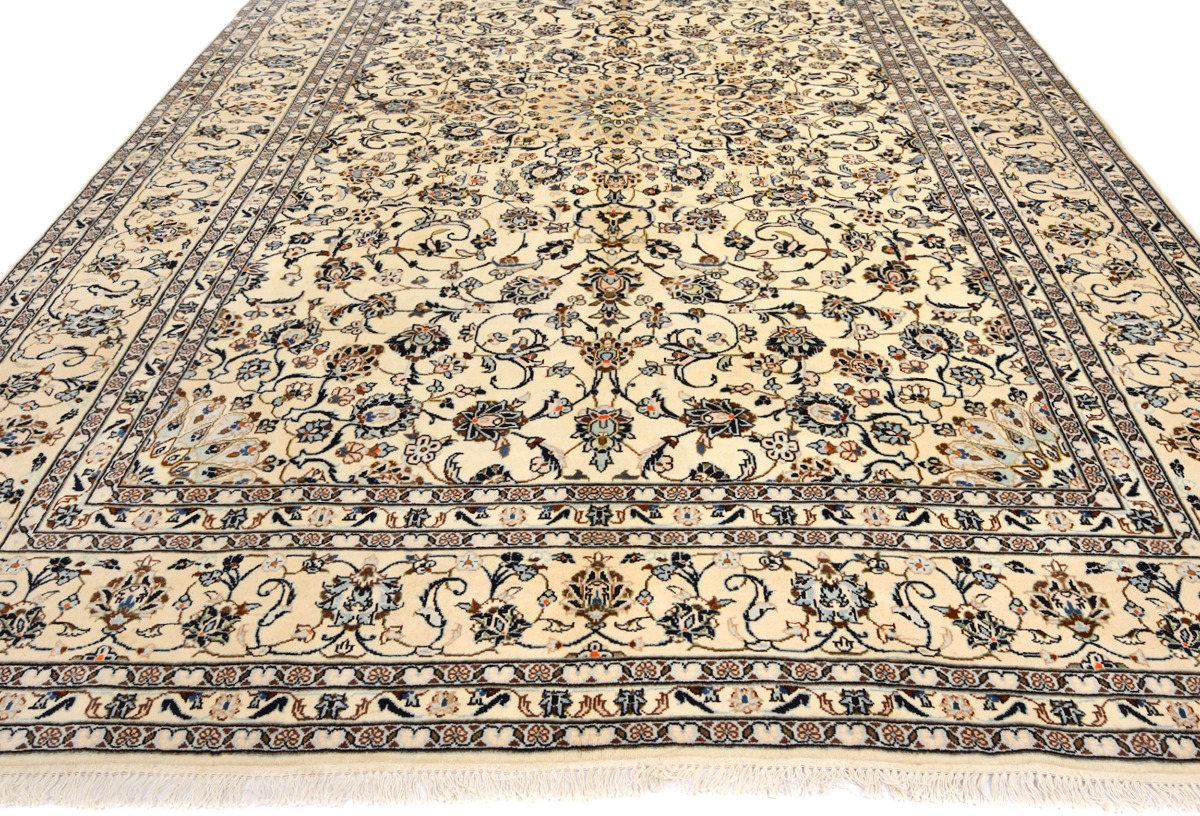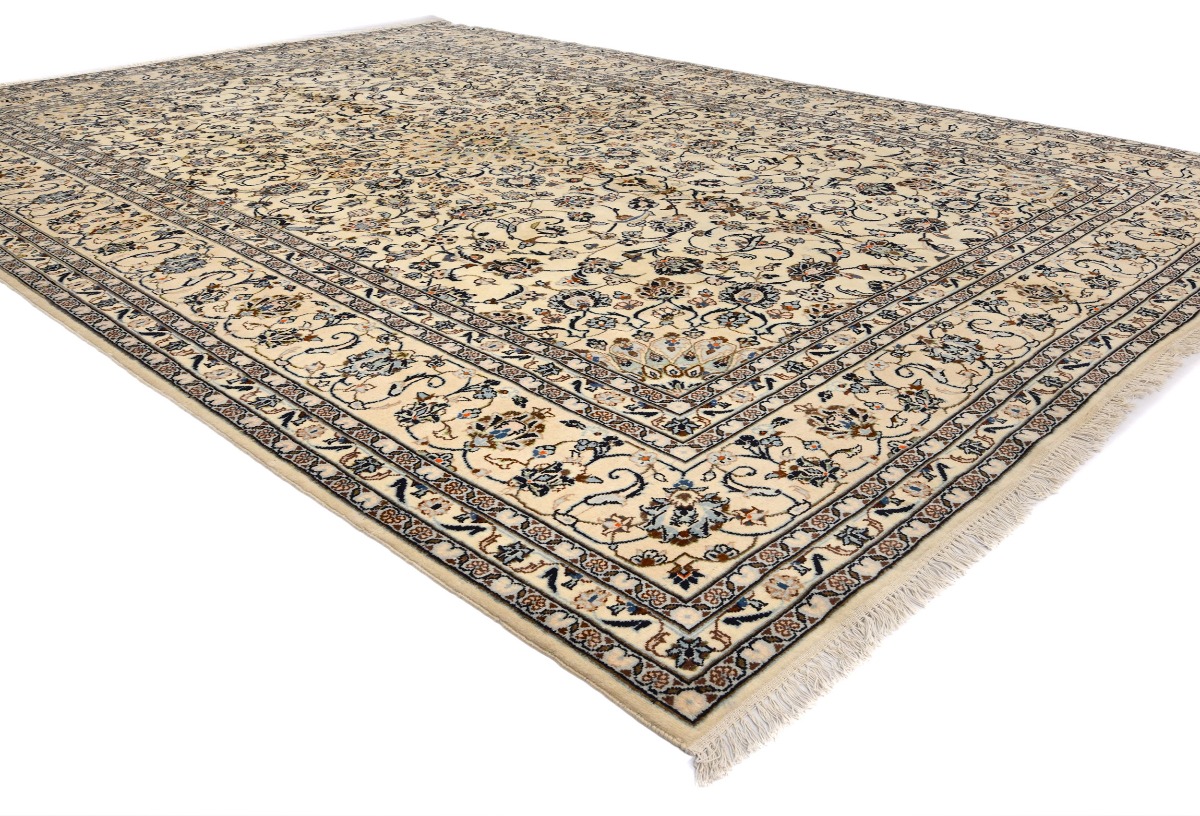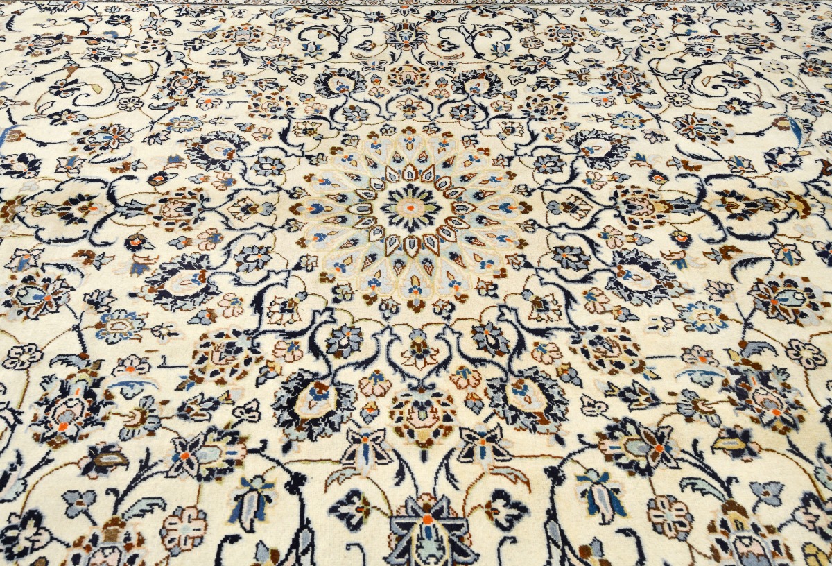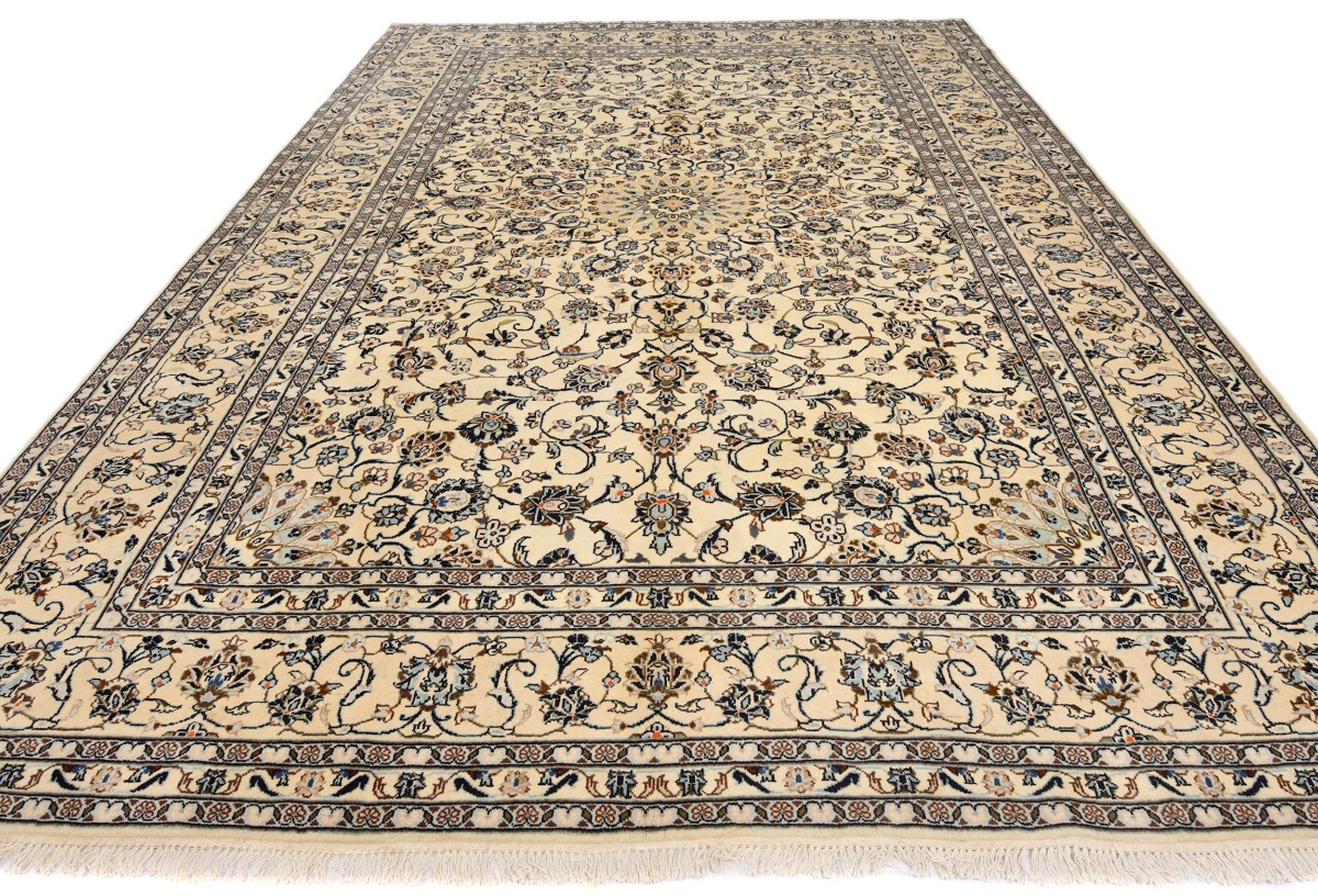 Vintage Cream Traditional 9X13 Kashan Persian Rug