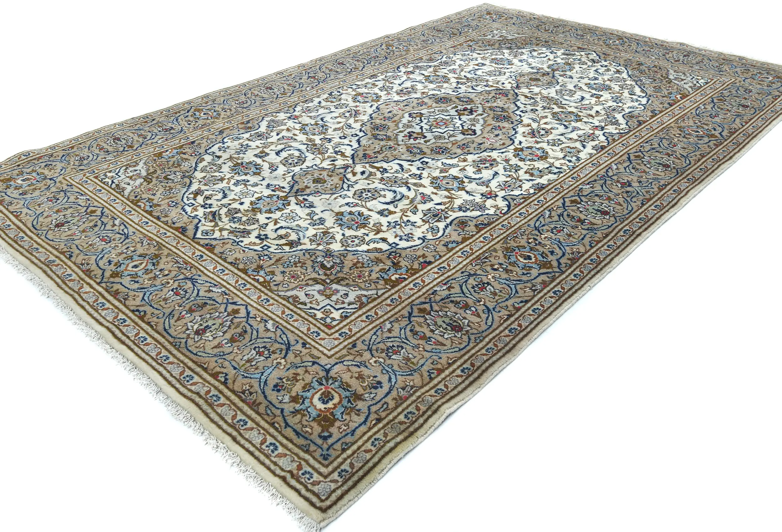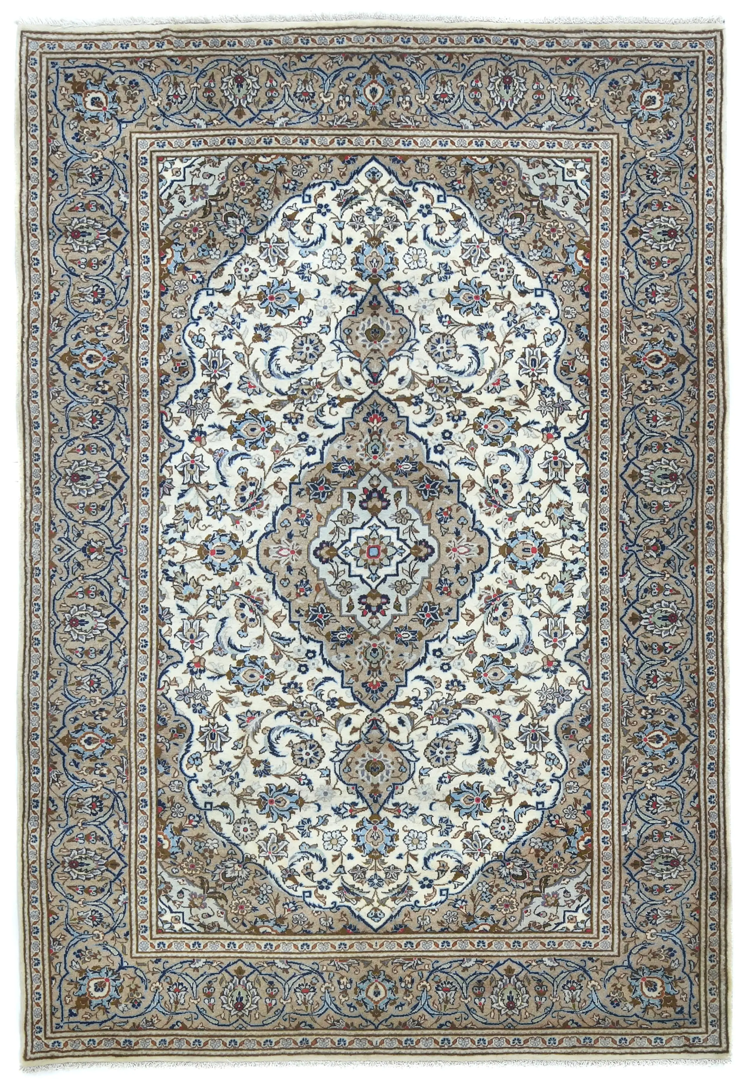 Vintage Cream Traditional Floral 6'4X10'4 Kashan Persian Rug