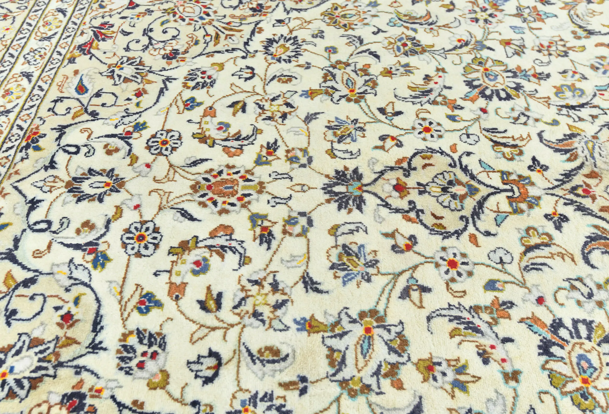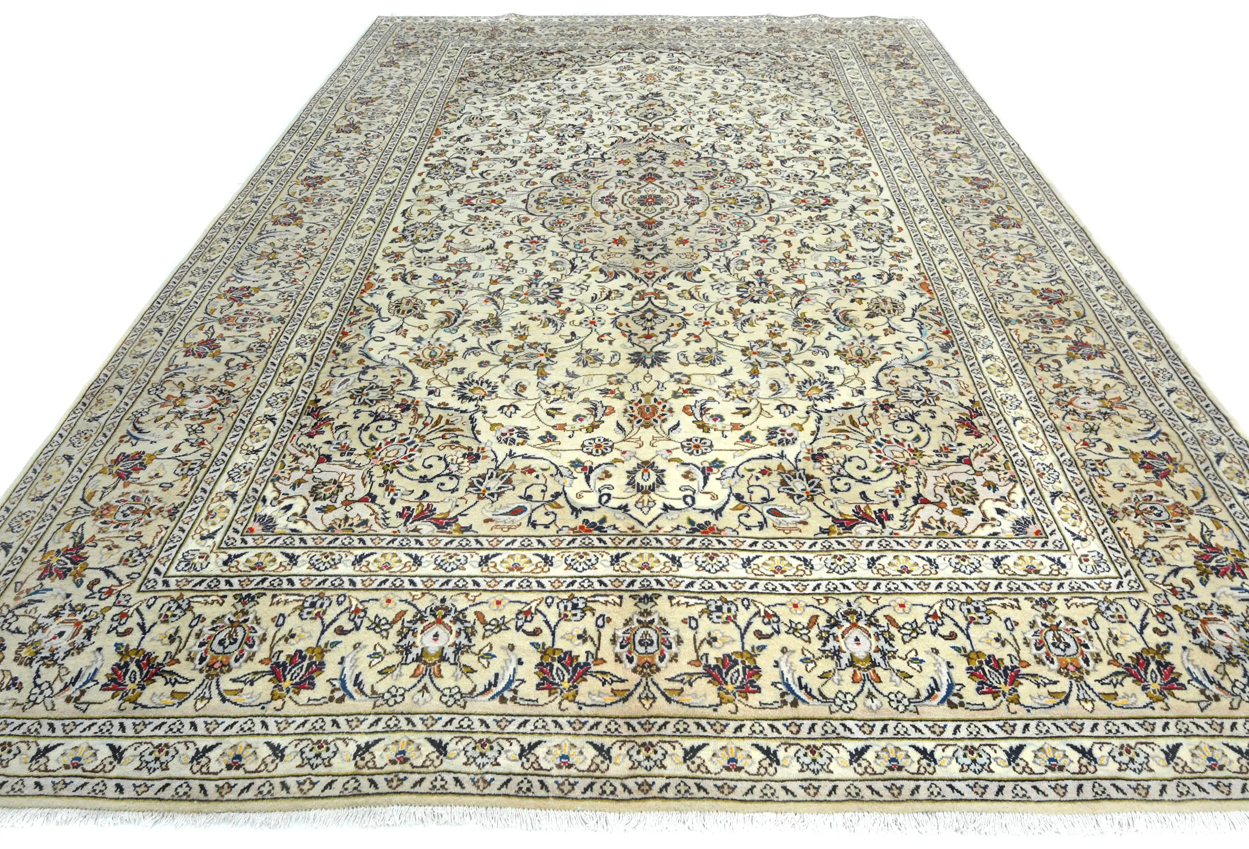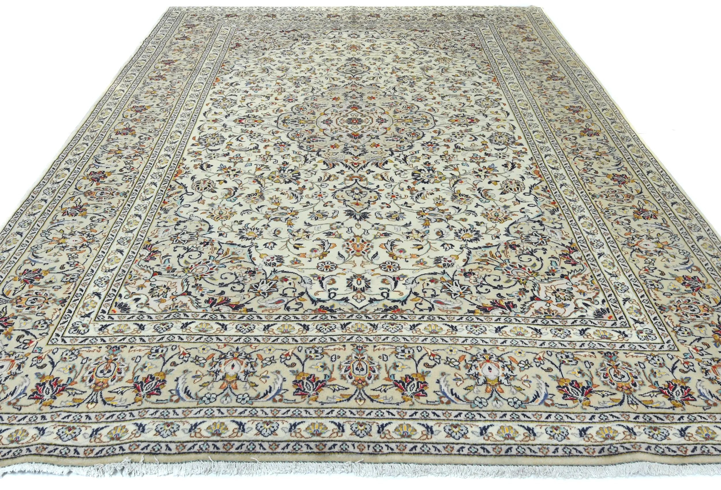 Vintage Cream Traditional Floral 8x11 Kashan Persian Rug