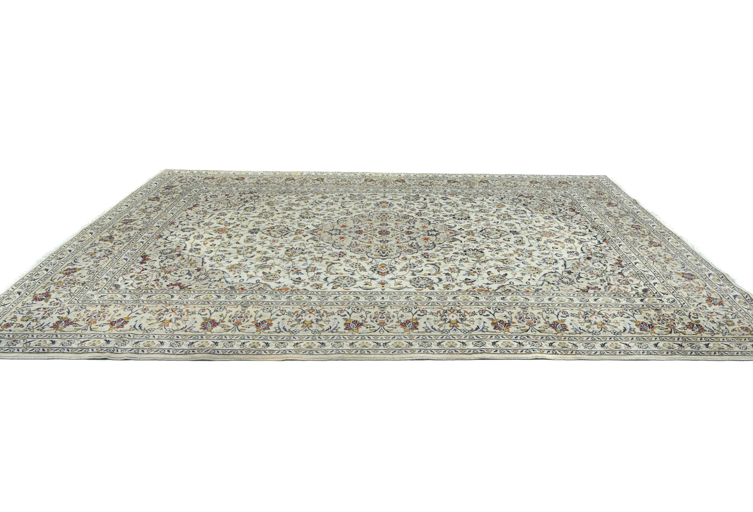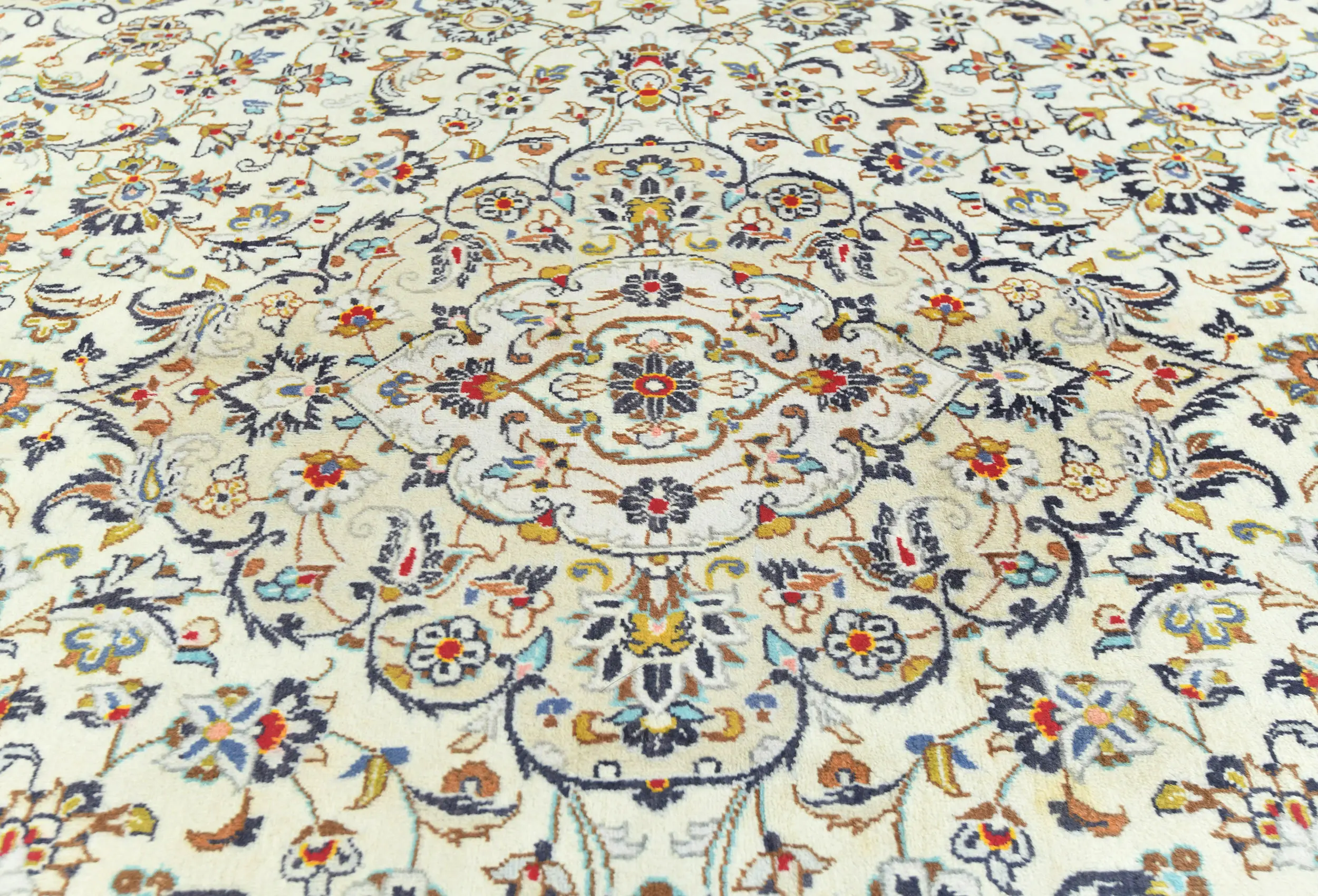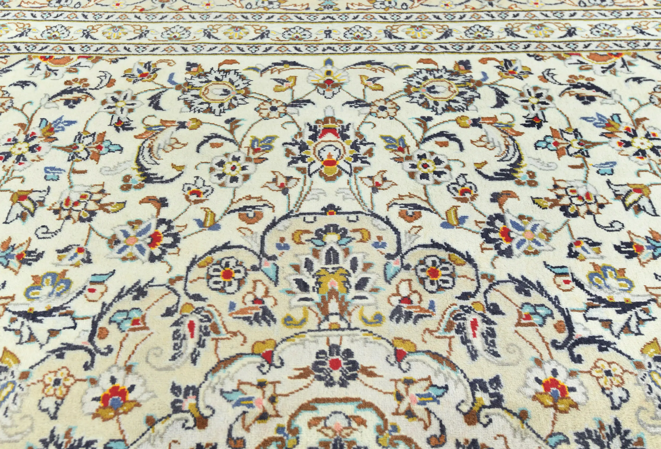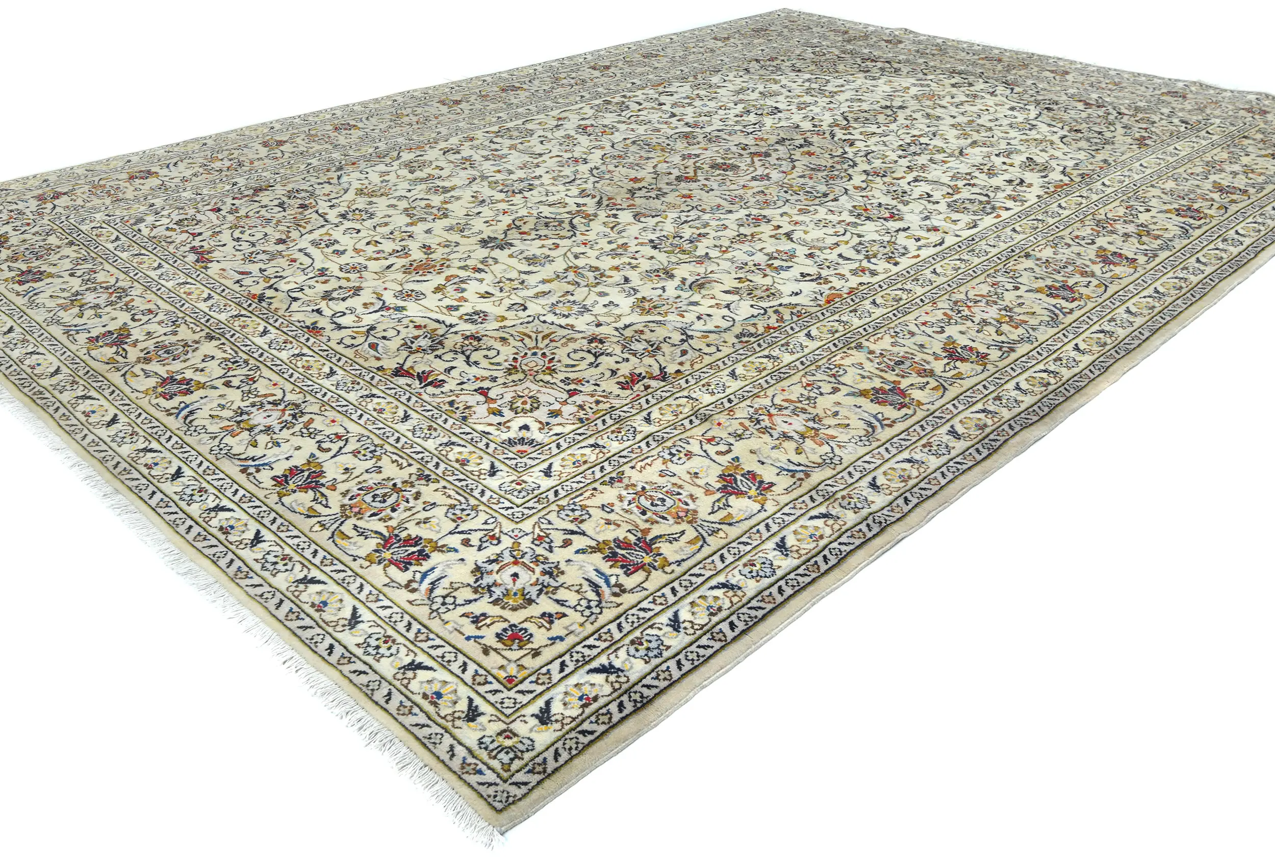 Vintage Cream Traditional Floral 8x11 Kashan Persian Rug