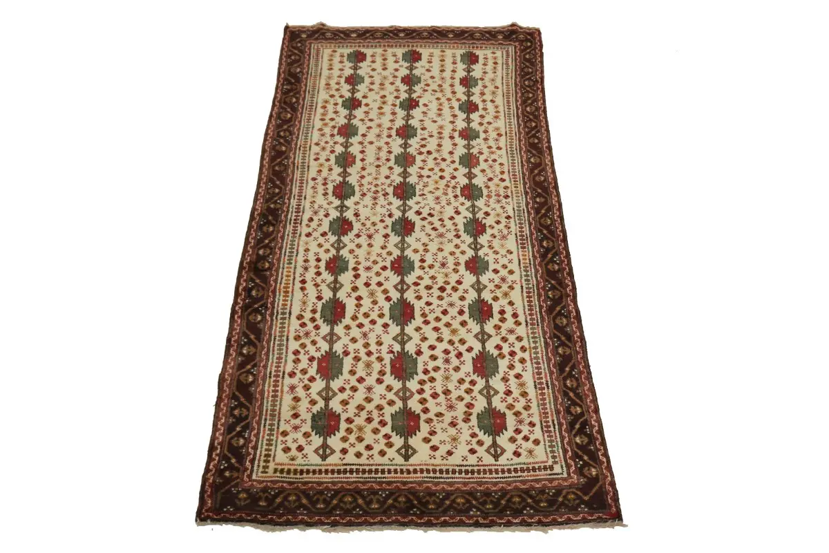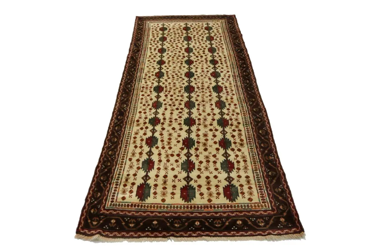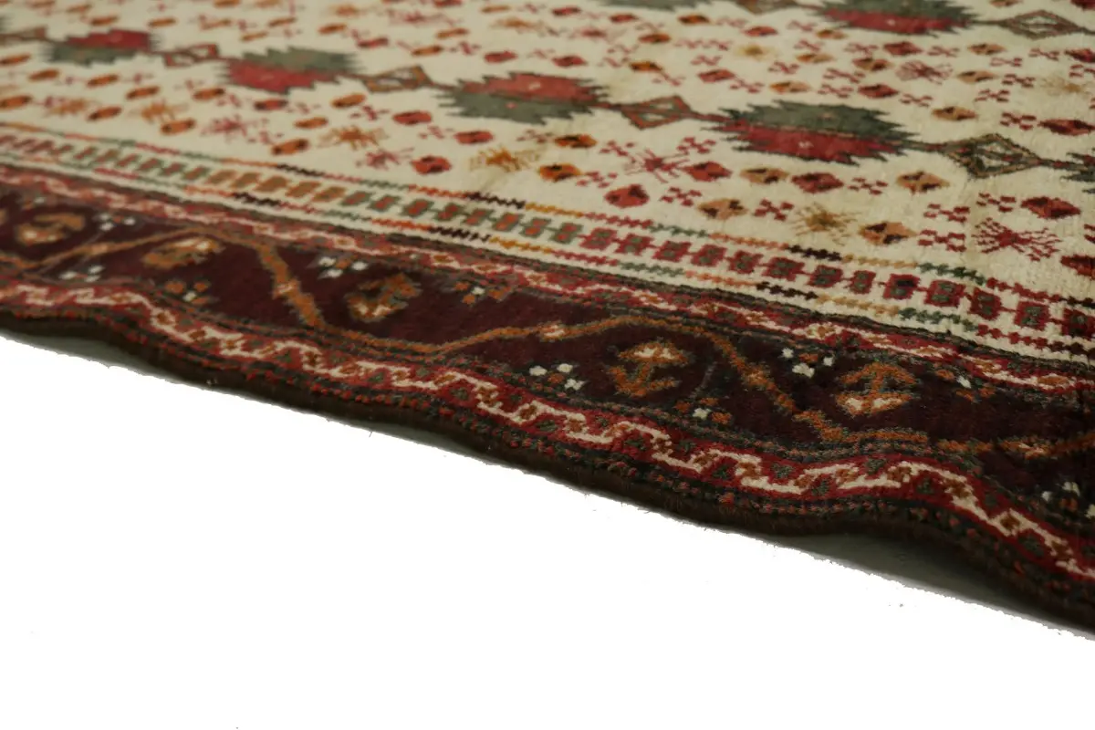 Vintage Cream Tribal 4X9 Turkoman Persian Runner Rug