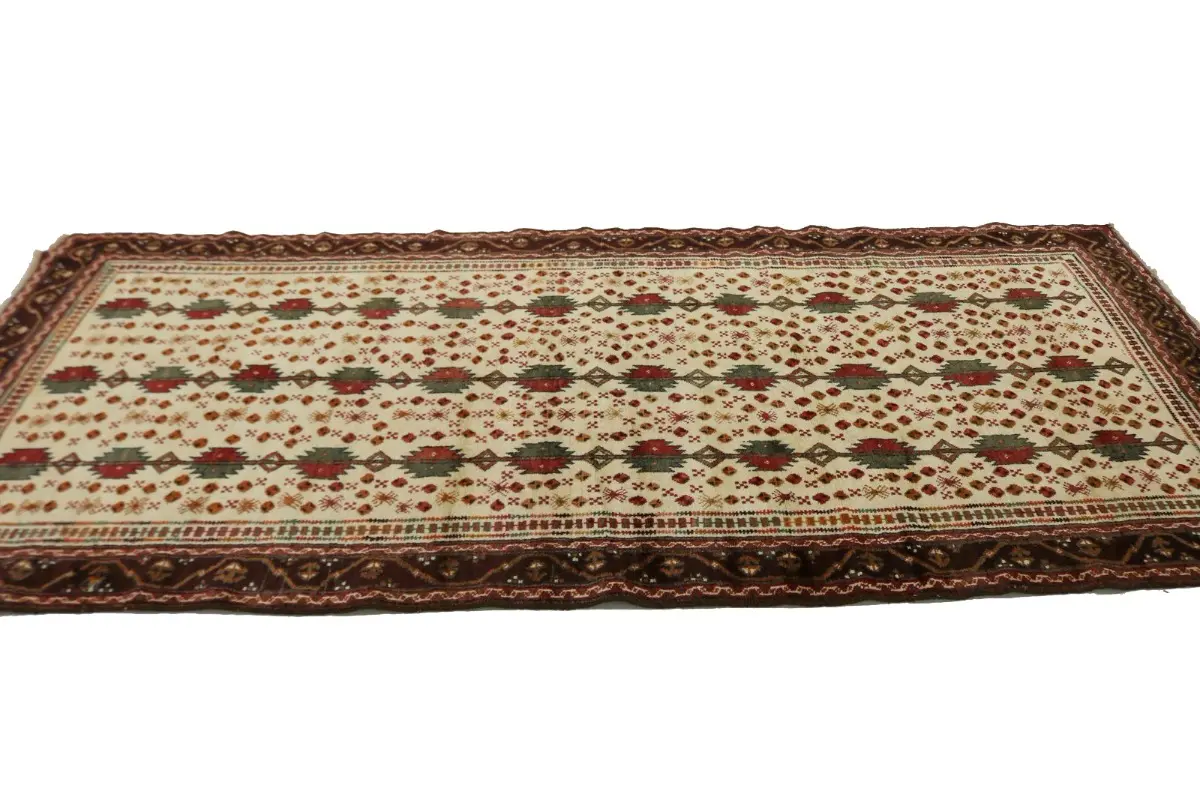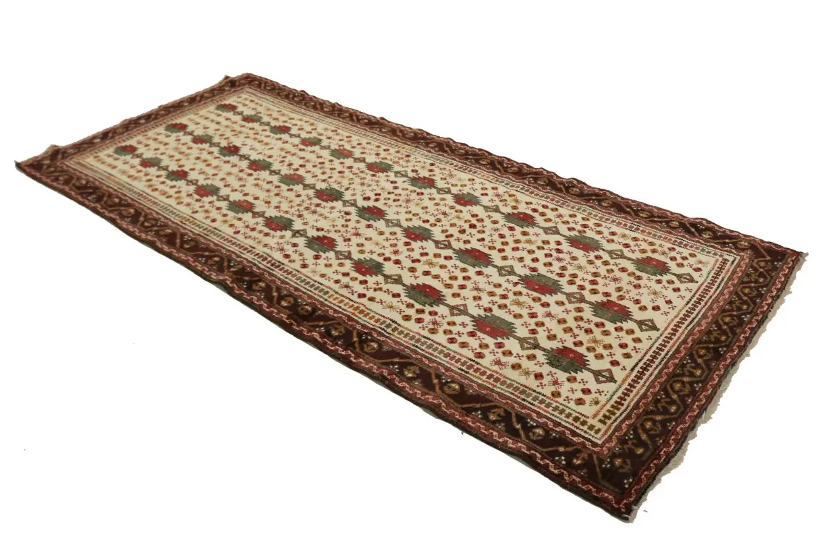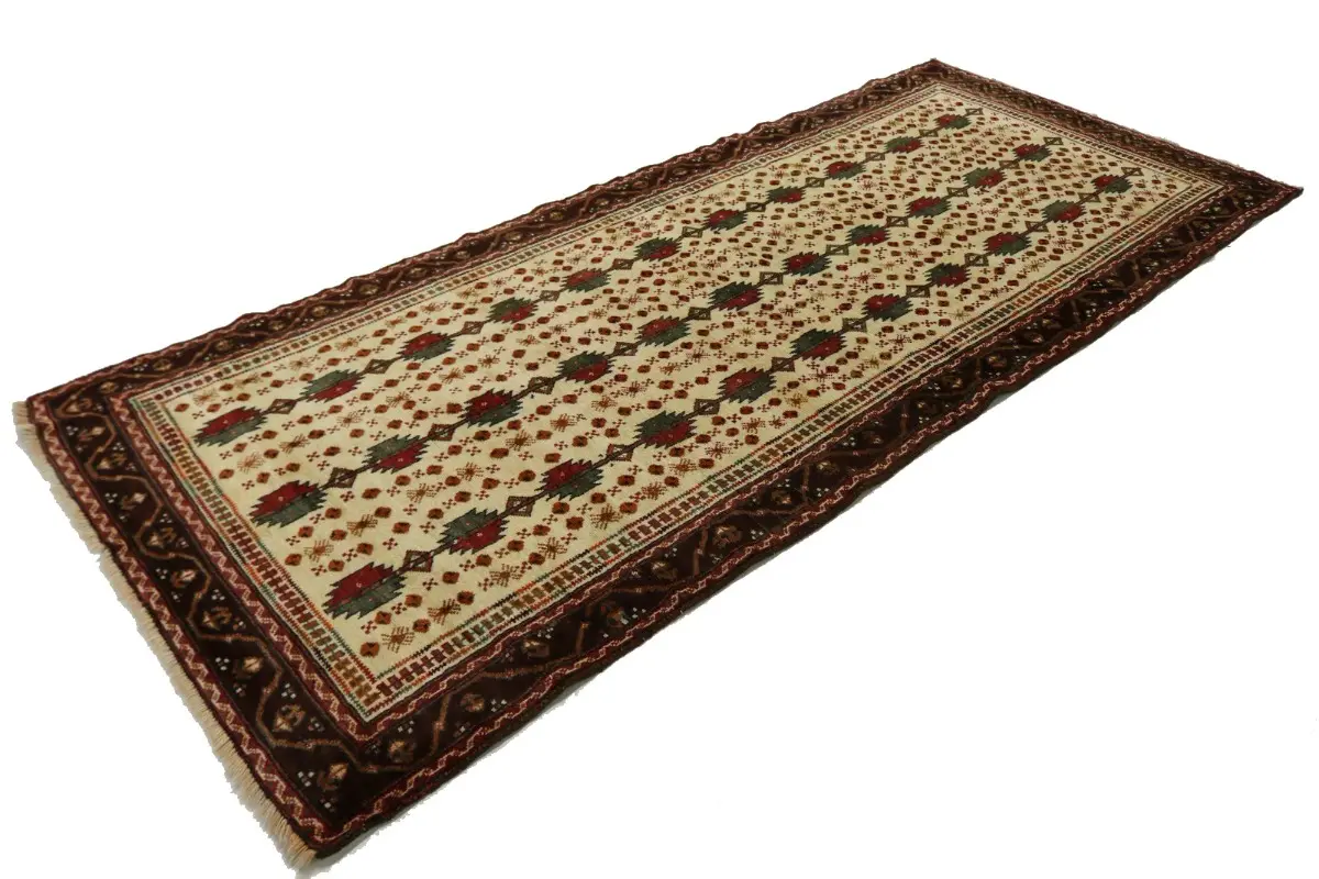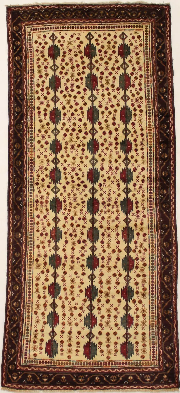 Vintage Cream Tribal 4X9 Turkoman Persian Runner Rug