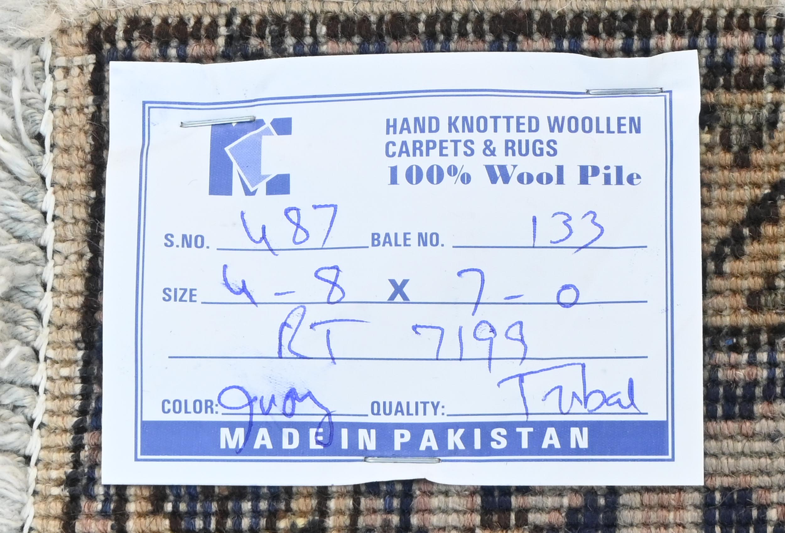 Vintage Cream Tribal Geometric 5X7 Tabriz Persian Rug