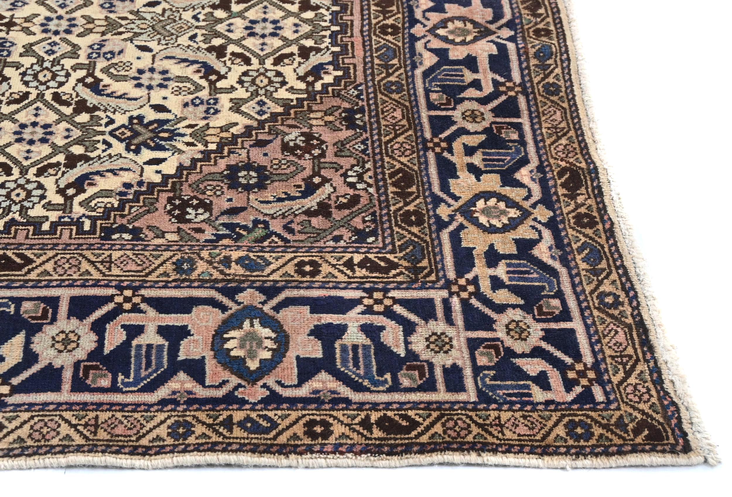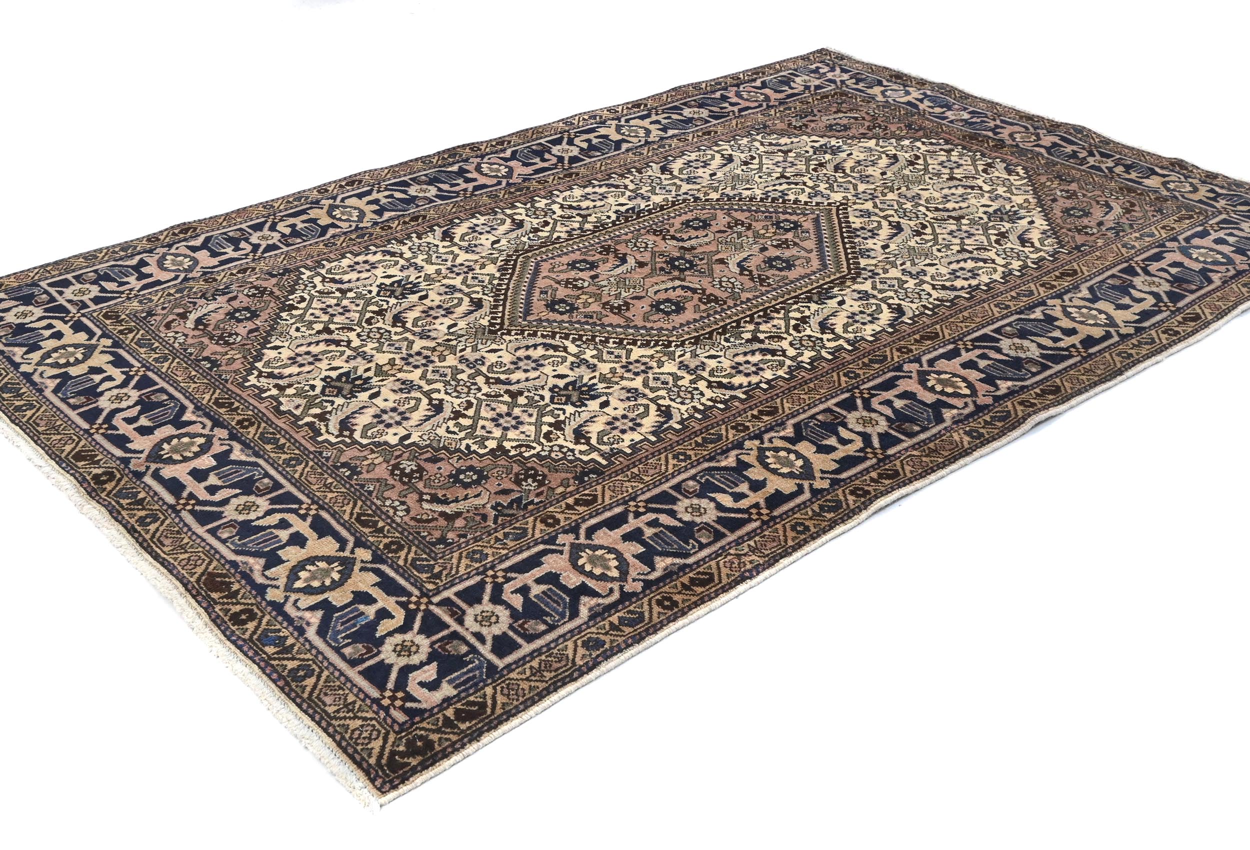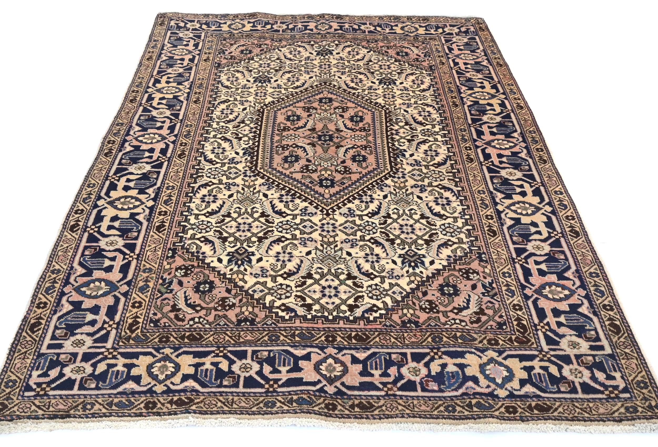 This original 5X7 cream vintage Persian rug was well-constructed by the hands of master weavers motivated by a variety of stunning artistic designs, to recreate the aged look of the exceptional piece with a richness of color and developed decorative floral background field. What set this traditional Oriental area rug from the others are the material and dye used (wool pile and cotton foundation), knot count, ancient designs, fantastic grades, and its regional historical connection: it has deep roots, from the story of the people who produced it to the meaning of the symbols and colors displayed across its canvas that have been praised for centuries. This classic home décor carpet will be completely cozy and inviting that never will go out of style! Also, this Oriental rug would be among your most valuable treasures, it is a great investment that increase in value over time, and it will last a lifetime because was woven with high-quality, all-natural wool; it won’t rip, tear, or shed. Eco-friendly, opulent yet affordable; this Persian rug will give you an extra pop of character to help define your home environment with elegance and warmth that will capture the eyes and attention of your audience (homeowners, designers, decorators, family and friends). RT-7199