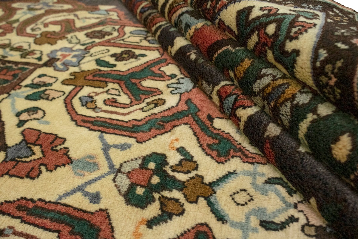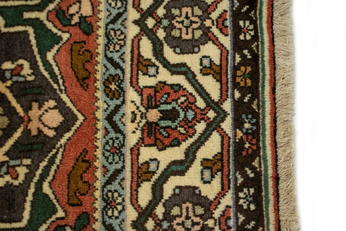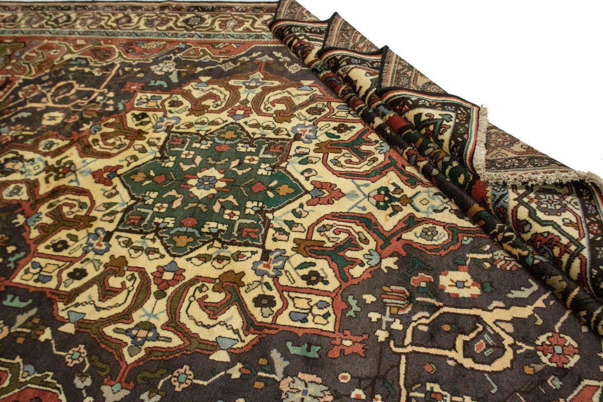 Handmade vintage Persian rug made with natural dyes (fine wool pile and cotton foundation), superior knot count, and appealing ancient designs. This Oriental rug never will go out of style and would be among your most valuable treasures.