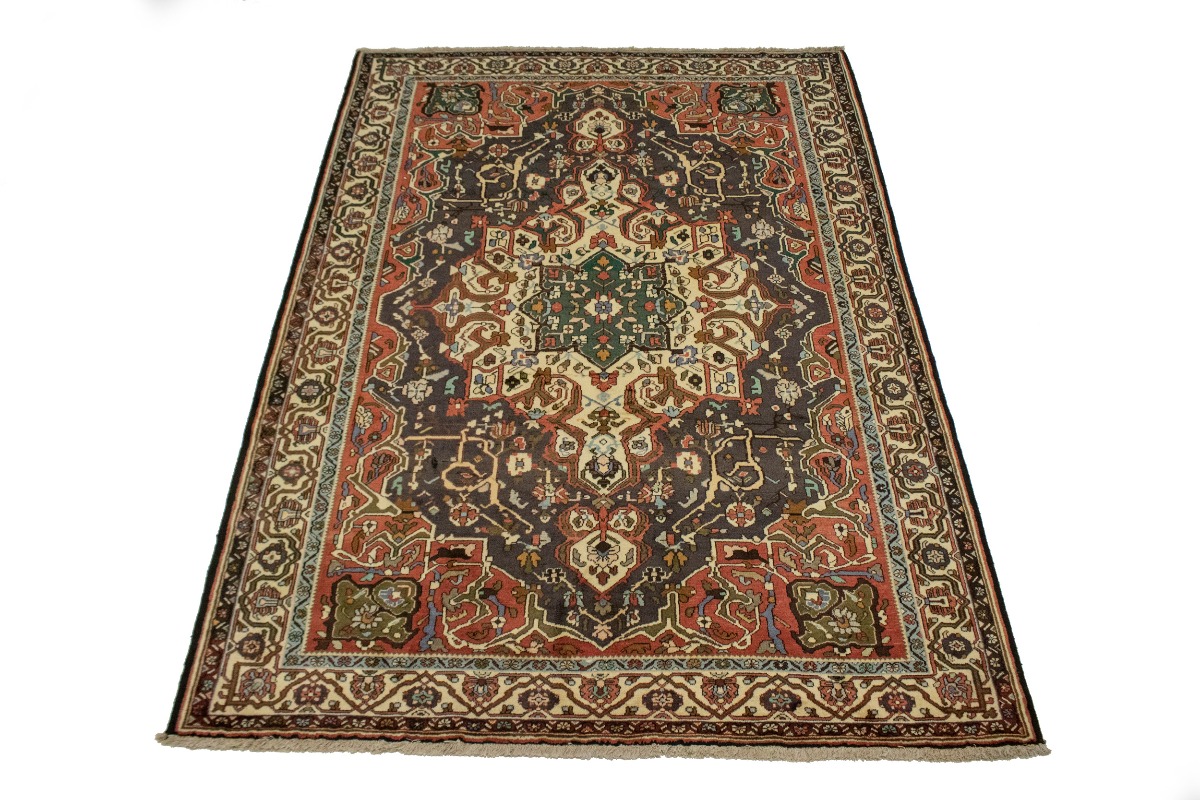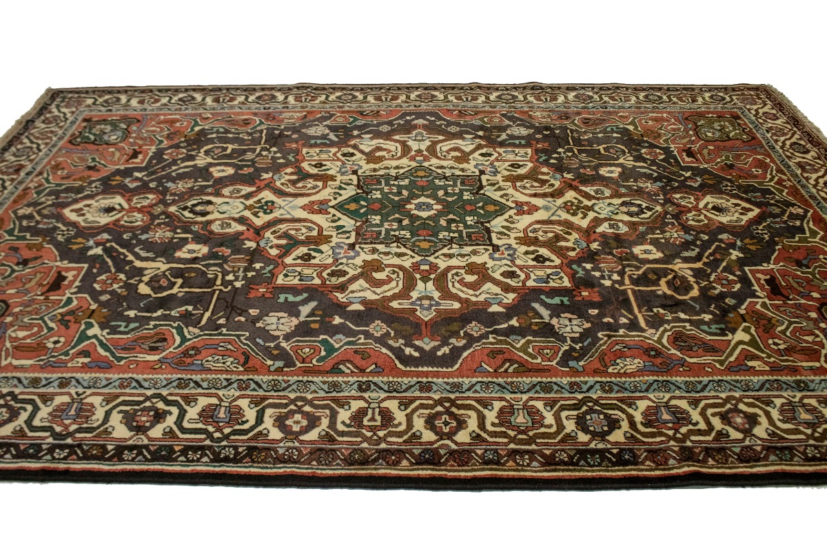 Vintage Dark Brown Floral 7X10 Bakhtiari Persian Rug