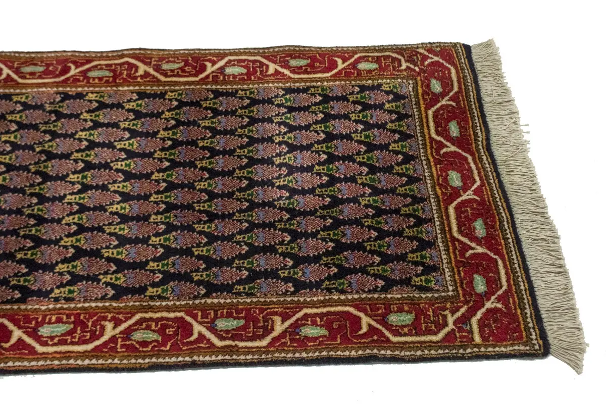 This authentic 3X11 navy blue vintage Persian runner was finely knotted by the hands of weavers influenced by a variety of amazing artistic designs, to recreate the aged look of the exceptional piece with a richness of color and embellished background field. What set this allover floral Oriental area runner from the others are the material and dye used (wool pile and cotton foundation), knot count, antique designs, fantastic grades, and its regional historical connection: it has deep roots, from the story of the people who produced it to the meaning of the symbols and colors displayed across its canvas that have been praised for centuries. This home décor carpet will be completely cozy and inviting that never will go out of style! Also, this Oriental runner would be among your most valuable treasures, it is a great investment that increase in value over time, and it will last a lifetime because was woven with high-quality, all-natural wool; it won’t rip, tear, or shed. Eco-friendly, opulent yet affordable; this Persian rug will give you an extra pop of character to help define your home environment with luxury and warmth that will capture the eyes and attention of your audience (homeowners, designers, decorators, family and friends). RT-4426