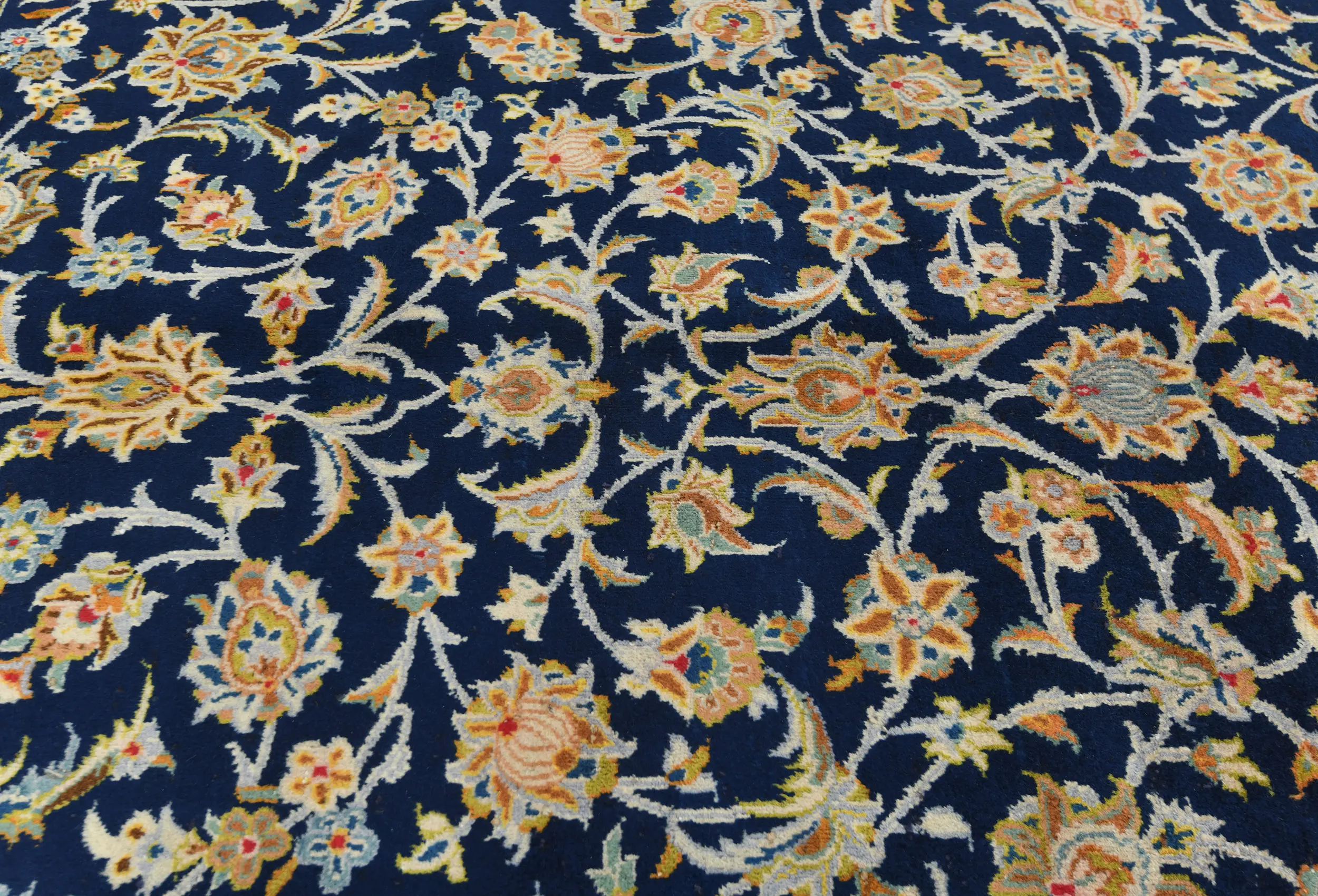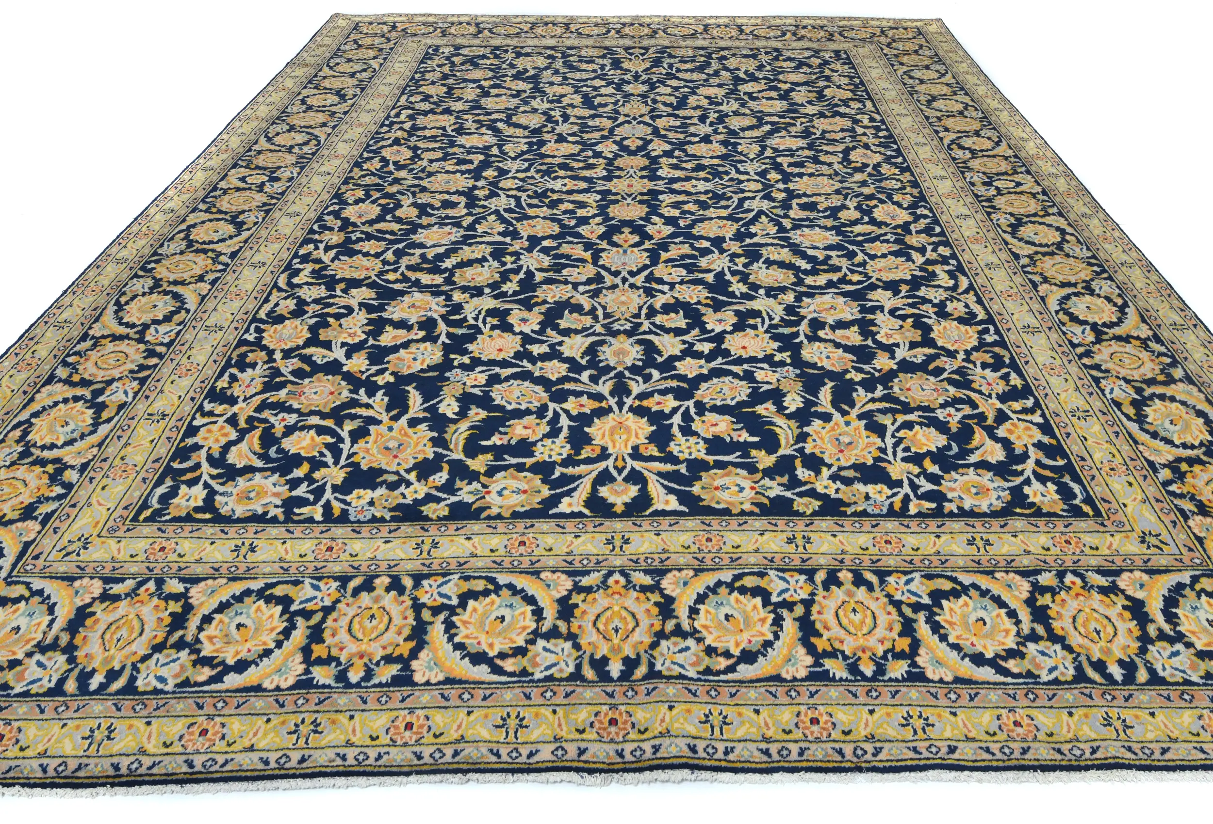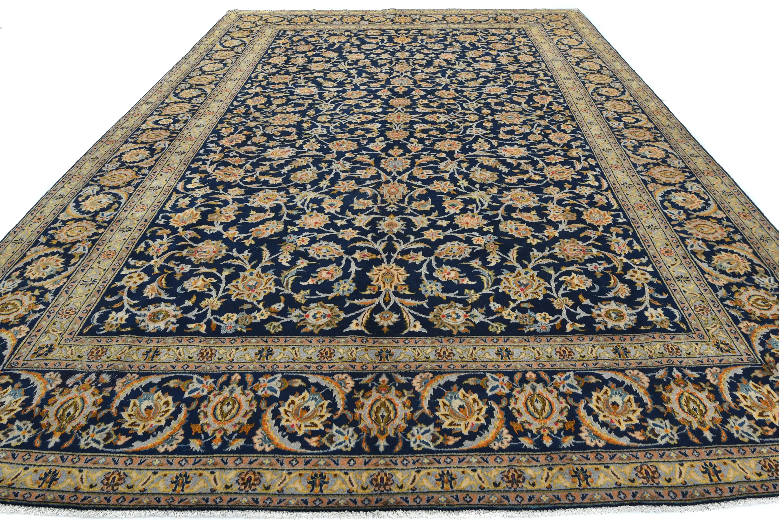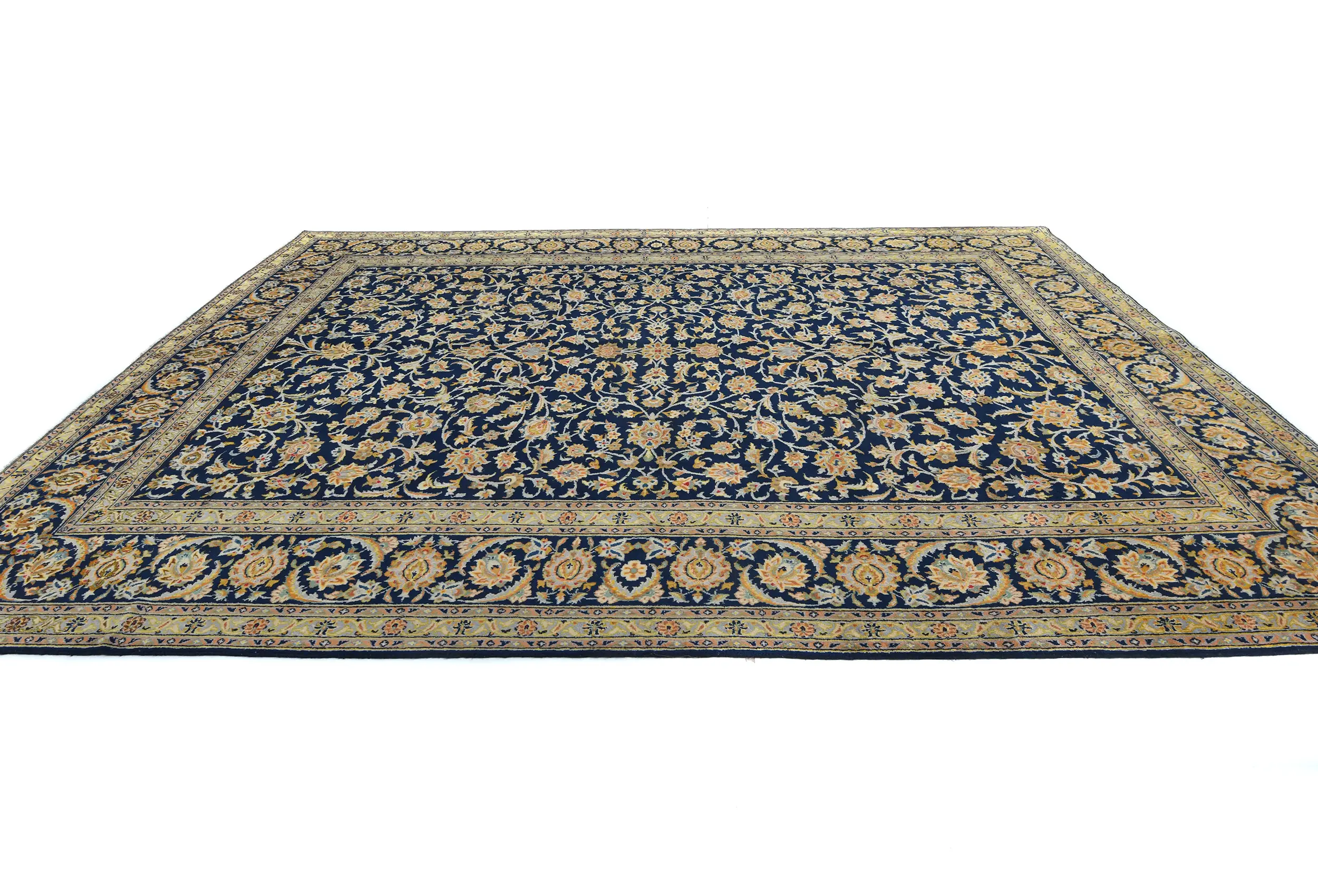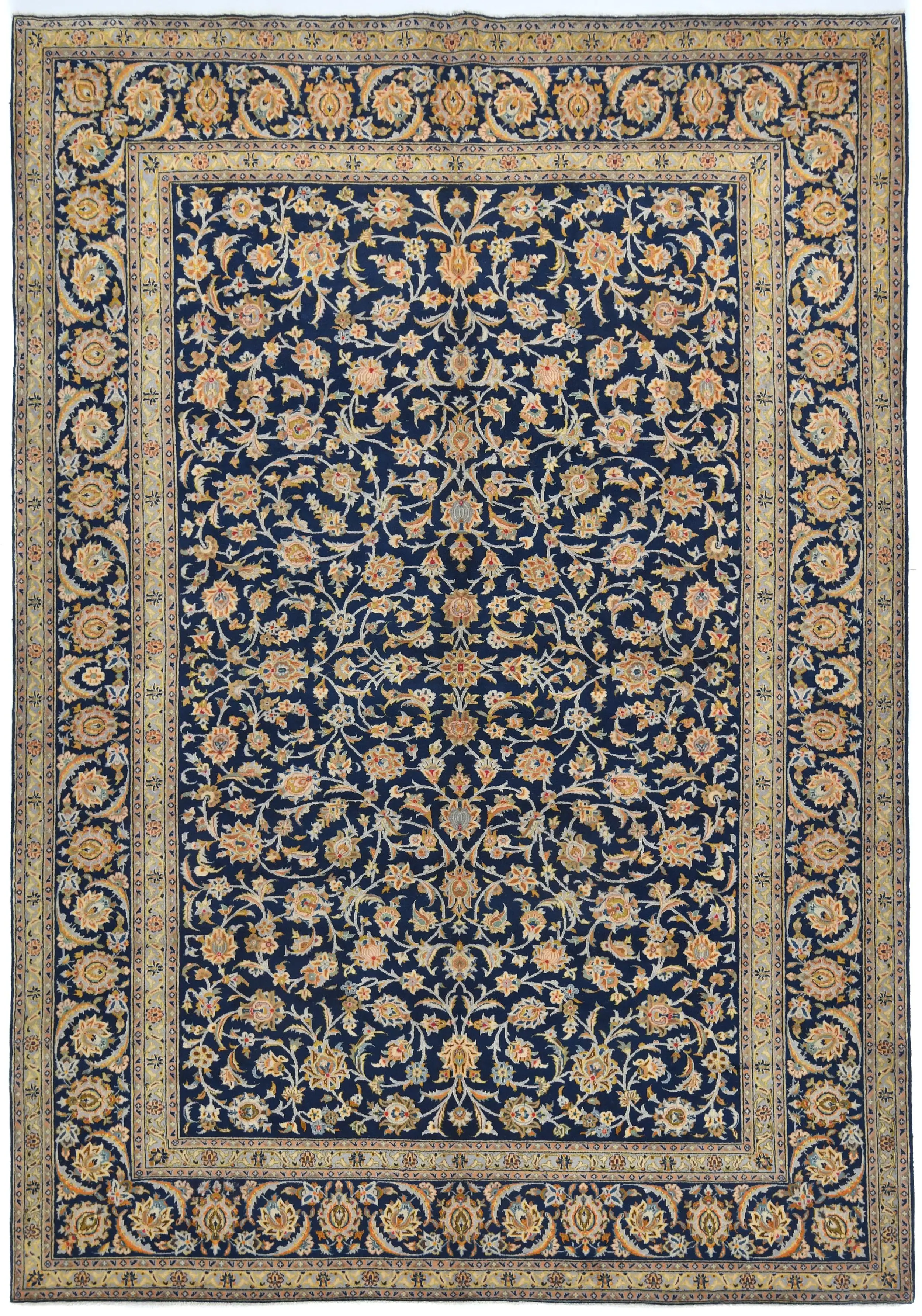 Vintage Dark Navy Floral Traditional 9X13 Kashan Persian Rug