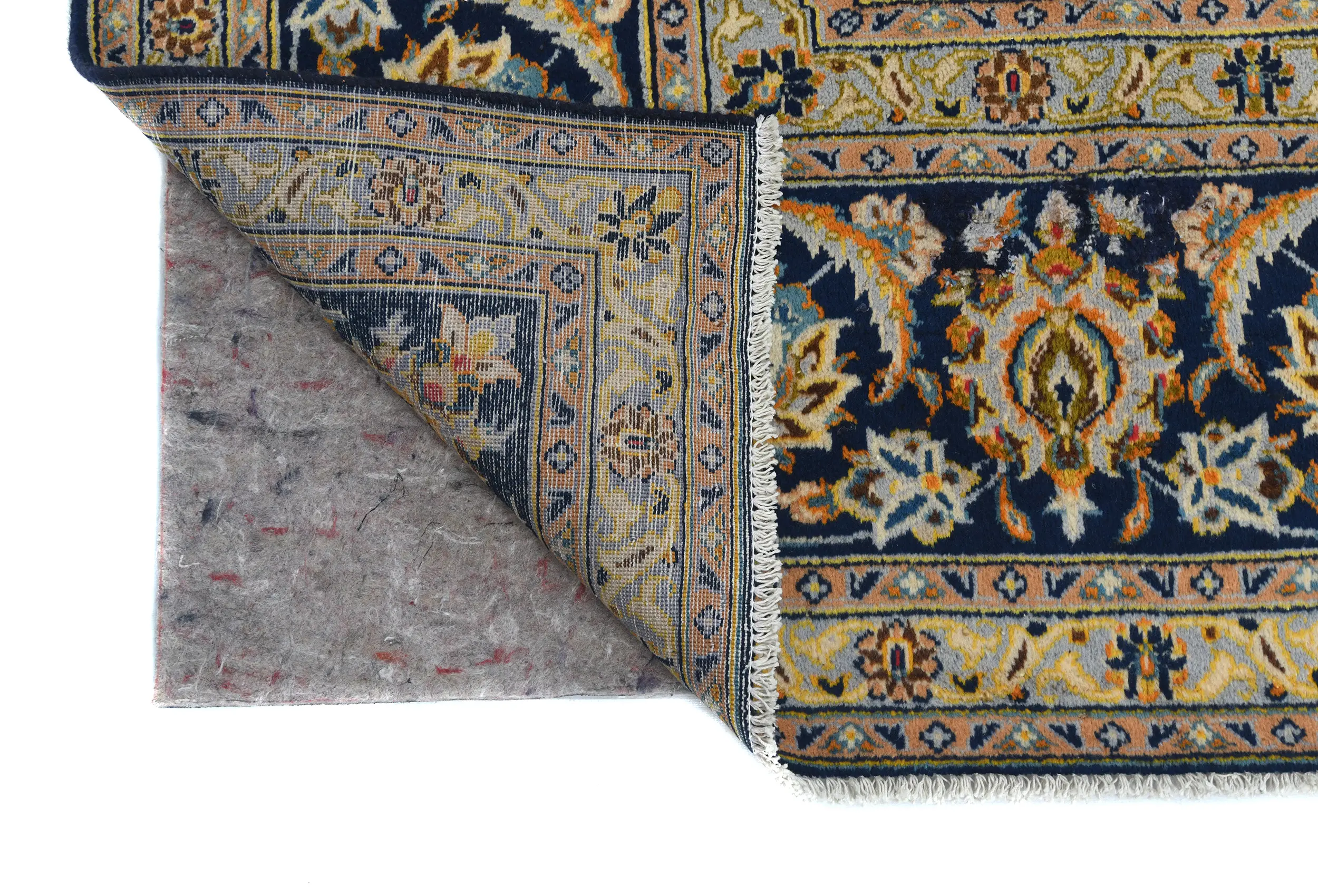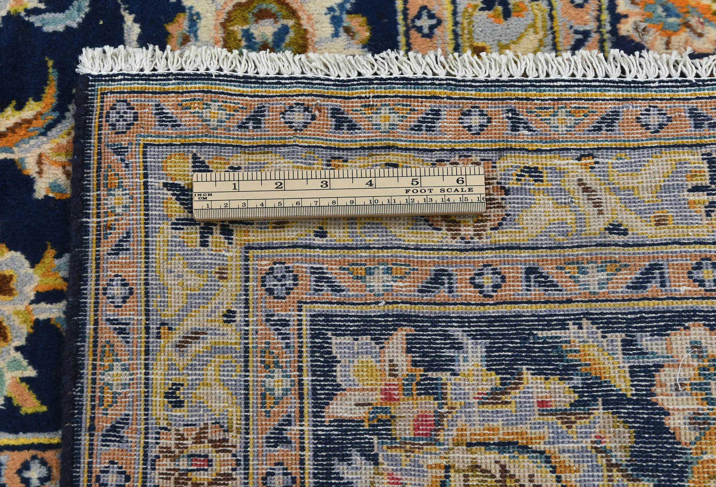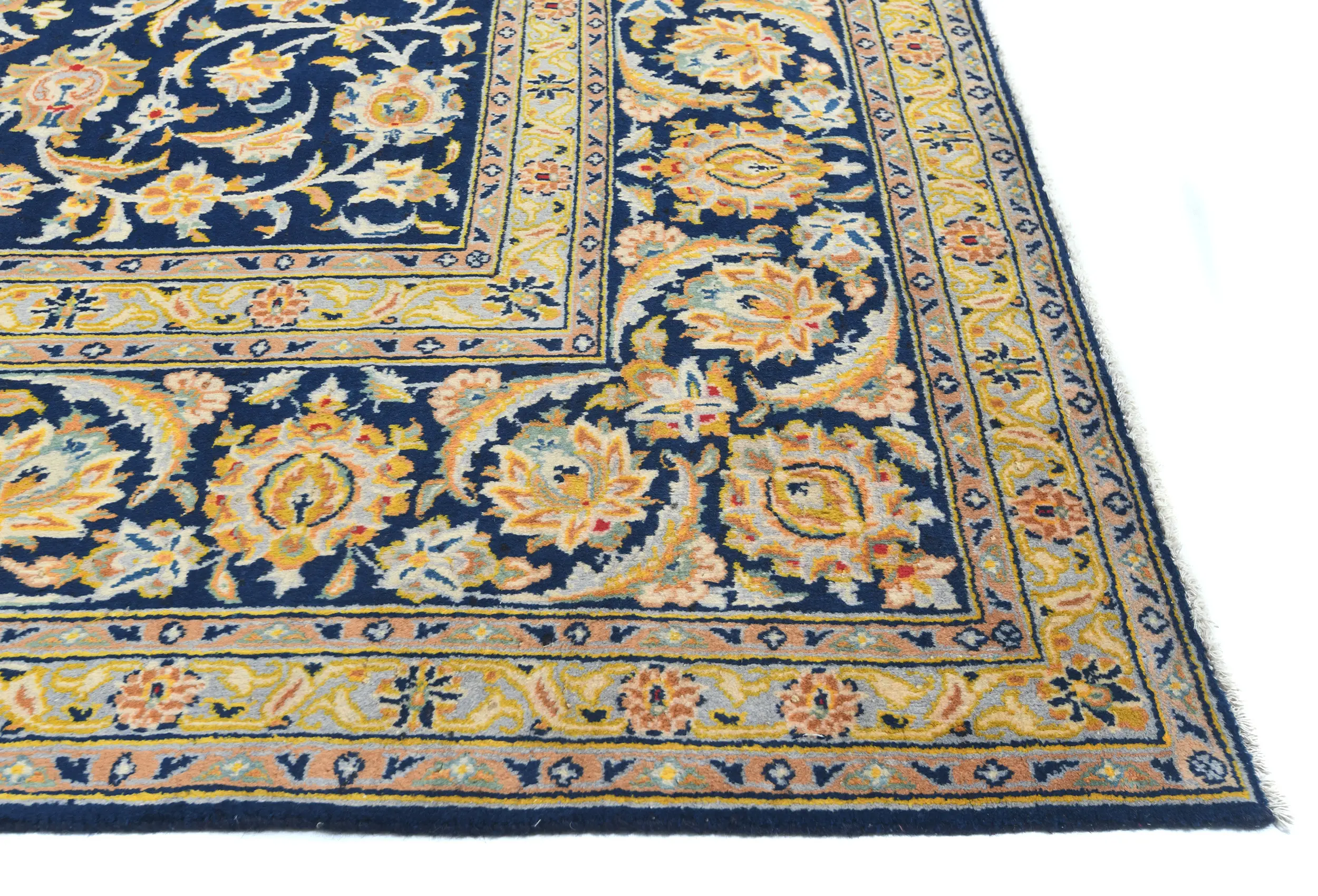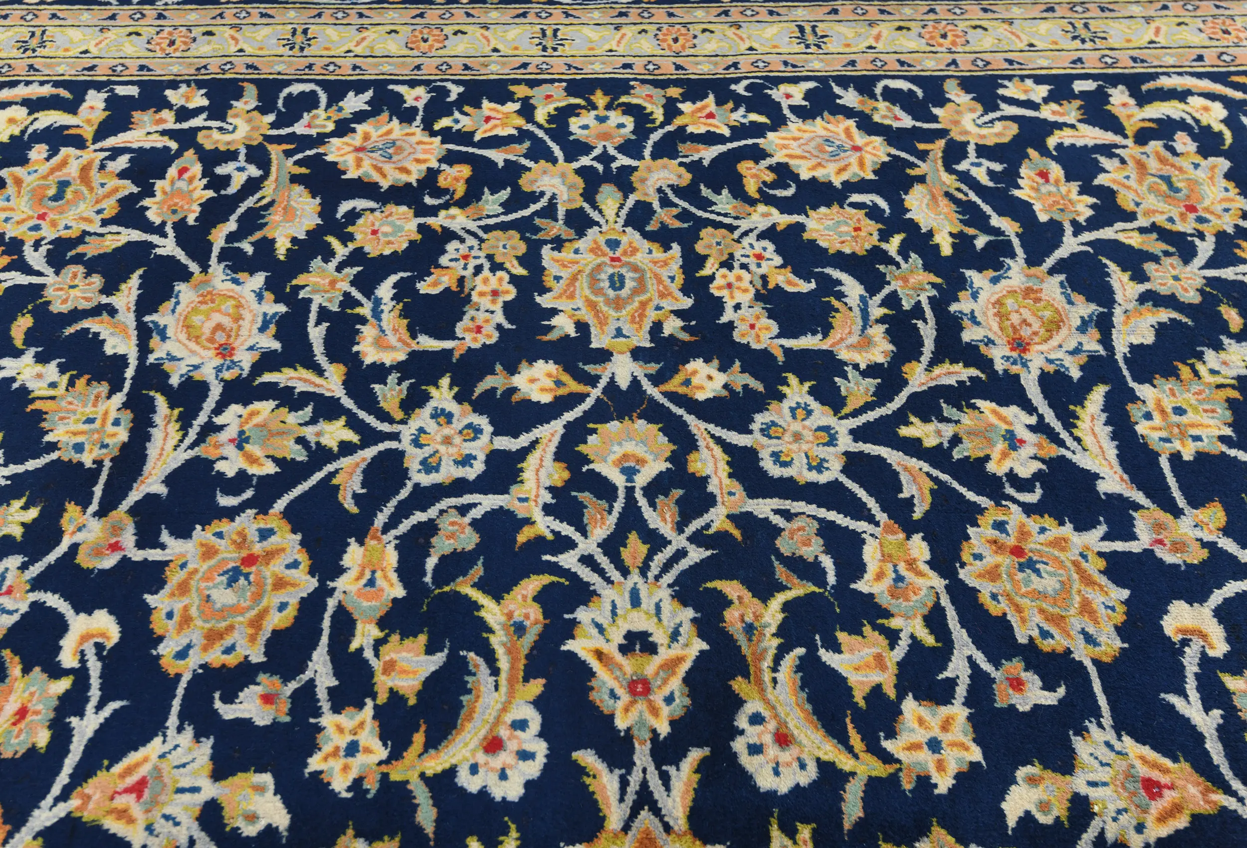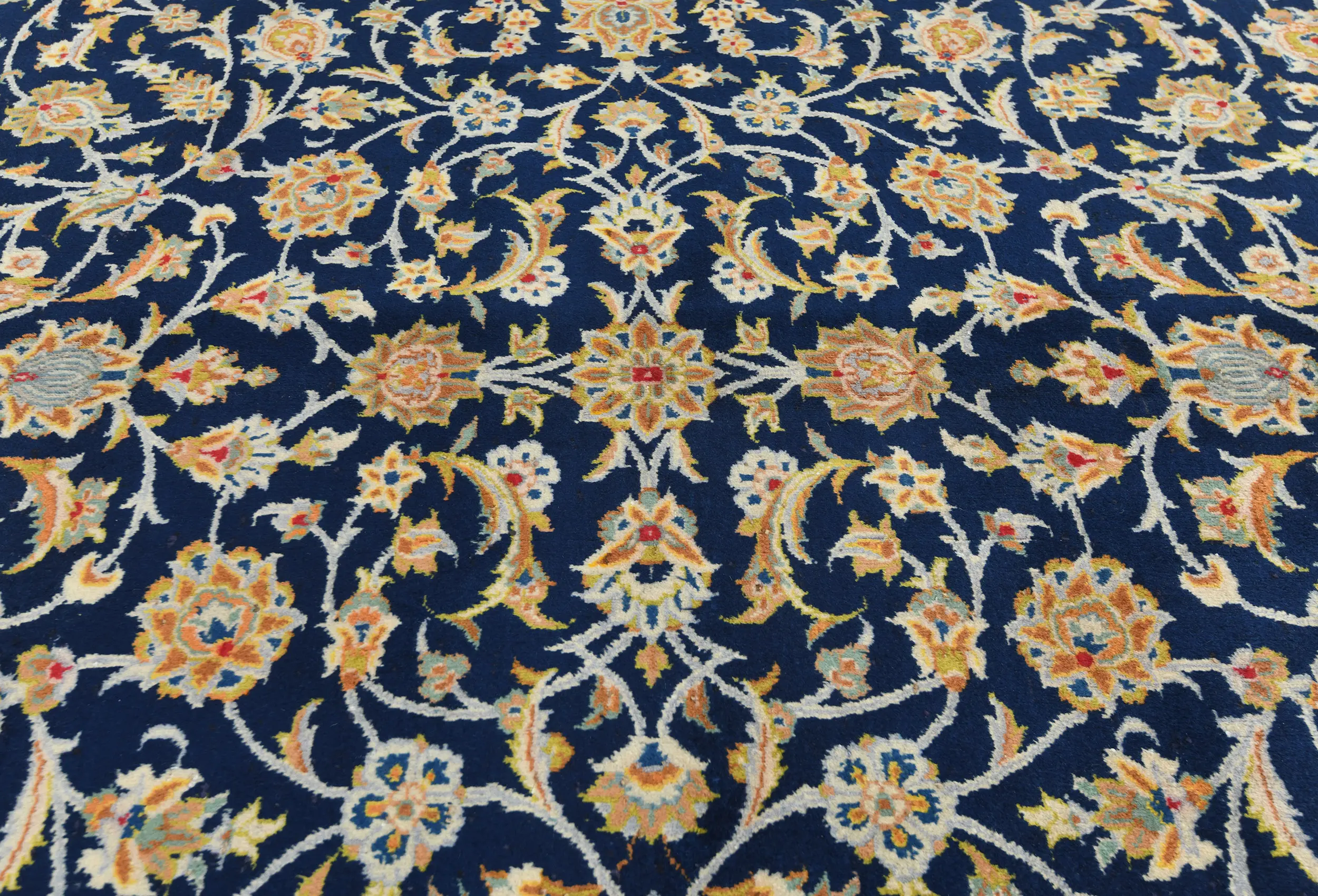 Vintage Dark Navy Floral Traditional 9X13 Kashan Persian Rug