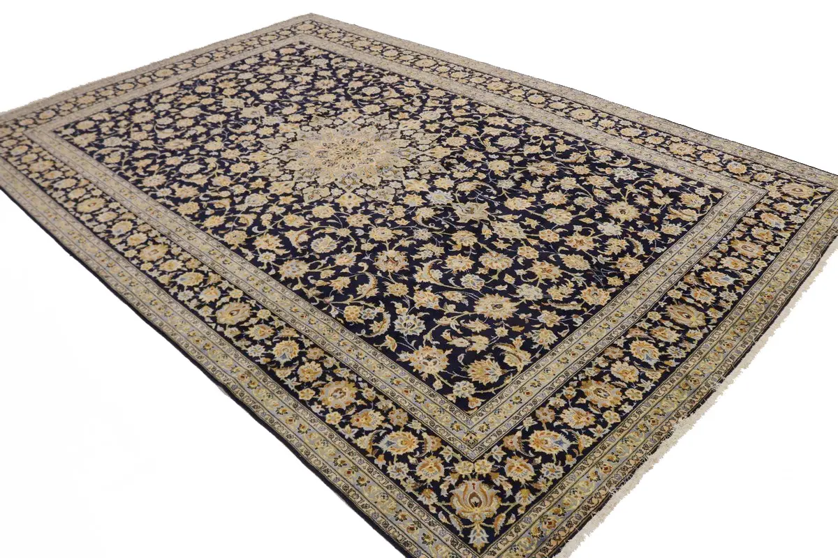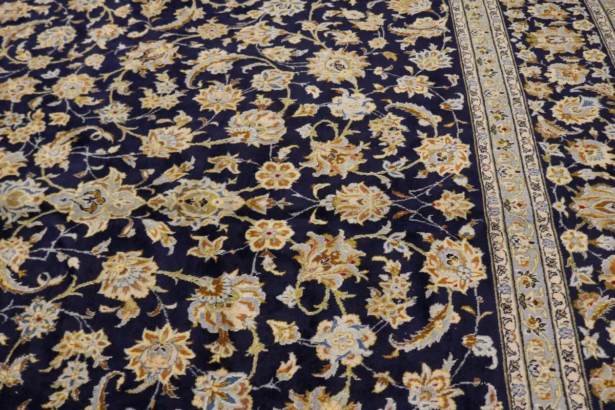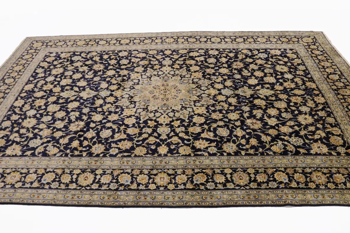 Vintage Dark Navy Traditional 11'6X17'4 Kashan Persian Rug