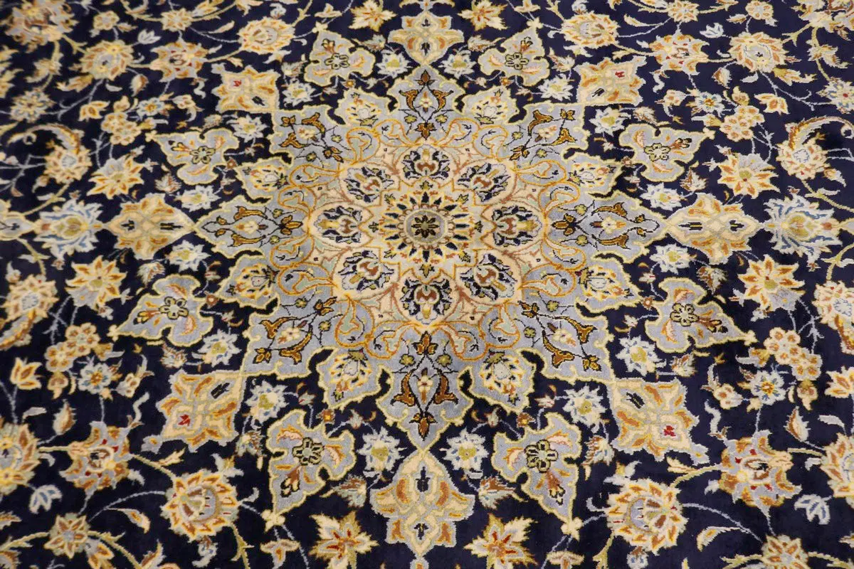 Handmade 11'6X17'4 dark navy vintage Persian rug made with vegetable dyes (fine wool pile and cotton foundation), exceptional knot count, and alluring ancient designs. This Oriental rug never will go out of style and would be among your most valuable treasures.