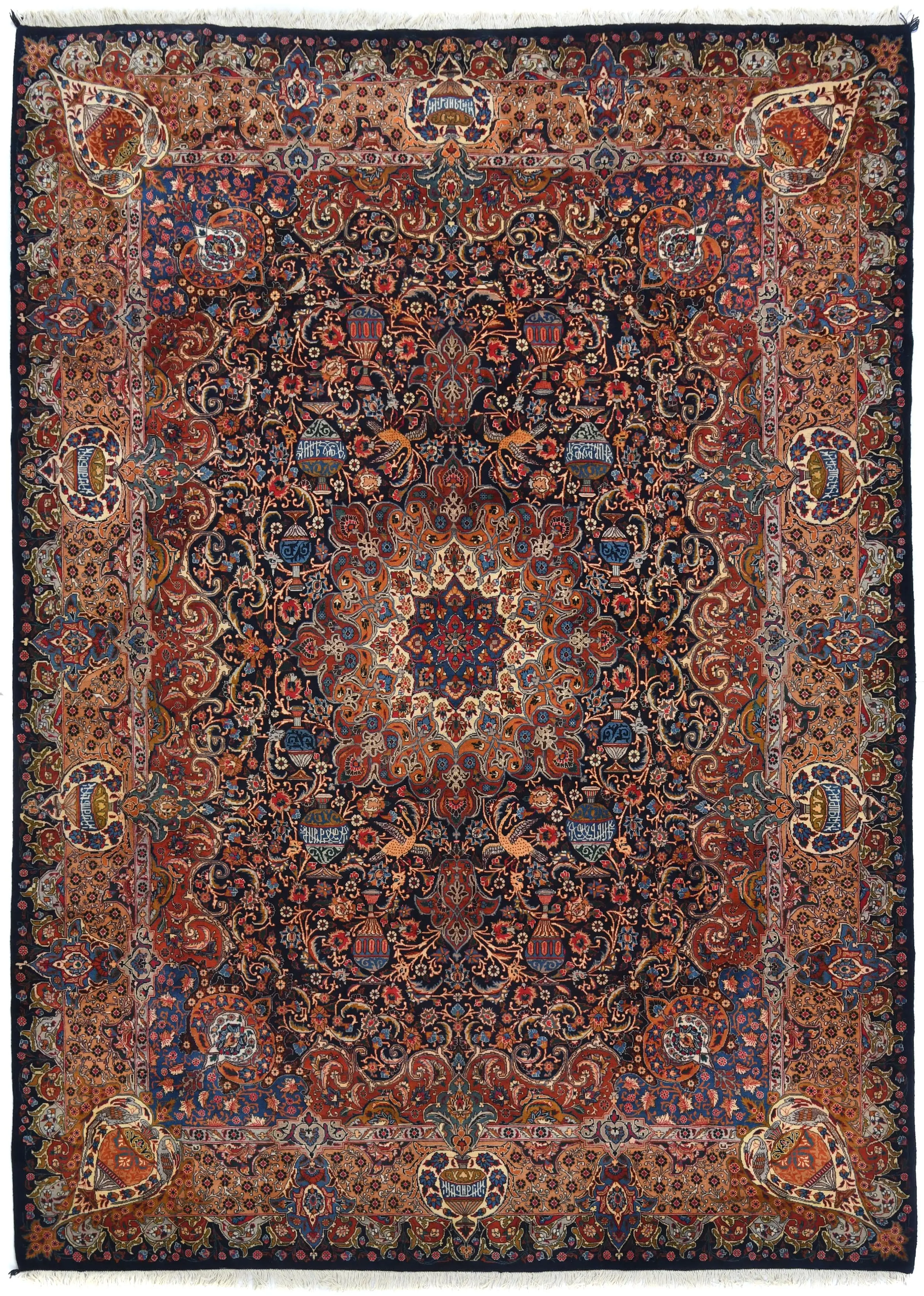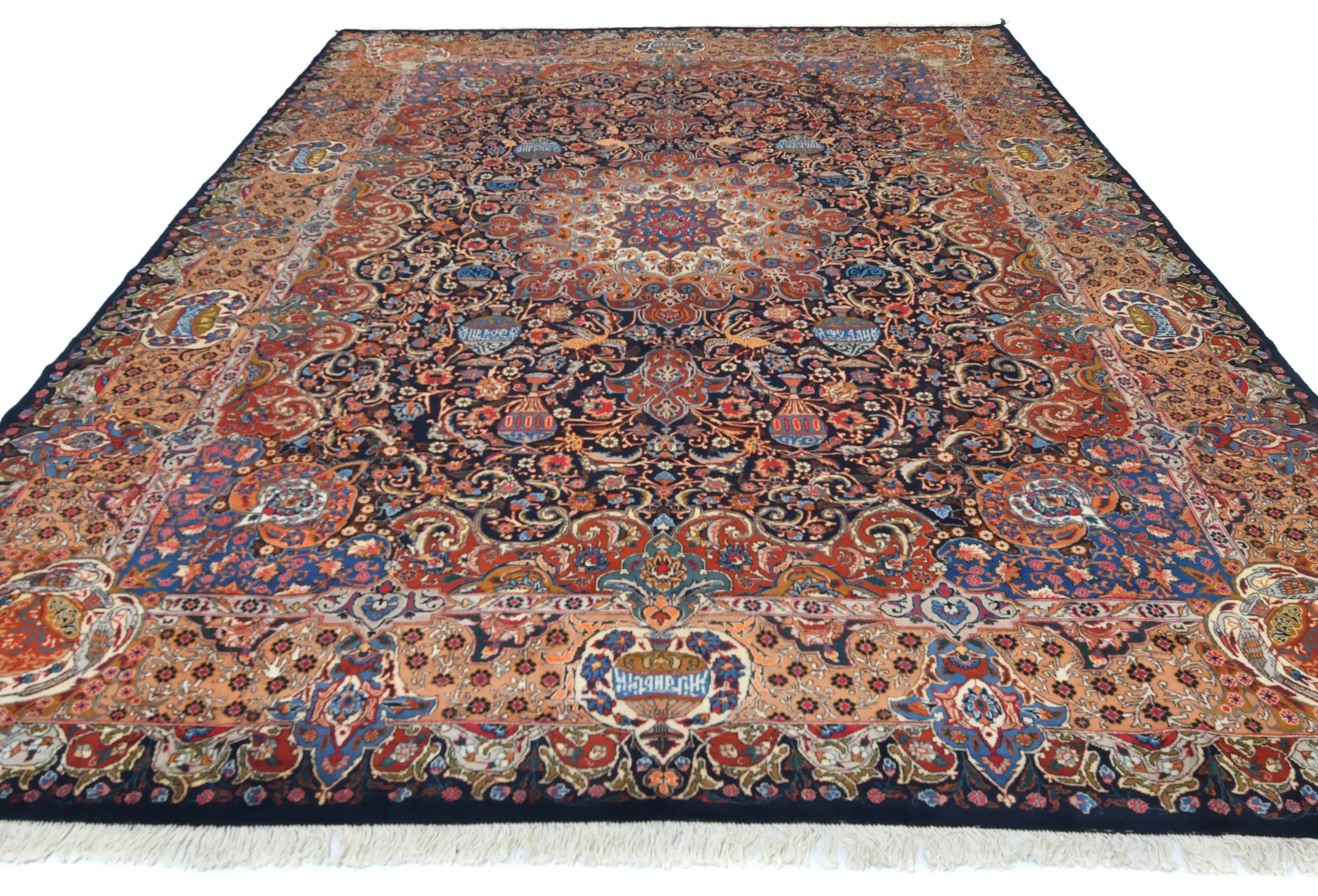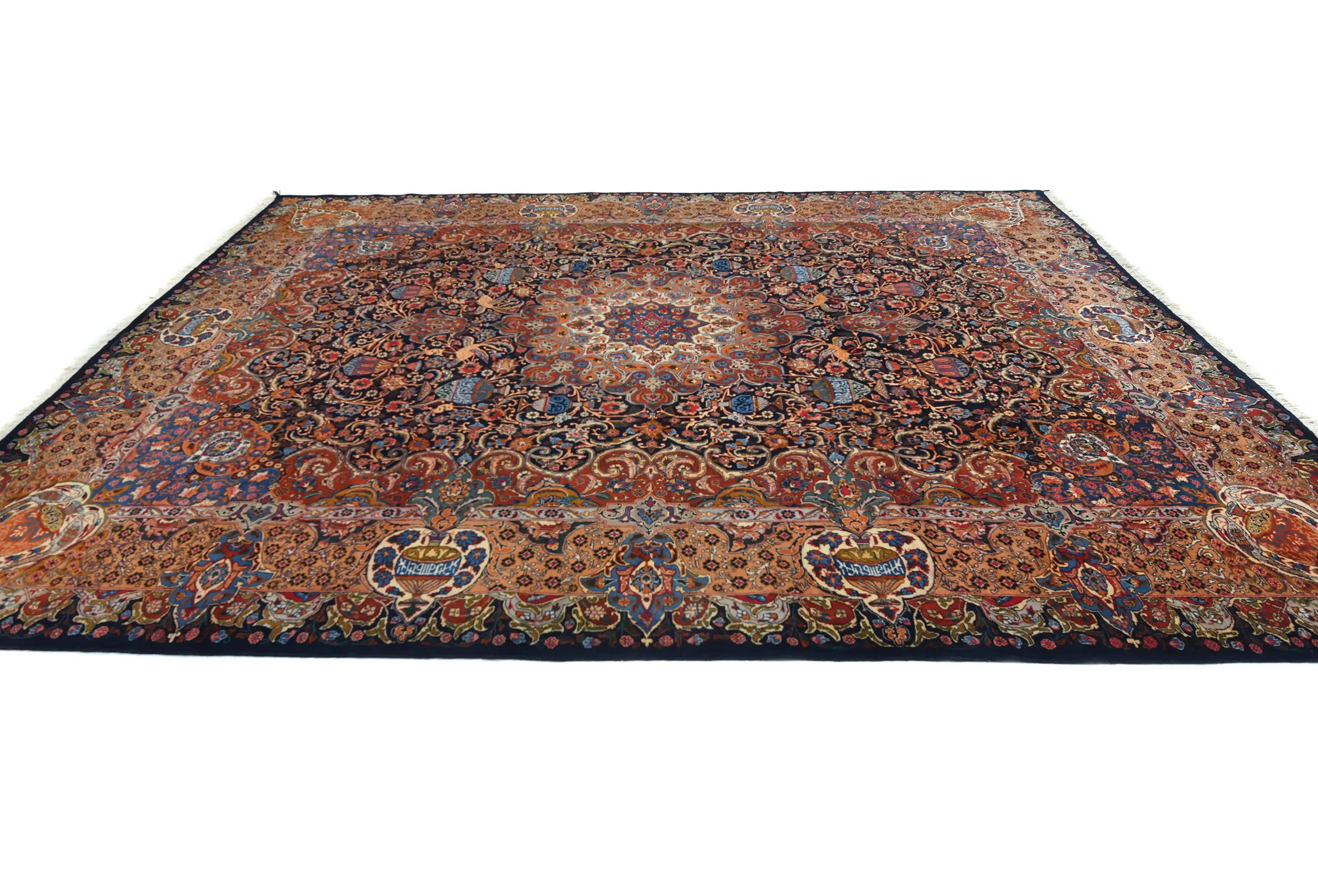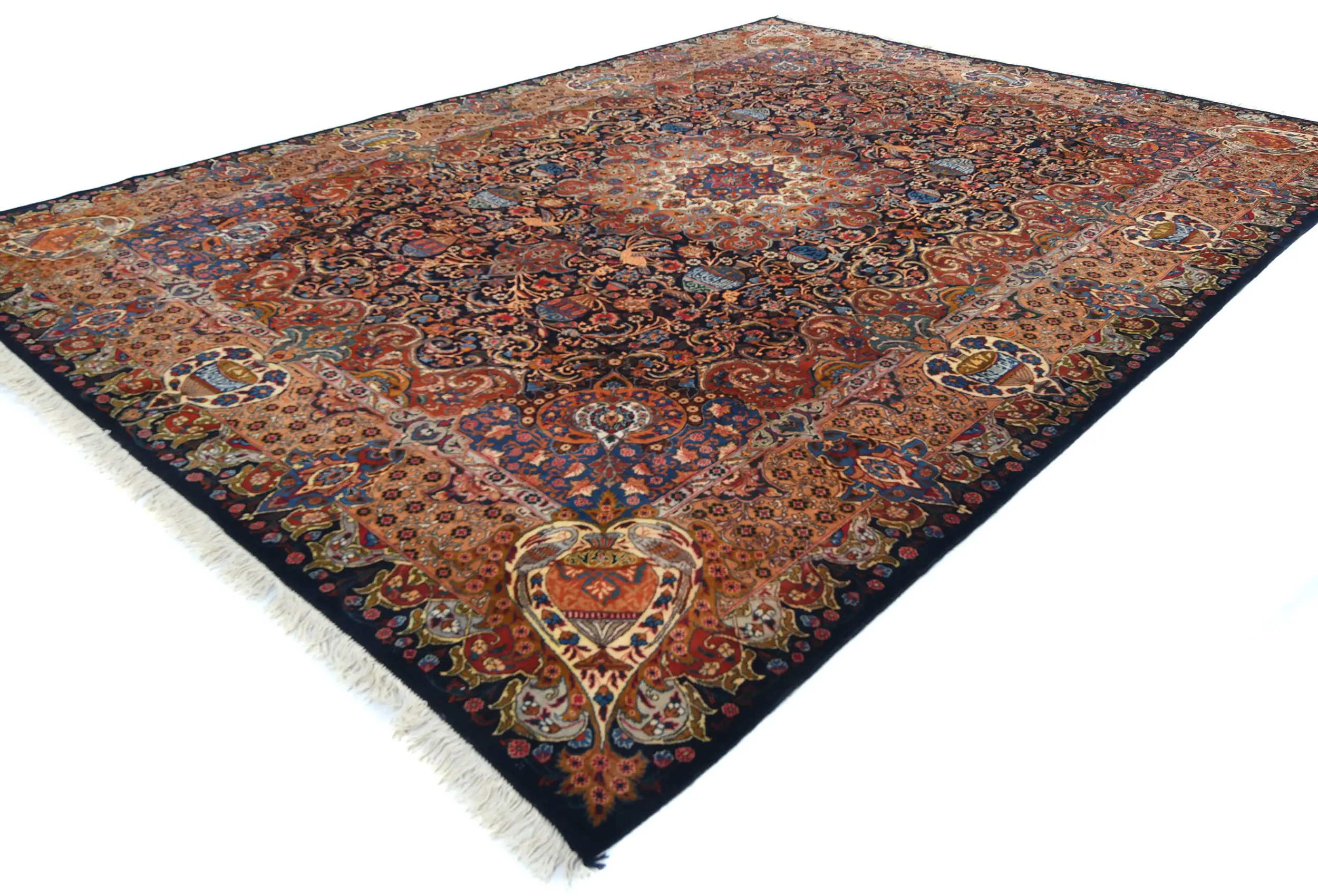 Handmade vintage 10X13 Dark Purple-navy Persian rug made with vegetable dyes (fine wool pile and cotton foundation), superior knot count, and alluring ancient designs. This Oriental rug never will go out of style and would be among your most valuable treasures.