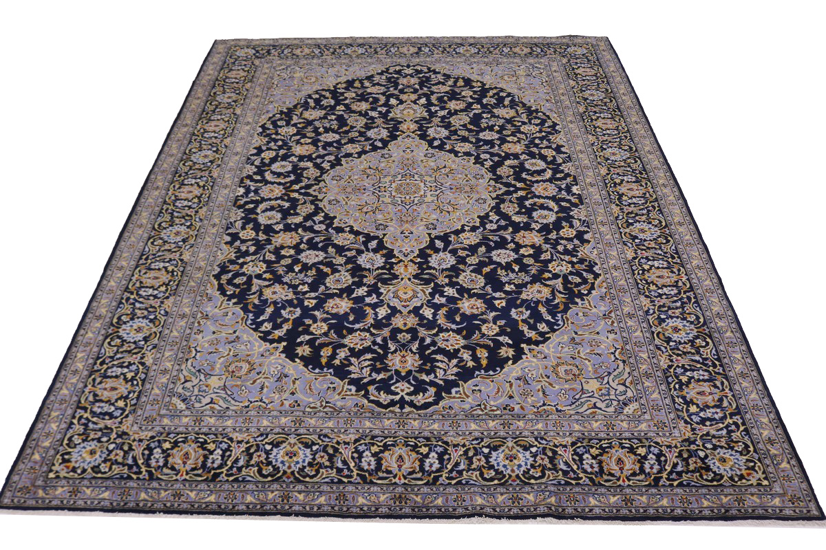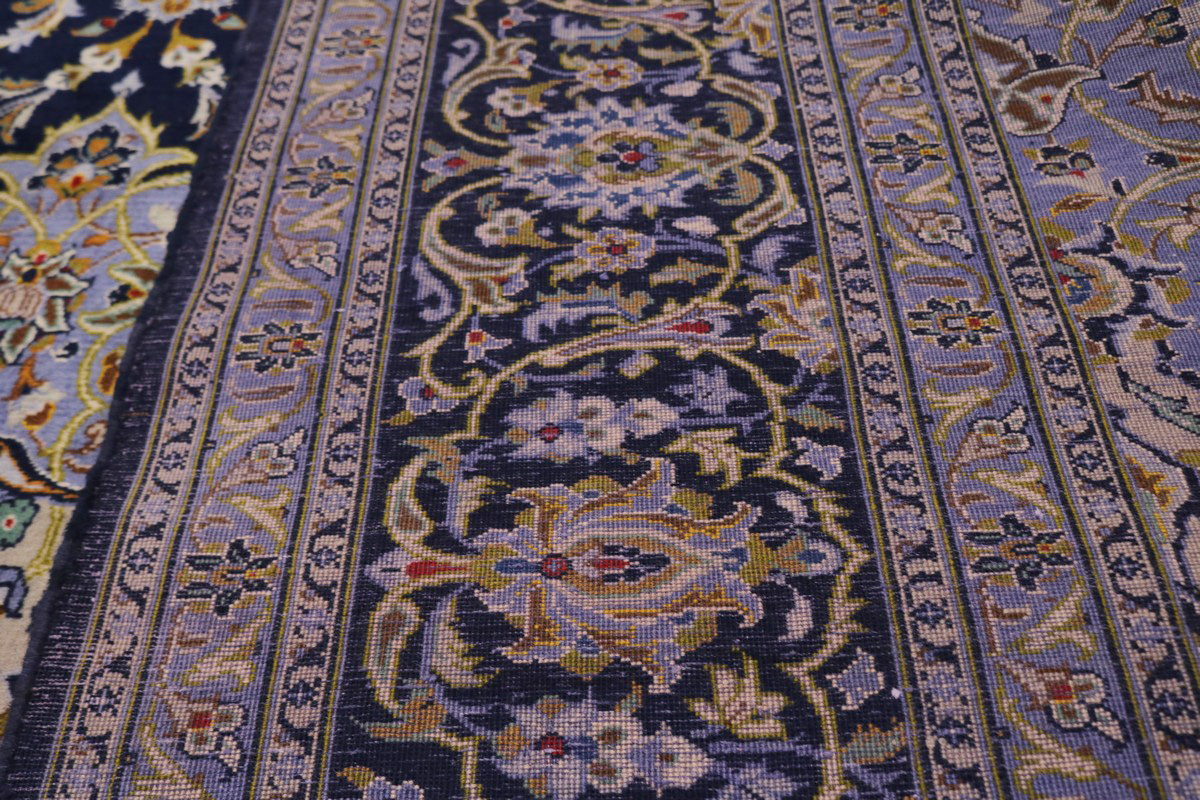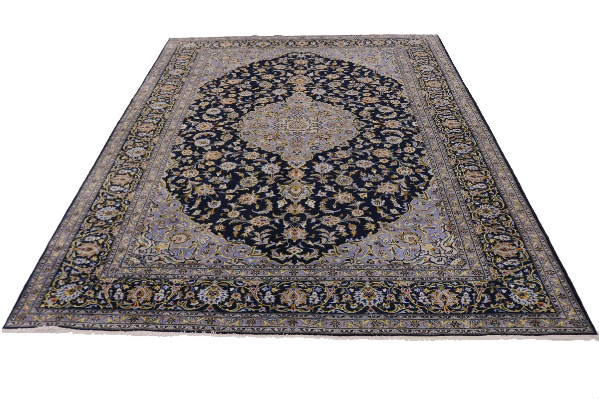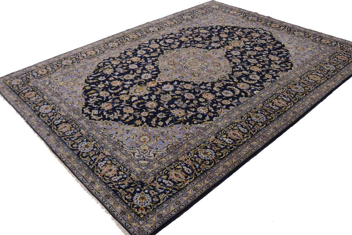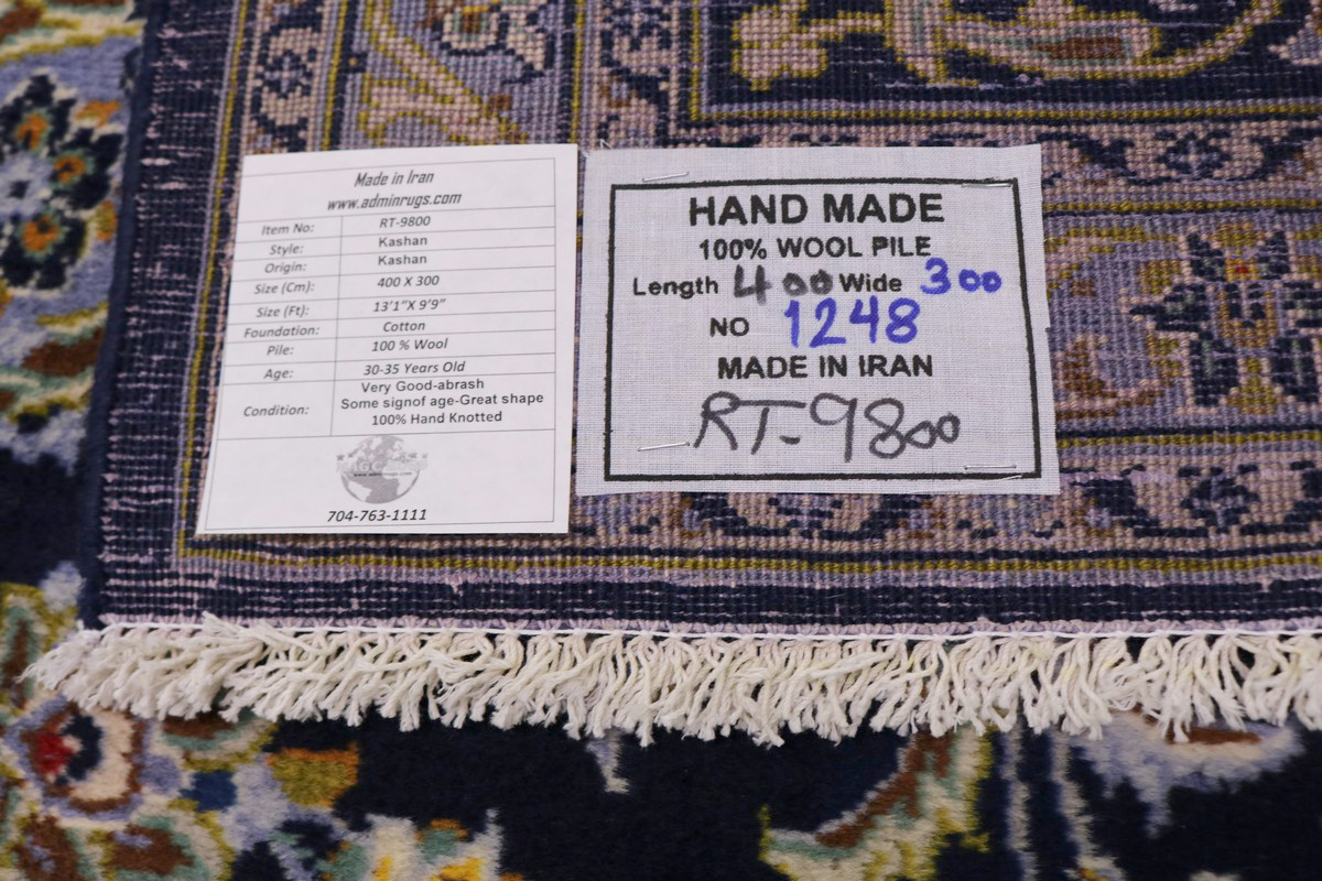 Vintage Dark Navy Traditional 10X13 Kashan Persian Rug