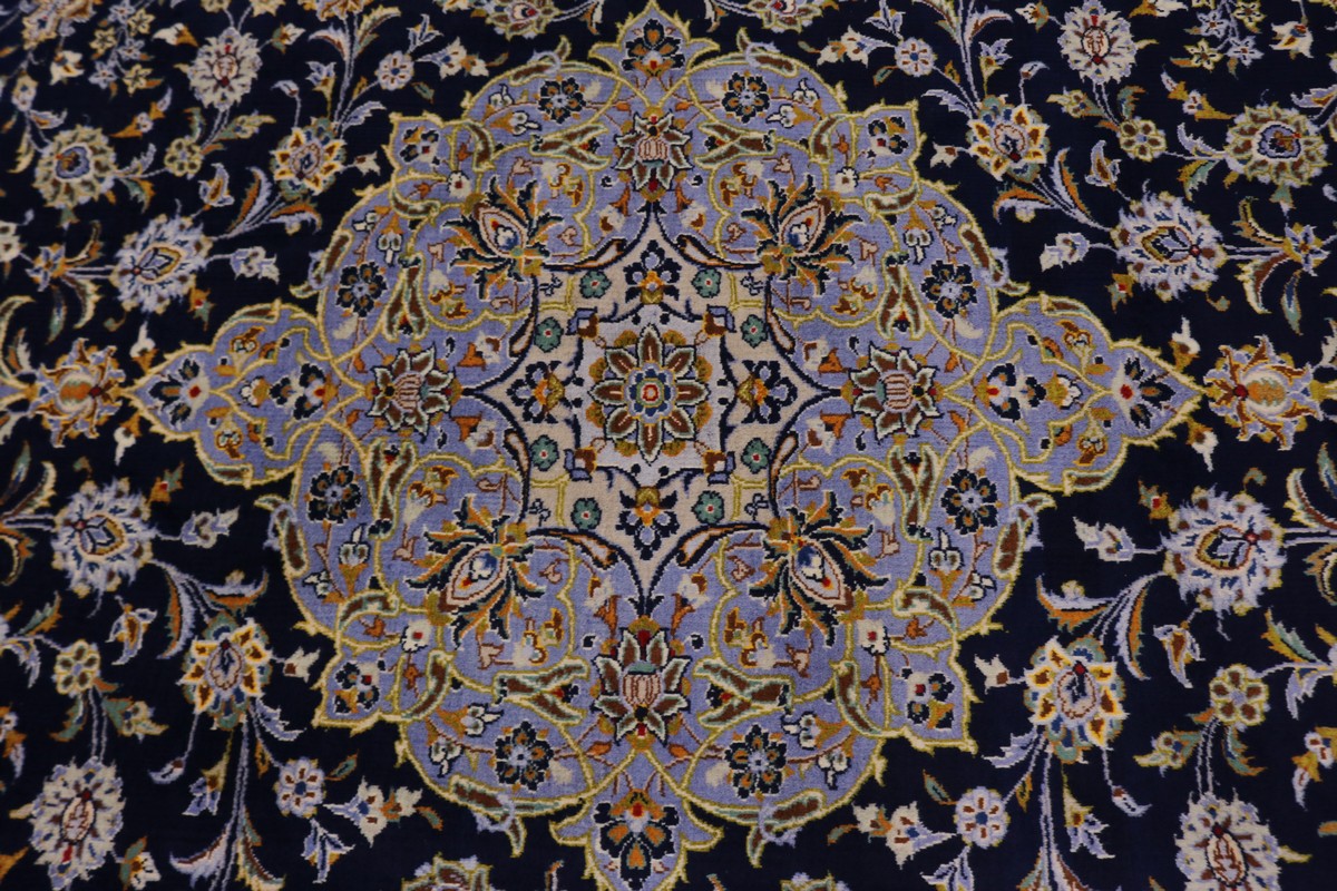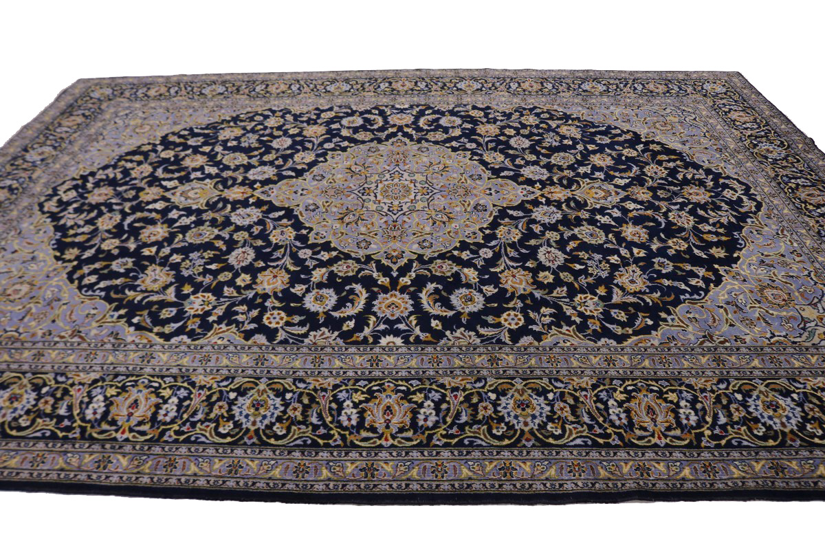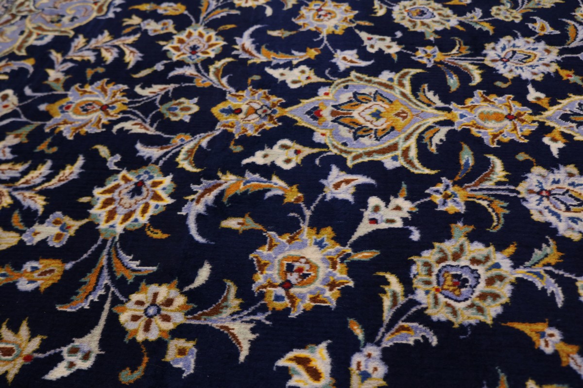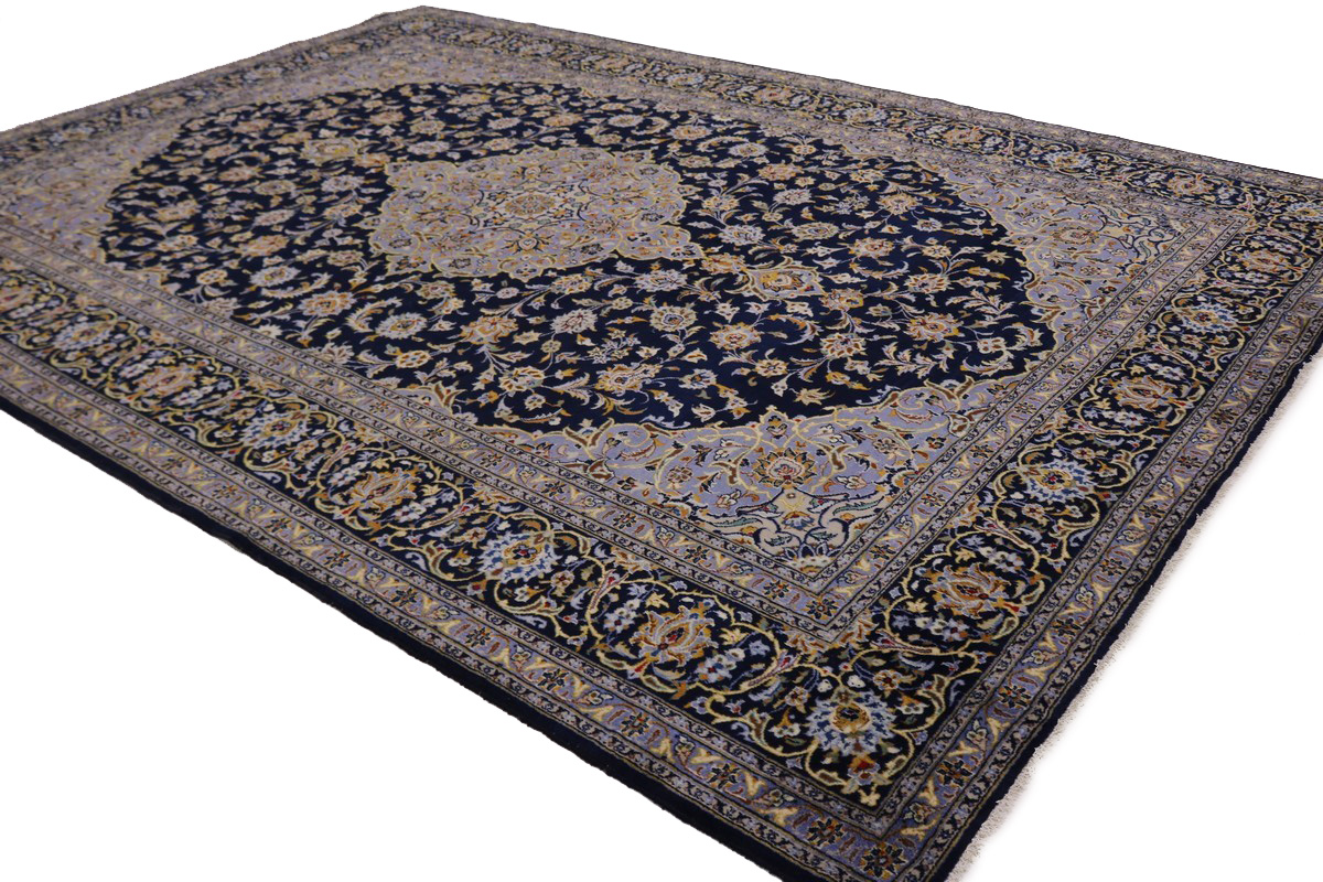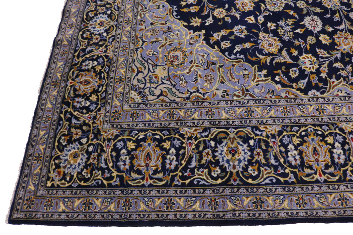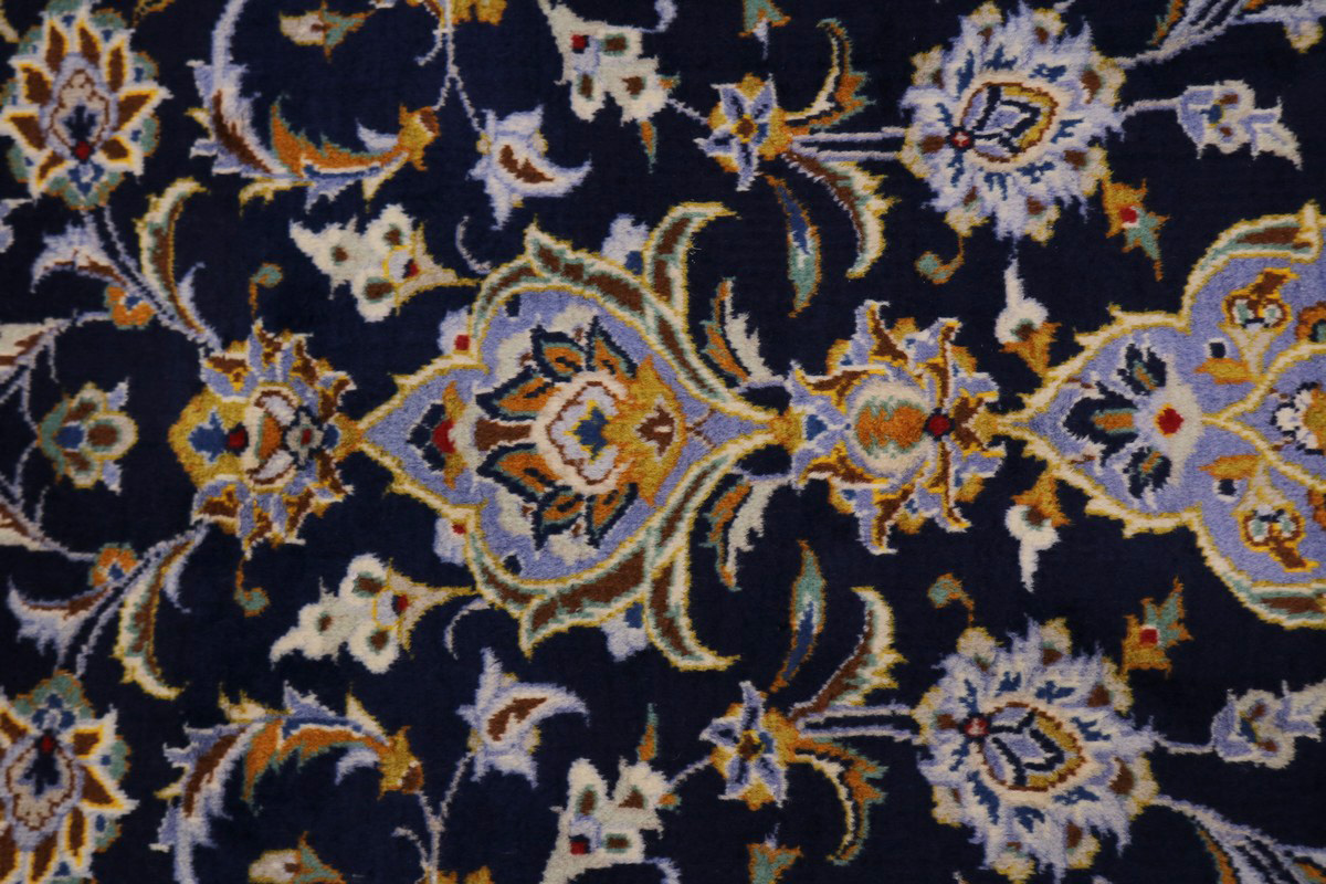 Vintage Dark Navy Traditional 10X13 Kashan Persian Rug