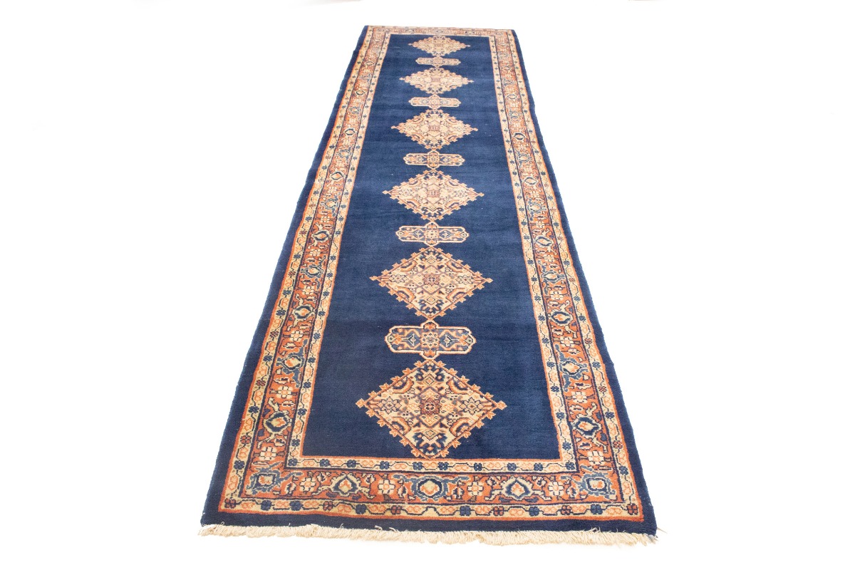 This authentic 3'7X13'6 purple vintage Persian runner was finely knotted by the hands of weavers influenced by a variety of amazing artistic designs, to recreate the aged look of the exceptional piece with a richness of color and embellished floral background field. What set this traditional Oriental area runner from the others are the material and dye used (wool pile and cotton foundation), knot count, antique designs, fantastic grades, and its regional historical connection: it has deep roots, from the story of the people who produced it to the meaning of the symbols and colors displayed across its canvas that have been praised for centuries. This classic home décor carpet will be completely cozy and inviting that never will go out of style!