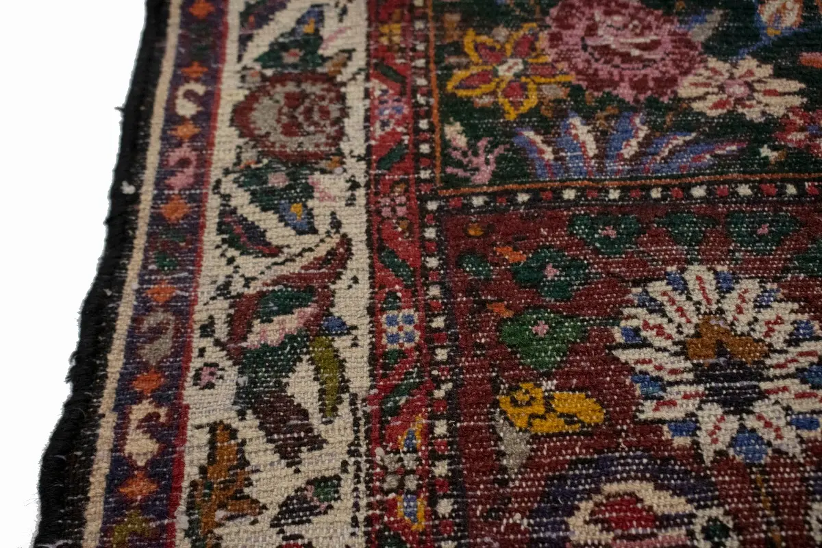 This genuine 4X5 cream & maroon red vintage Persian rug was made by the hands of gifted weavers inspired by a variety of spectacular artistic designs, to recreate the aged look of the original piece with a richness of color and ornately patterned floral background field. What set this Oriental area rug from the others are the material and dye used (wool pile and cotton foundation), knot count, ancient designs, fantastic grades, and its regional historical connection: it has deep roots, from the story of the people who produced it to the meaning of the symbols and colors displayed across its canvas that have been praised for centuries. This home decor carpet will be completely cozy and inviting that never will go out of style! Also, this Oriental rug would be among your most valuable treasures, it is a great investment that accrues value over time, and it will last for generations because was woven with high-quality, all-natural wool; it won’t rip, tear, or shed. Environmentally friendly, opulent yet affordable; this Persian rug will give you a thorough amount of character to help define your living space with elegance and warmth that will capture the eyes and attention of your audience (homeowners, designers, decorators, family and friends). RT-5504