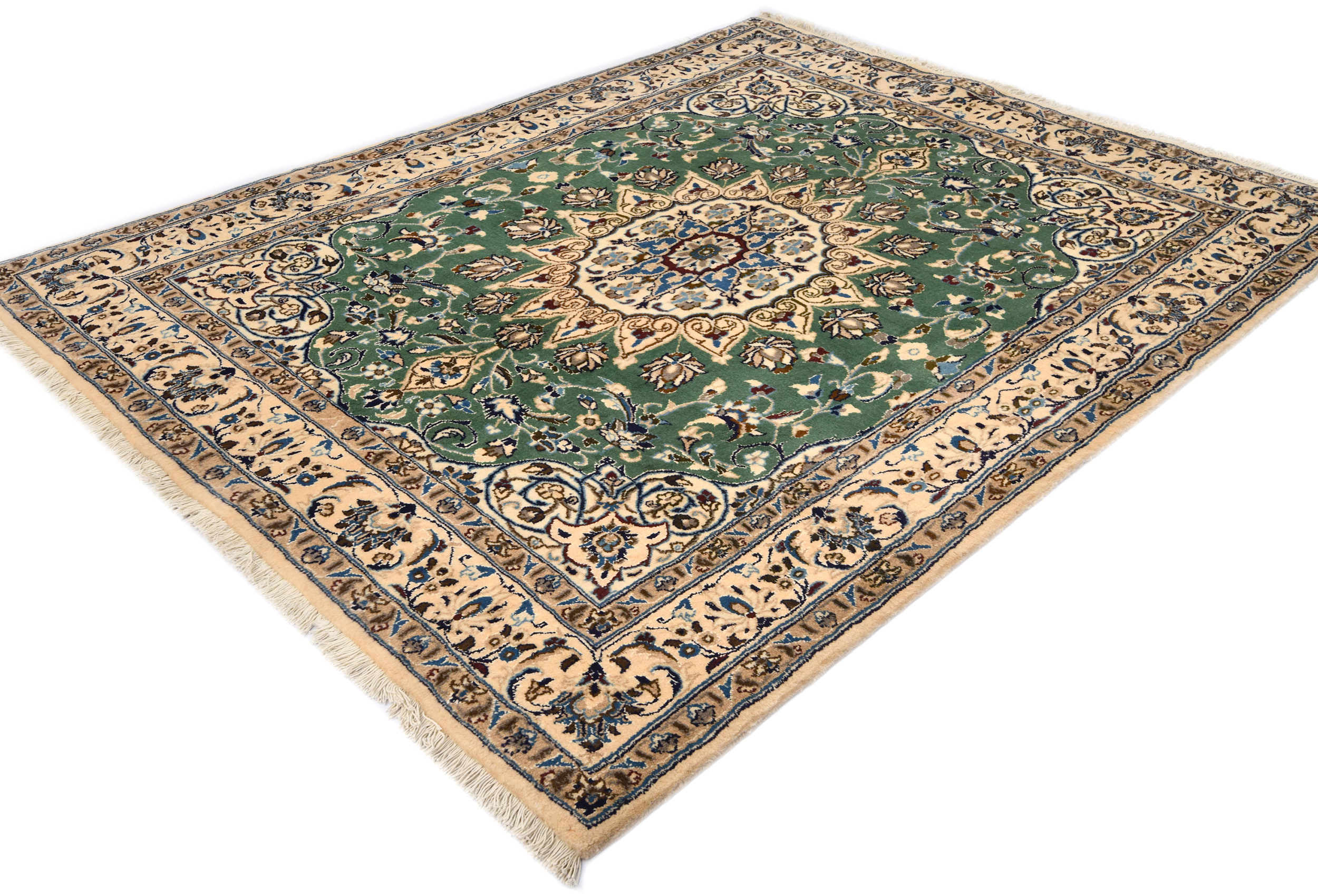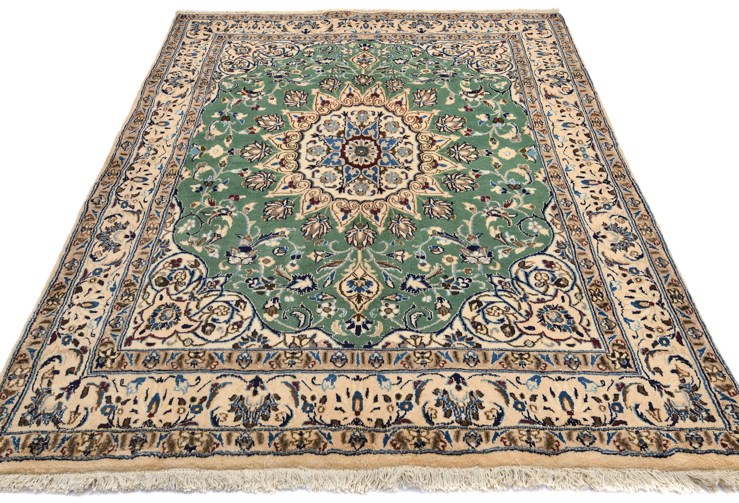Green Vintage Floral Classic Green 5X6 Nain Persian Oriental Rug