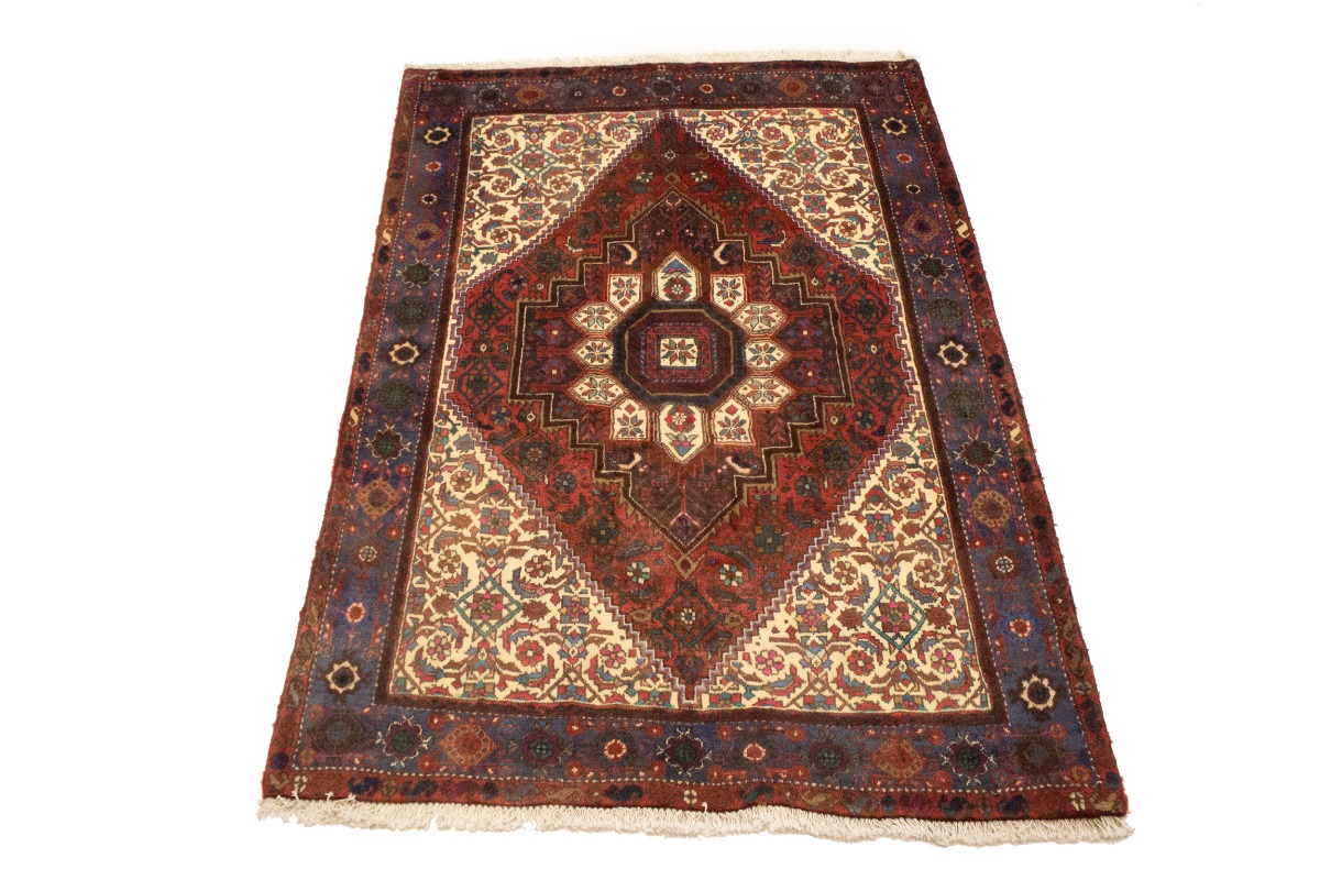 This authentic 3X5 cream vintage Persian rug was masterly knotted by the hands of weavers inspired by a variety of wonderful artistic designs, to recreate the aged look of the original piece with a richness of color and intricate patterned background field. What set this tribal Oriental area rug from the others are the material and dye used (wool pile and cotton foundation), knot count, antique designs, fantastic grades, and its regional historical connection: it has deep roots, from the story of the people who produced it to the meaning of the symbols and colors displayed across its canvas that have been praised for centuries. This home décor carpet will be completely cozy and inviting that never will go out of style! Also, this Oriental rug would be among your most valuable treasures, it is a great investment that accrues value over time, and it will last for generations because was woven with high-quality, all-natural wool; it won’t rip, tear, or shed. Environmentally friendly, opulent yet affordable; this Persian rug will give you a thorough amount of character to help define your living space with luxury and warmth that will capture the eyes and attention of your audience (homeowners, designers, decorators, family and friends). RT-1947