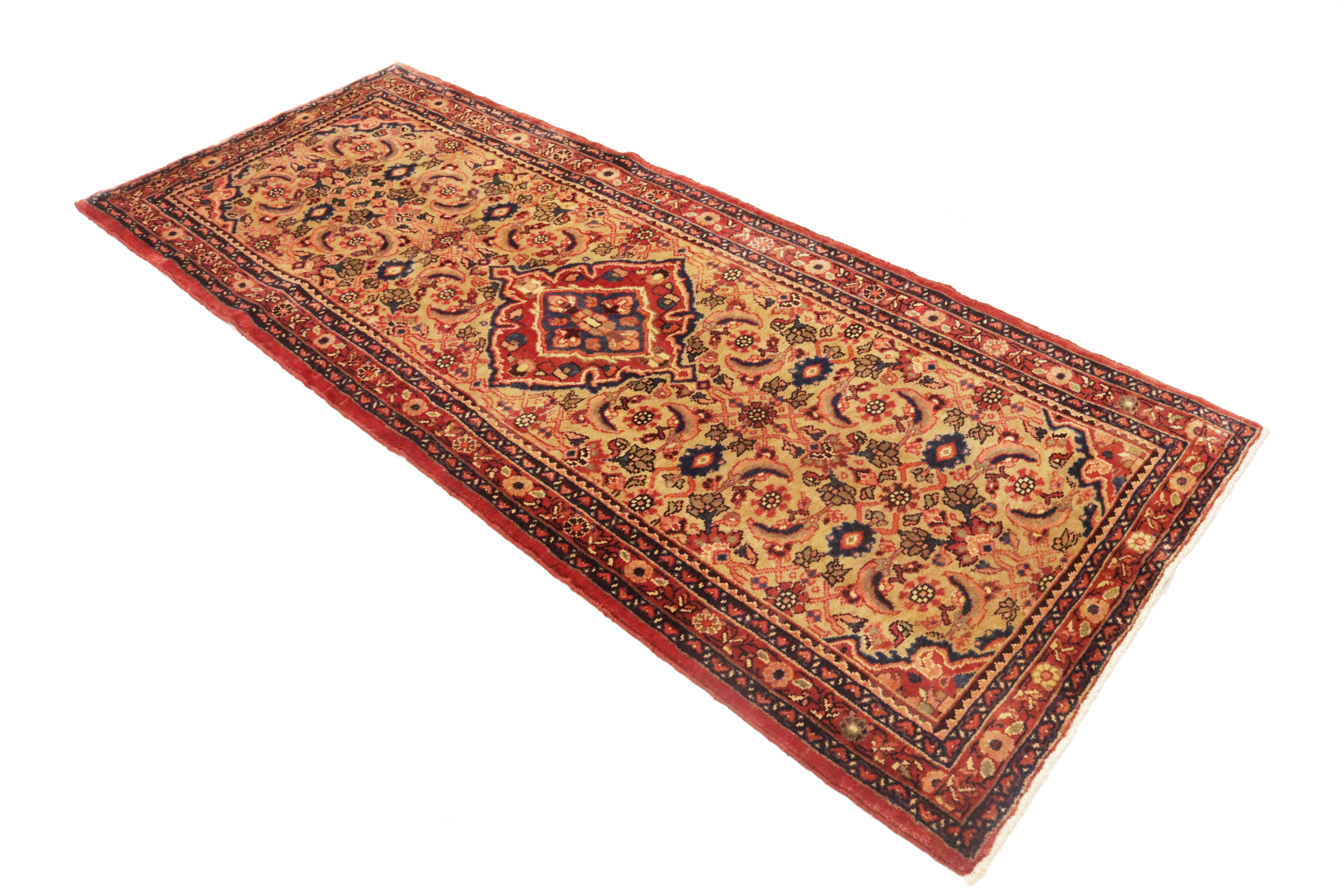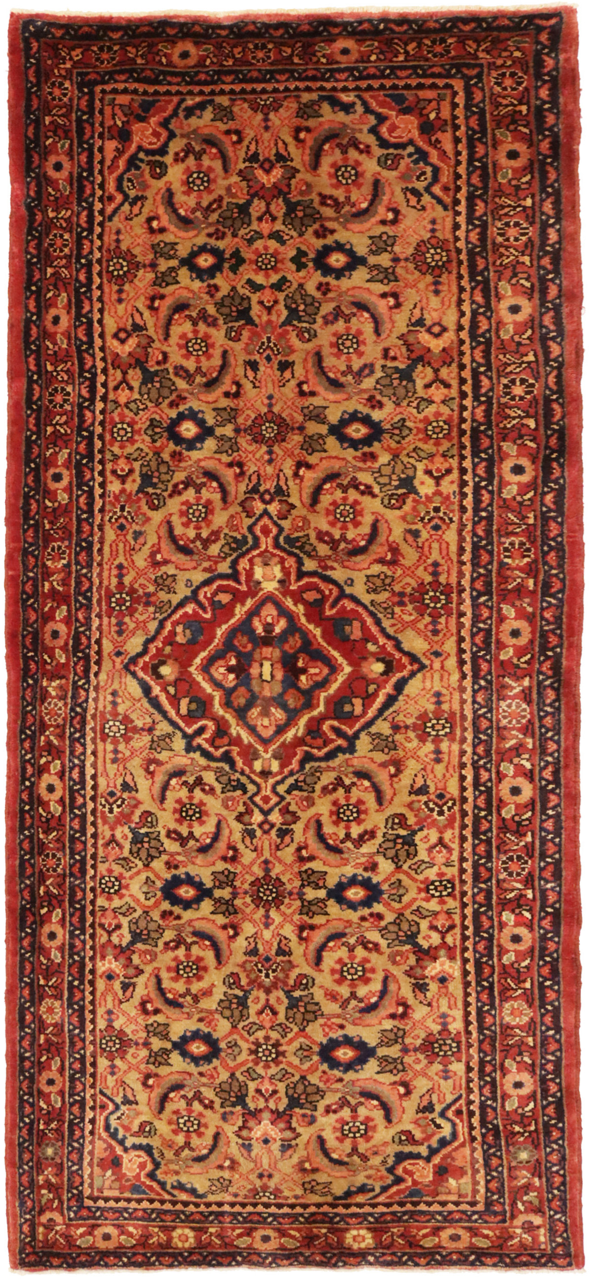 Golden Beige Vintage Floral 3'6X7'9 Hamedan Persian Rug