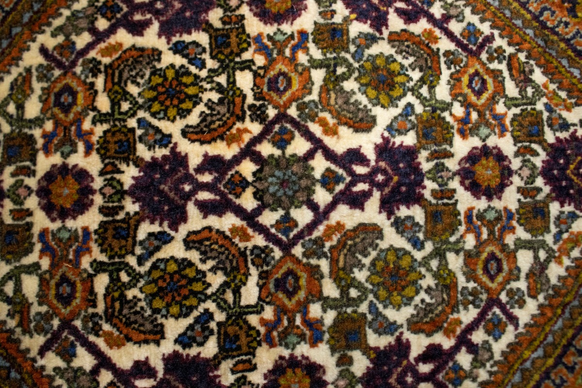 This original 4X5 orange vintage Persian rug was crafted by the hands of skilled weavers enthused by a variety of lovely artistic designs, to recreate the aged look of the unique piece with a richness of color and beautifully elaborated floral background field. What set this traditional Oriental area rug from the others are the material and dye used (wool pile and cotton foundation), knot count, ancient designs, fantastic grades, and its regional historical connection: it has deep roots, from the story of the people who produced it to the meaning of the symbols and colors displayed across its canvas that have been praised for centuries. This classic home décor carpet will be completely cozy and inviting that never will go out of style! Also, this Oriental rug would be among your most valuable treasures, it is a great investment that increase in value over time, and it will last for generations because was woven with high-quality, all-natural wool; it won’t rip, tear, or shed. Environmentally friendly, opulent yet affordable; this Persian rug will give you a thorough amount of character to help define your living space with sophistication and warmth that will capture the eyes and attention of your audience (homeowners, designers, decorators, family and friends). RT-1596