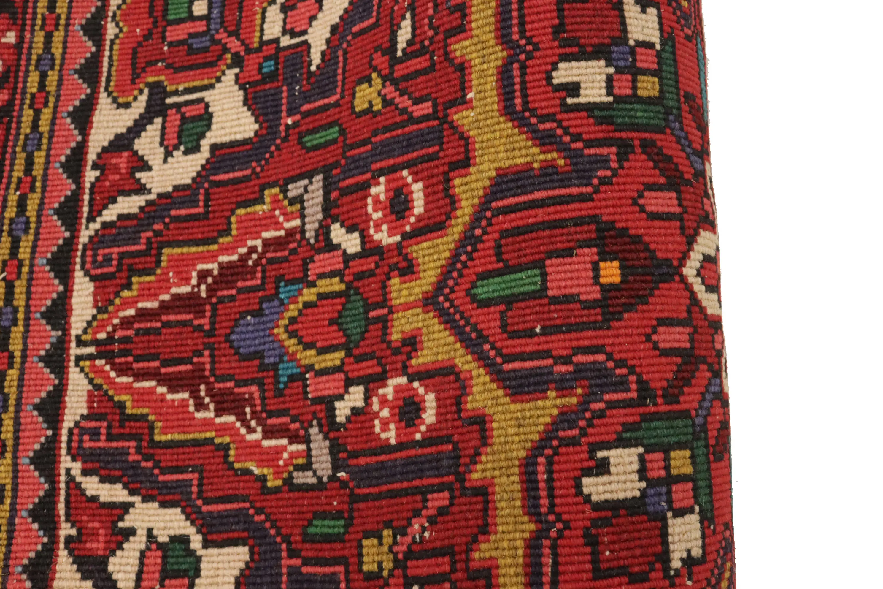 This original 2'6X3'2 red vintage Persian rug was crafted by the hands of skilled weavers enthused by a variety of lovely artistic designs, to recreate the aged look of the unique piece with a richness of color and beautifully elaborated background field. What set this tribal Oriental area rug from the others are the material and dye used (wool pile and cotton foundation), knot count, ancient designs, fantastic grades, and its regional historical connection: it has deep roots, from the story of the people who produced it to the meaning of the symbols and colors displayed across its canvas that have been praised for centuries. This home décor carpet will be completely cozy and inviting that never will go out of style! Also, this Oriental rug would be among your most valuable treasures, it is a great investment that increase in value over time, and it will last for generations because was woven with high-quality, all-natural wool; it won’t rip, tear, or shed. Environmentally friendly, opulent yet affordable; this Persian rug will give you a thorough amount of character to help define your living space with sophistication and warmth that will capture the eyes and attention of your audience (homeowners, designers, decorators, family and friends). RT-2388