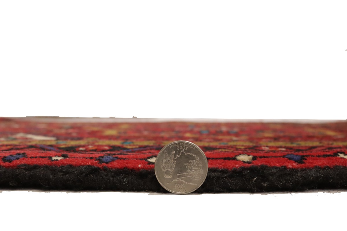 Hand Knotted vintage 2'6X3'2 red Persian rug made with natural dyes (fine wool pile and cotton foundation), superior knot count, and alluring ancient designs. This Oriental rug never will go out of style and would be among your most valuable treasures.