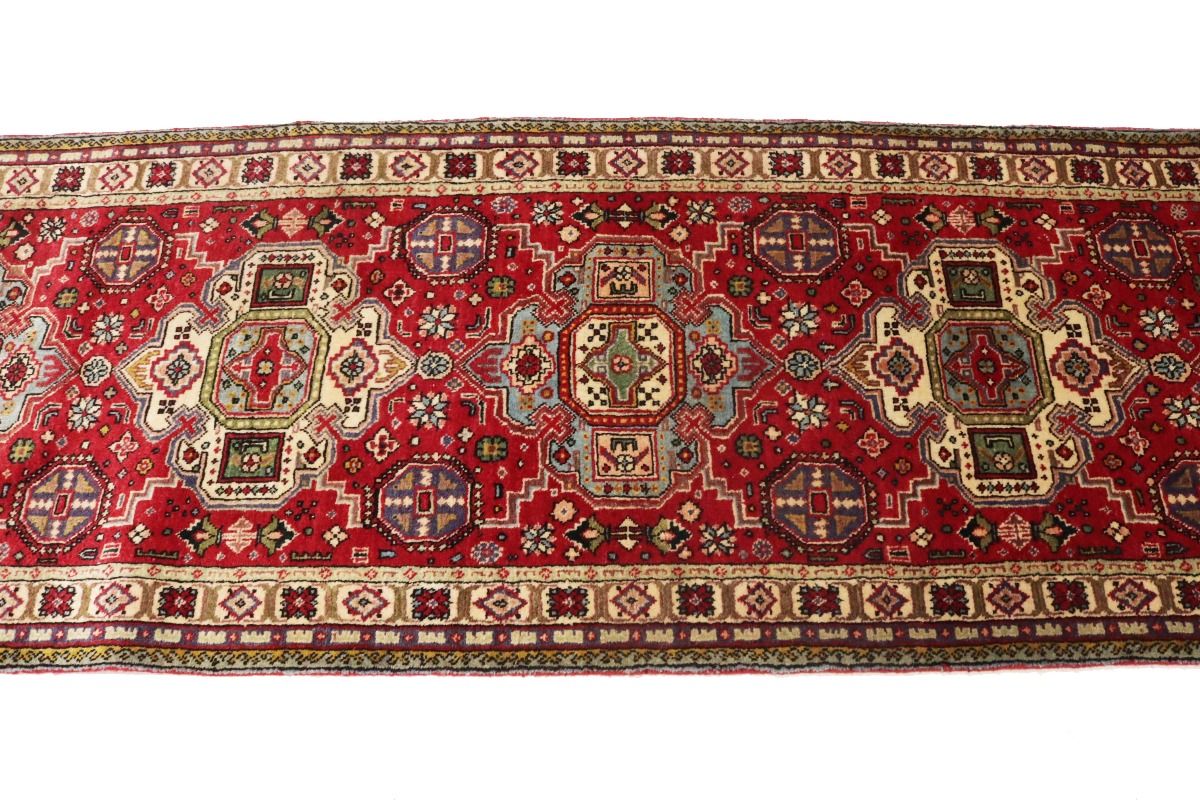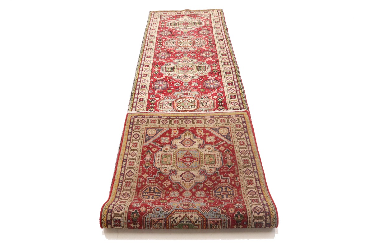 Hand Knotted vintage 3X12 red Persian runner made with vegetable dyes (fine wool pile and cotton foundation), exceptional knot count, and appealing ancient designs. This Oriental runner never will go out of style and would be among your most valuable treasures.