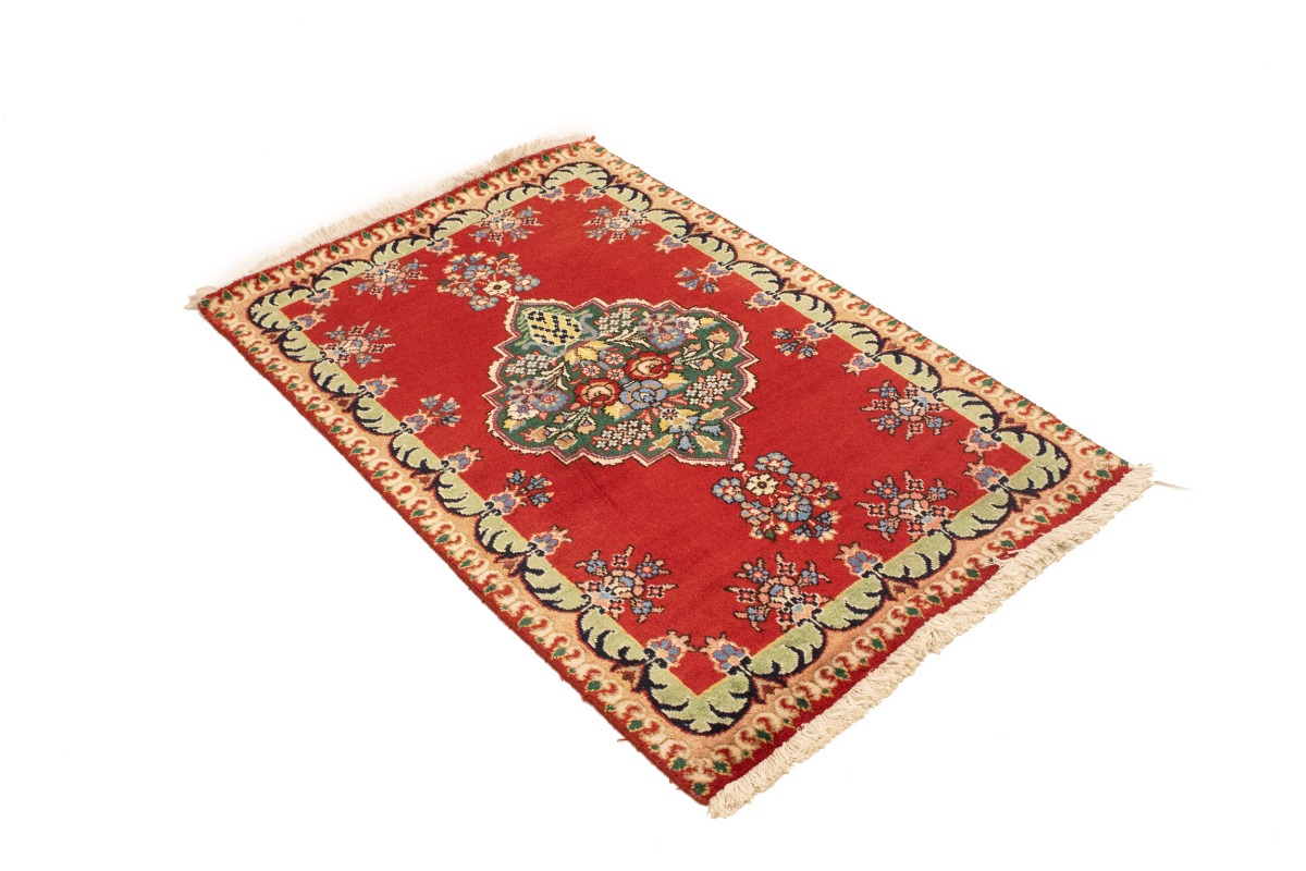 Handmade vintage 3X4'6 red Persian rug made with vegetable dyes (fine wool pile and cotton foundation), superior knot count, and appealing ancient designs. This Oriental rug never will go out of style and would be among your most valuable treasures.