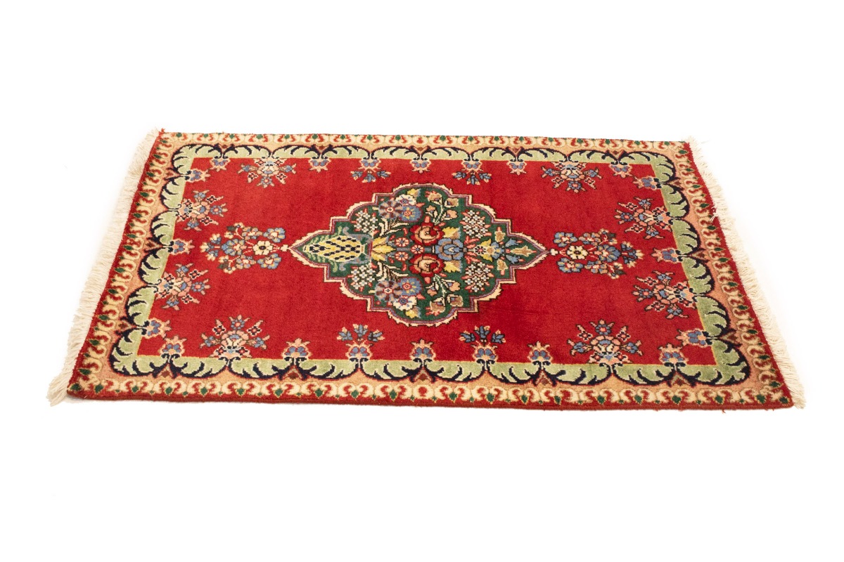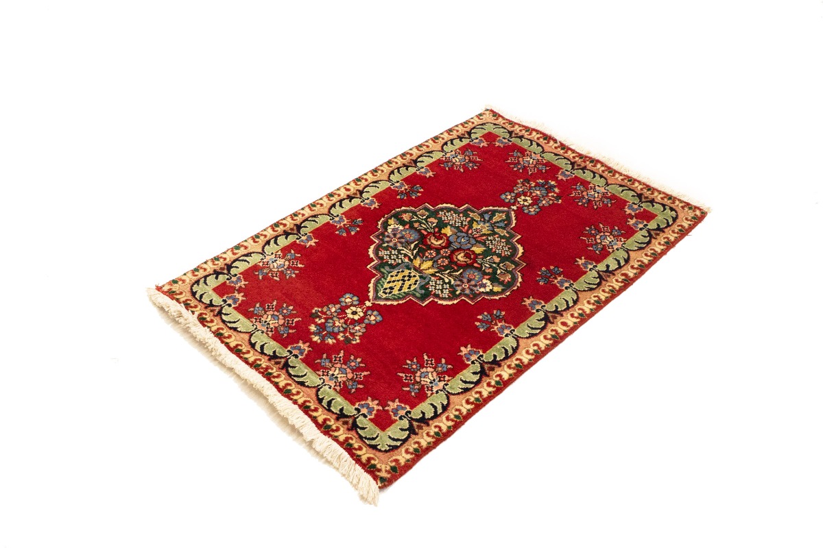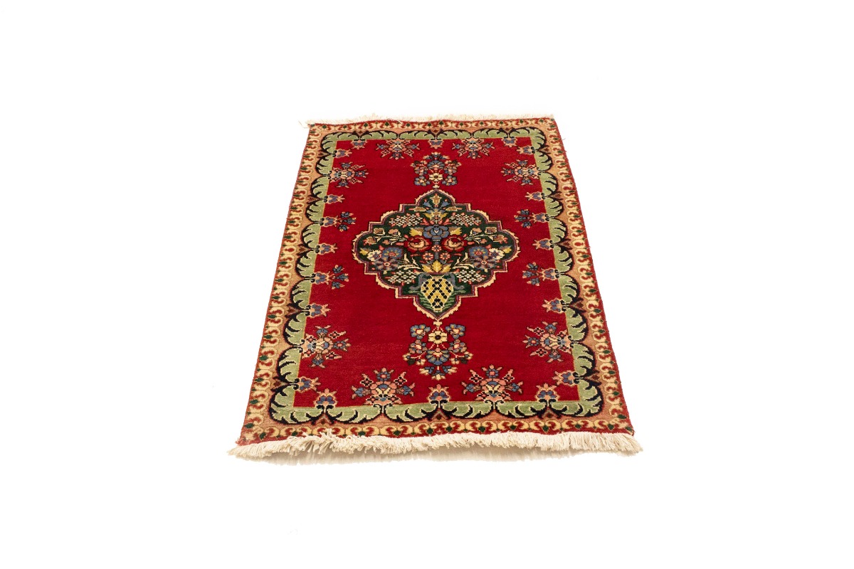 This original 3X4'6 red vintage Persian rug was crafted by the hands of skilled weavers enthused by a variety of lovely artistic designs, to recreate the aged look of the unique piece with a richness of color and beautifully elaborated floral background field. What set this traditional Oriental area rug from the others are the material and dye used (wool pile and cotton foundation), knot count, ancient designs, fantastic grades, and its regional historical connection: it has deep roots, from the story of the people who produced it to the meaning of the symbols and colors displayed across its canvas that have been praised for centuries. This classic home décor carpet will be completely cozy and inviting that never will go out of style! Also, this Oriental rug would be among your most valuable treasures, it is a great investment that increase in value over time, and it will last for generations because was woven with high-quality, all-natural wool; it won’t rip, tear, or shed. Environmentally friendly, opulent yet affordable; this Persian rug will give you a thorough amount of character to help define your living space with sophistication and warmth that will capture the eyes and attention of your audience (homeowners, designers, decorators, family and friends). RT-10430