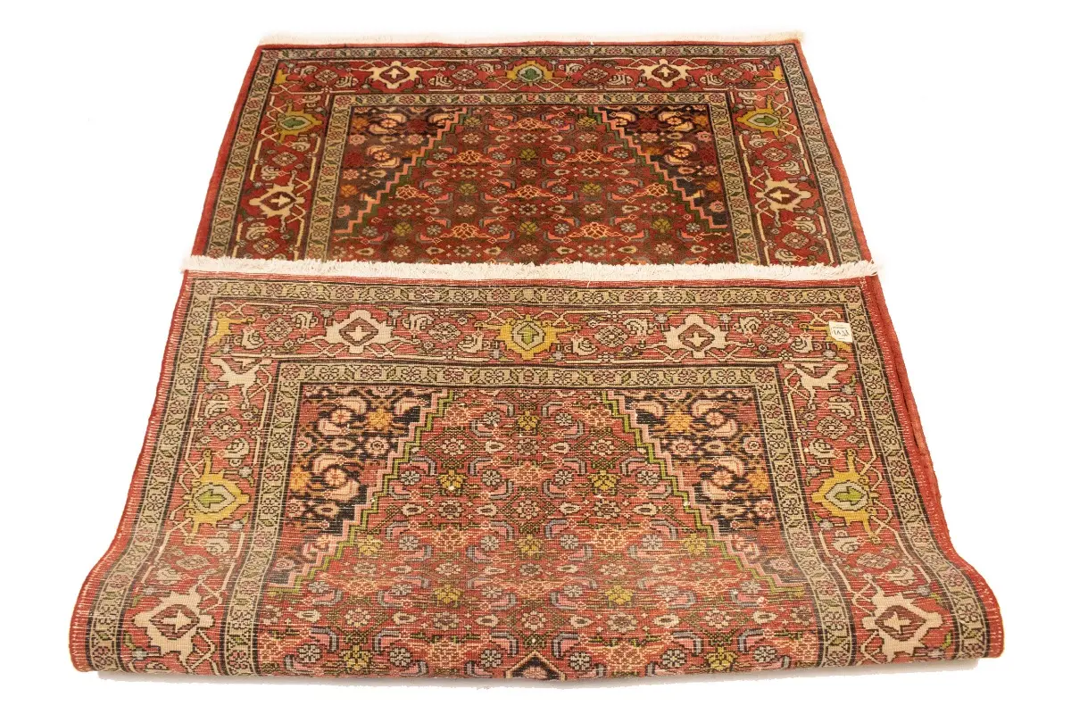 Handmade vintage 4X7 red Persian rug made with vegetable dyes (fine wool pile and cotton foundation), superior knot count, and alluring ancient designs. This Oriental rug never will go out of style and would be among your most valuable treasures.