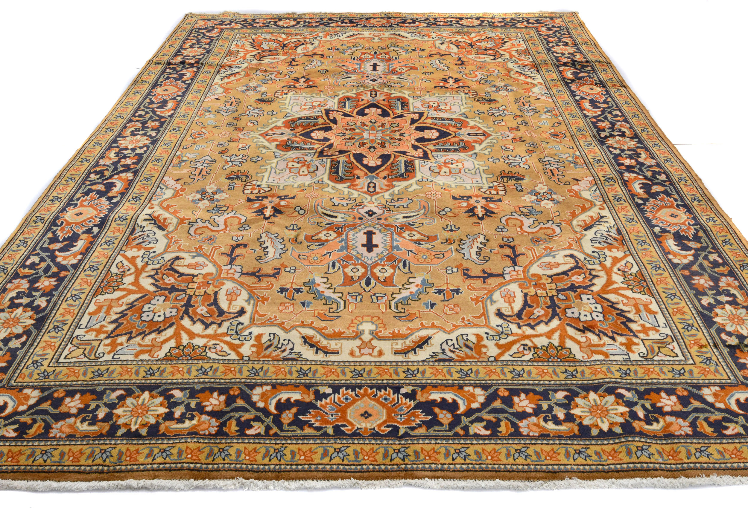 This authentic 8X11 beige vintage Persian rug was finely knotted by the hands of weavers influenced by a variety of amazing artistic designs, to recreate the aged look of the exceptional piece with a richness of color and embellished floral background field. What set this traditional Oriental area rug from the others are the material and dye used (wool pile and cotton foundation), knot count, antique designs, fantastic grades, and its regional historical connection: it has deep roots, from the story of the people who produced it to the meaning of the symbols and colors displayed across its canvas that have been praised for centuries. This classic home décor carpet will be completely cozy and inviting that never will go out of style! Also, this Oriental rug would be among your most valuable treasures, it is a great investment that increase in value over time, and it will last a lifetime because was woven with high-quality, all-natural wool; it won’t rip, tear, or shed. Eco-friendly, opulent yet affordable; this Persian rug will give you an extra pop of character to help define your home environment with luxury and warmth that will capture the eyes and attention of your audience (homeowners, designers, decorators, family and friends). RT-5860