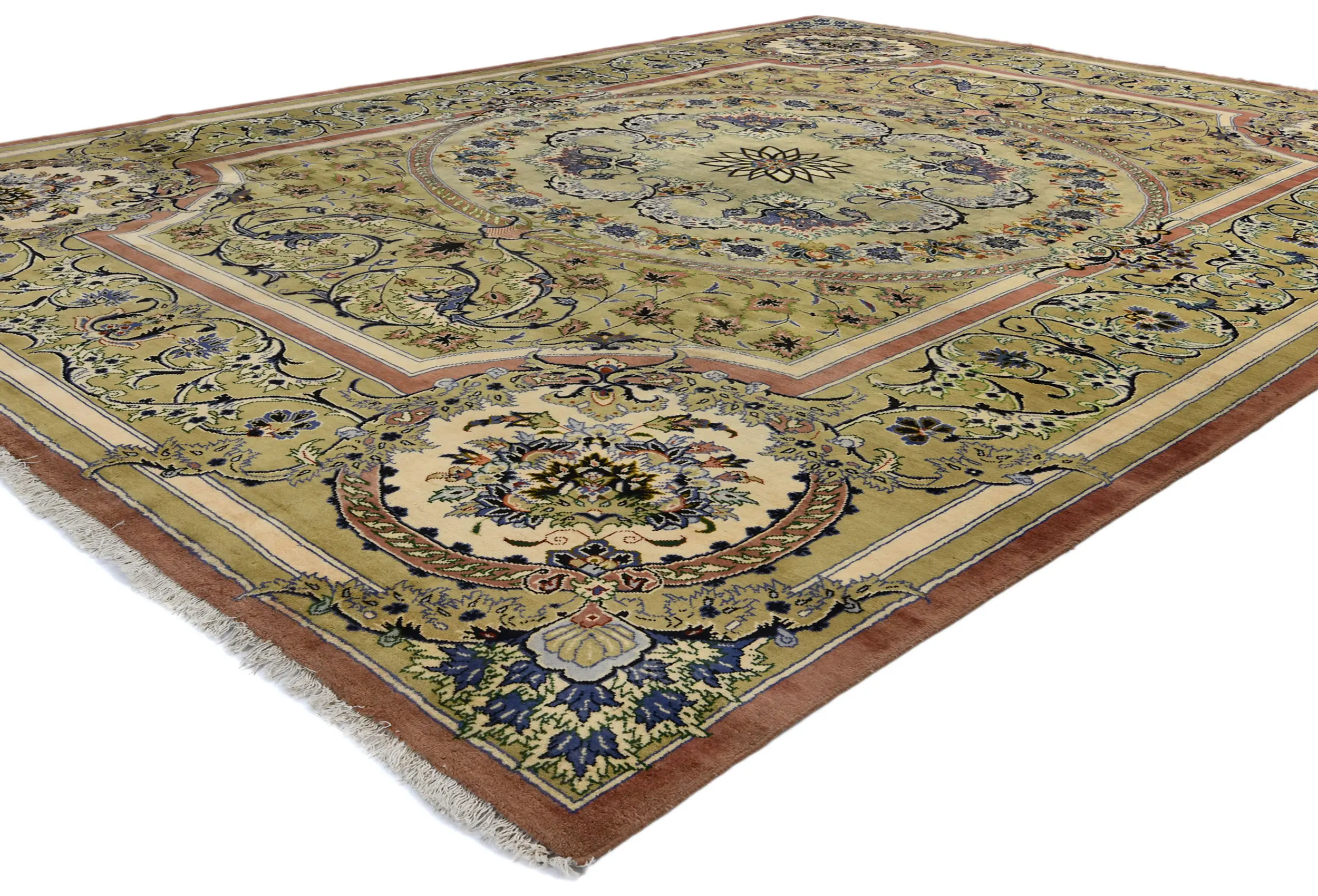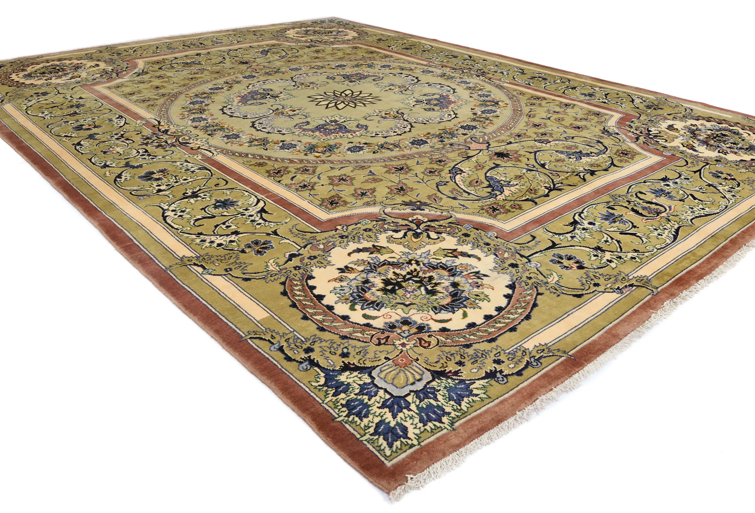 Golden Olive Vintage Floral Traditional 9'9X13'5 Kashan Persian Oriental Rug