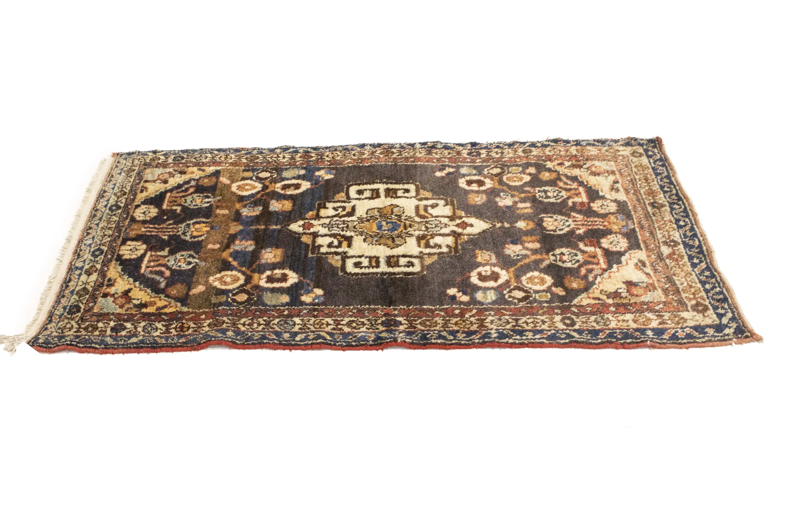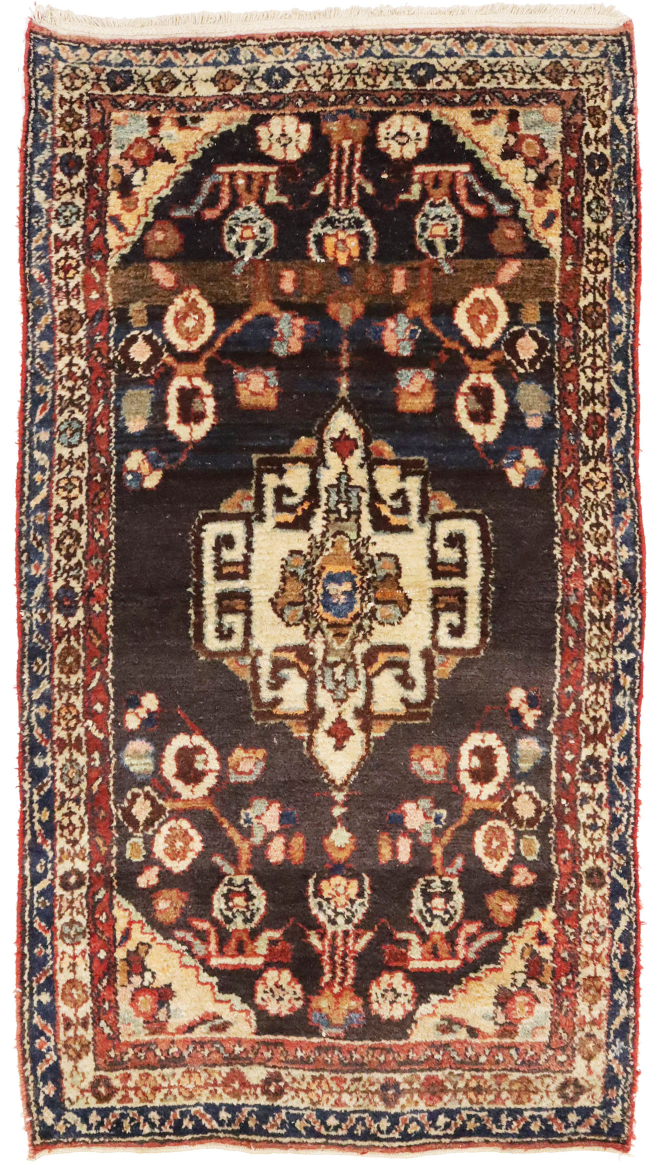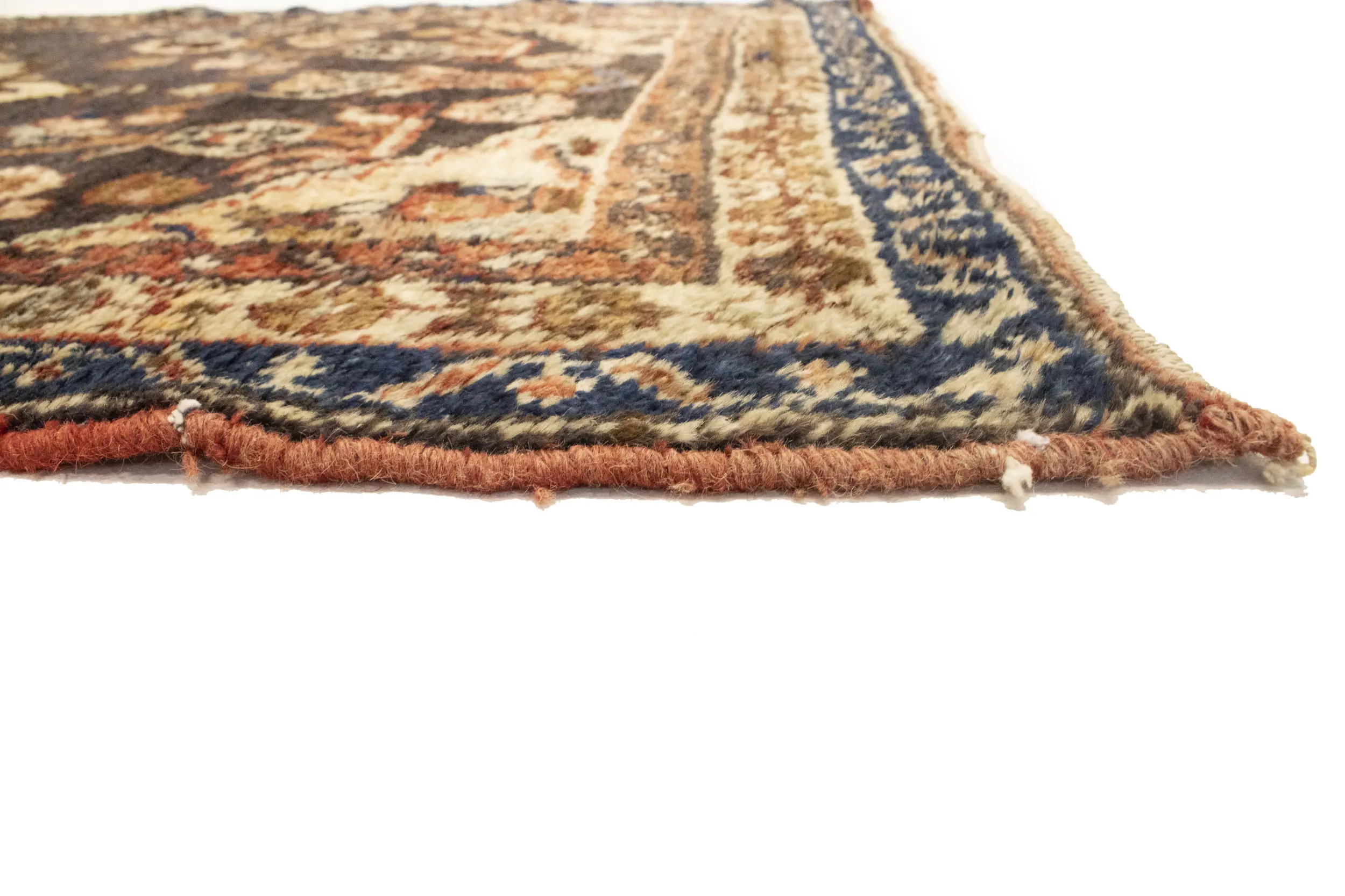 Handmade vintage 3X6 brown Persian rug made with vegetable dyes (fine wool pile and cotton foundation), exceptional knot count, and appealing ancient designs. This Oriental rug never will go out of style and would be among your most valuable treasures.