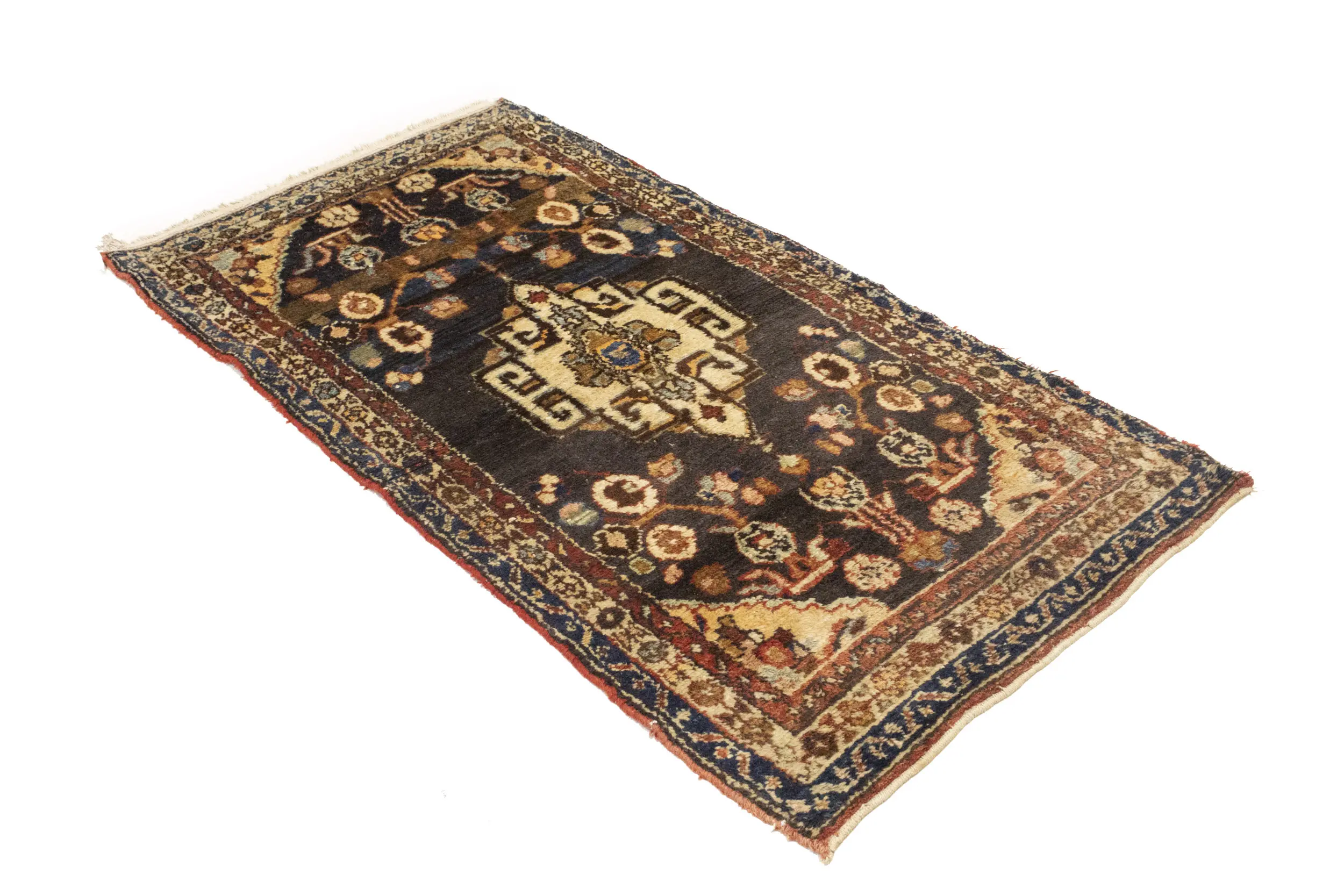 Muted Dark Brown Vintage Floral Tribal 3X6 Hamedan Persian Oriental Rug