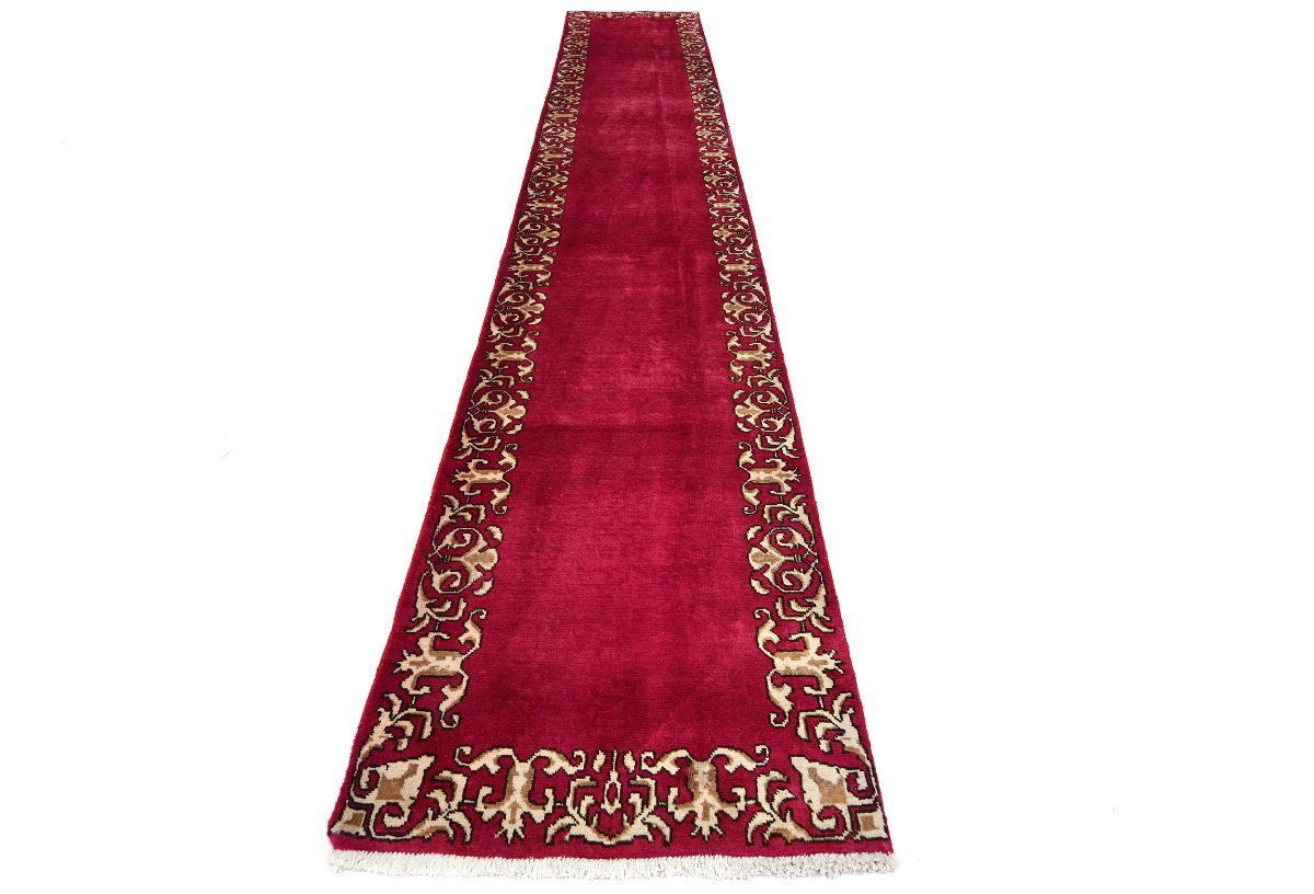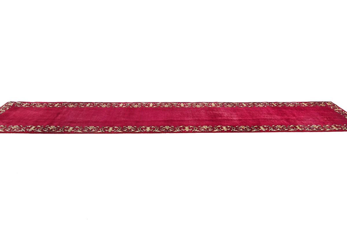 Vintage Fuchsia Rose Classic 2'7X15'4 Tabriz Persian Runner Rug