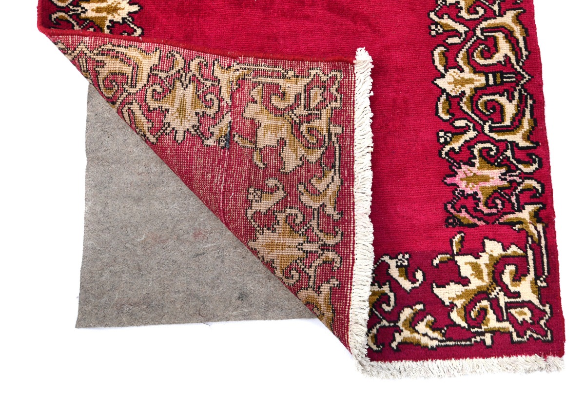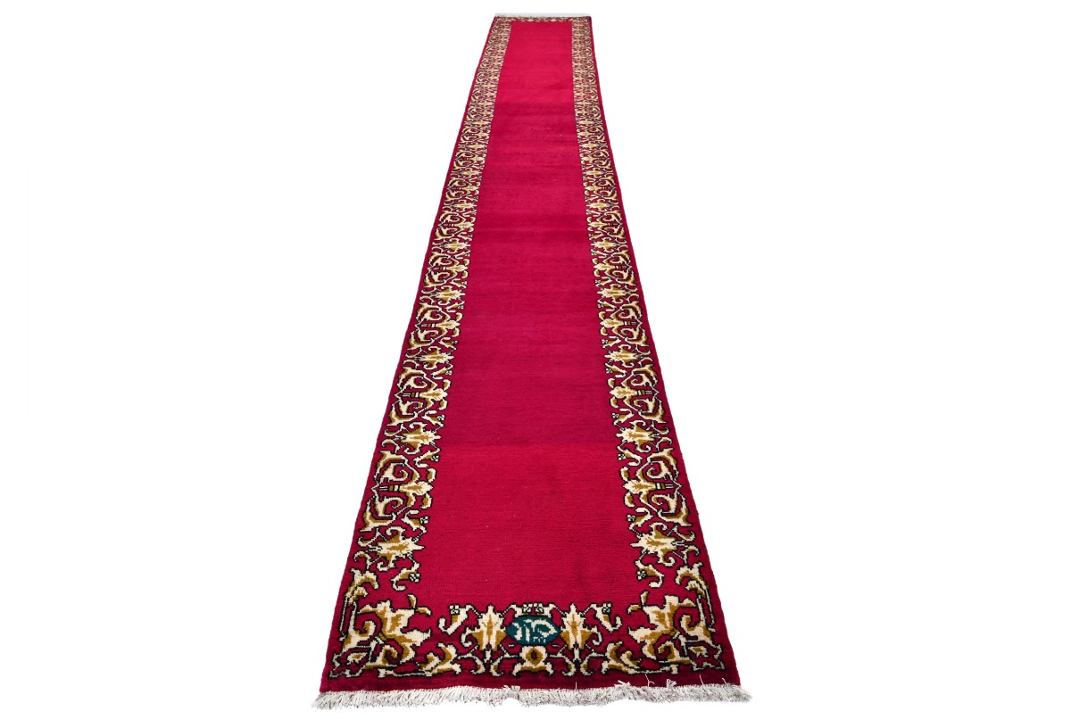 This authentic 2'9X19 fuchsia rose vintage Persian runner was finely knotted by the hands of weavers influenced by a variety of amazing artistic designs, to recreate the aged look of the exceptional piece with a richness of color and embellished floral background field. What set this traditional Oriental area runner from the others are the material and dye used (wool pile and cotton foundation), knot count, antique designs, fantastic grades, and its regional historical connection: it has deep roots, from the story of the people who produced it to the meaning of the symbols and colors displayed across its canvas that have been praised for centuries. This classic home décor carpet will be completely cozy and inviting that never will go out of style! Also, this Oriental runner would be among your most valuable treasures, it is a great investment that increase in value over time, and it will last a lifetime because was woven with high-quality, all-natural wool; it won’t rip, tear, or shed. Eco-friendly, opulent yet affordable; this Persian rug will give you an extra pop of character to help define your home environment with luxury and warmth that will capture the eyes and attention of your audience (homeowners, designers, decorators, family and friends). RT-5556