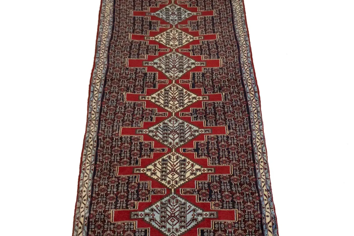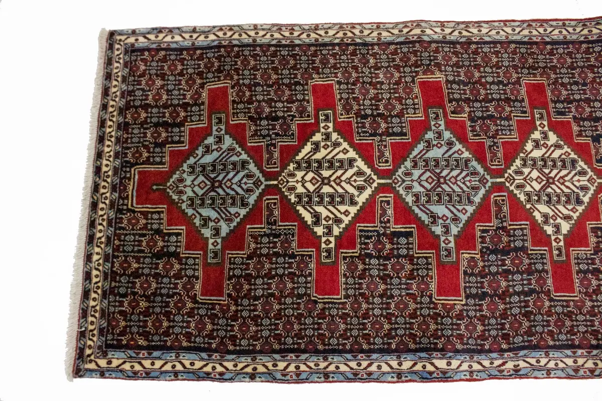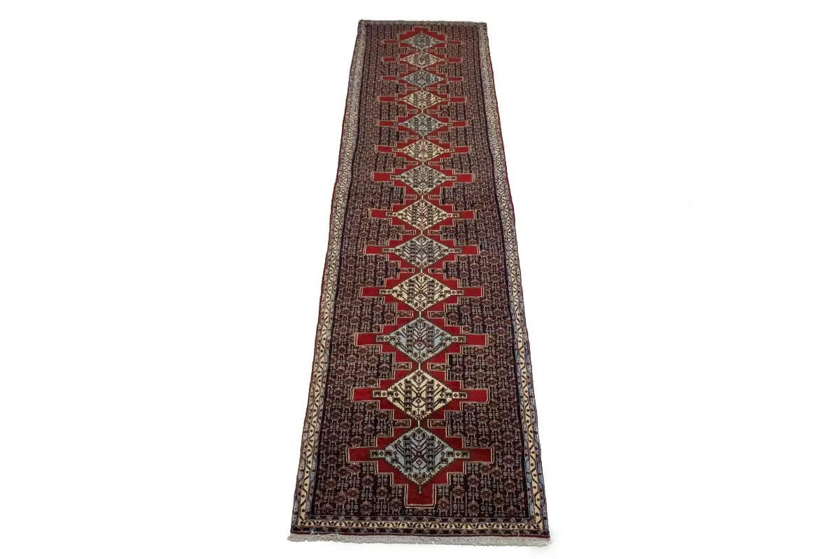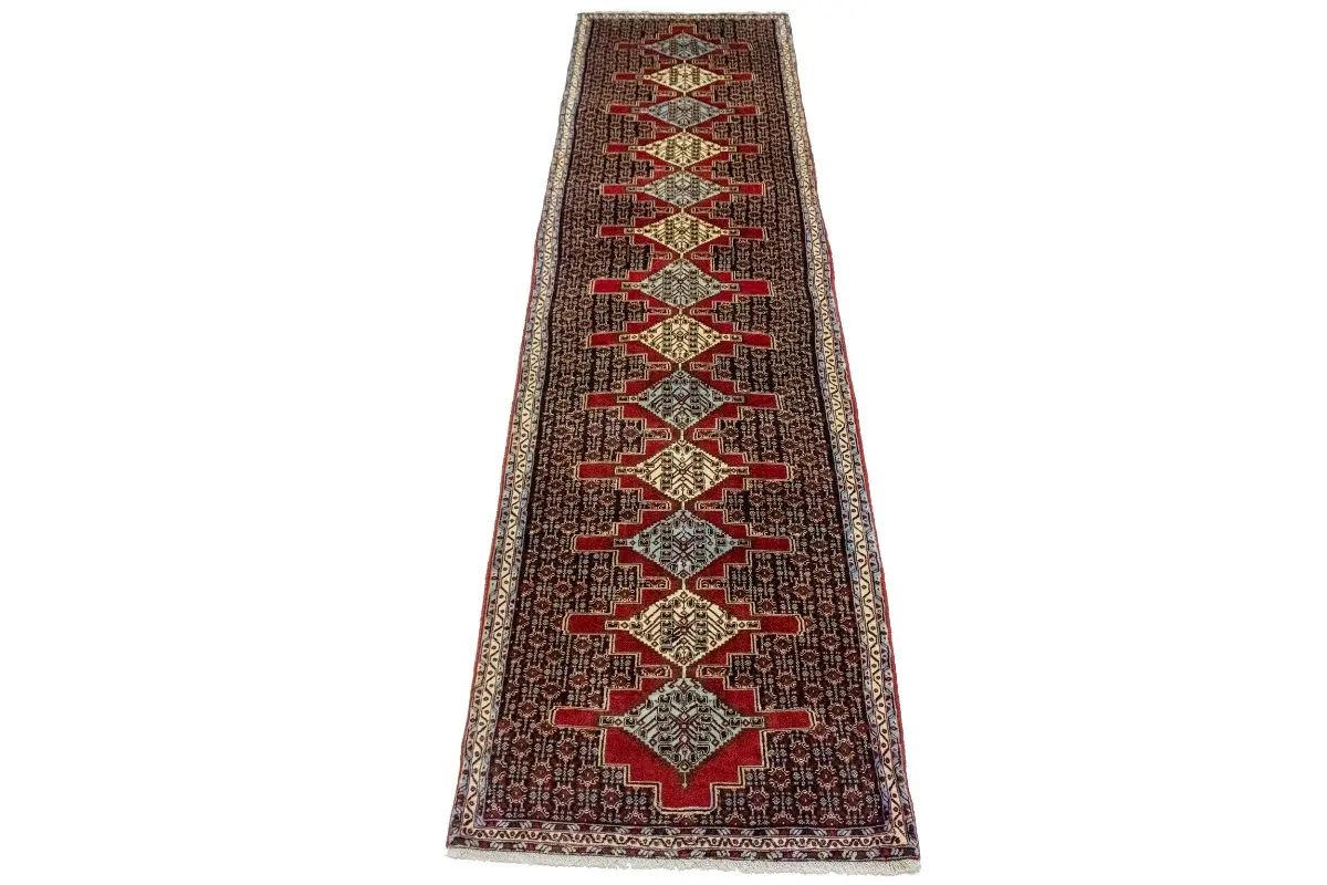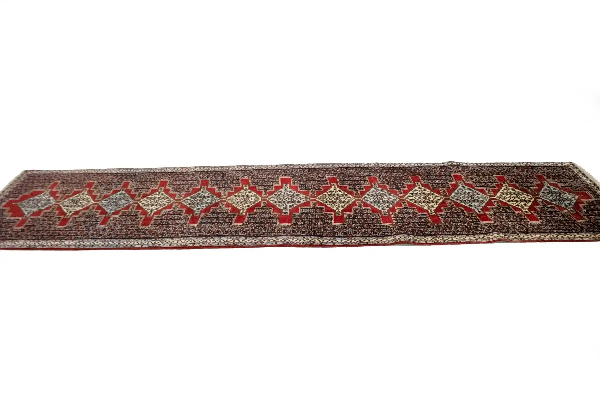 This original 3X13 vintage Persian runner was well-constructed by the hands of master weavers motivated by a variety of stunning artistic designs, to recreate the aged look of the exceptional piece with a richness of color and developed decorative background field. What set this geometric Oriental area runner from the others are the material and dye used (wool pile and cotton foundation), knot count, ancient designs, fantastic grades, and its regional historical connection: it has deep roots, from the story of the people who produced it to the meaning of the symbols and colors displayed across its canvas that have been praised for centuries. This home décor carpet will be completely cozy and inviting that never will go out of style! Also, this Oriental runner would be among your most valuable treasures, it is a great investment that increase in value over time, and it will last a lifetime because was woven with high-quality, all-natural wool; it won’t rip, tear, or shed. Eco-friendly, opulent yet affordable; this Persian rug will give you an extra pop of character to help define your home environment with elegance and warmth that will capture the eyes and attention of your audience (homeowners, designers, decorators, family and friends). RT-3539