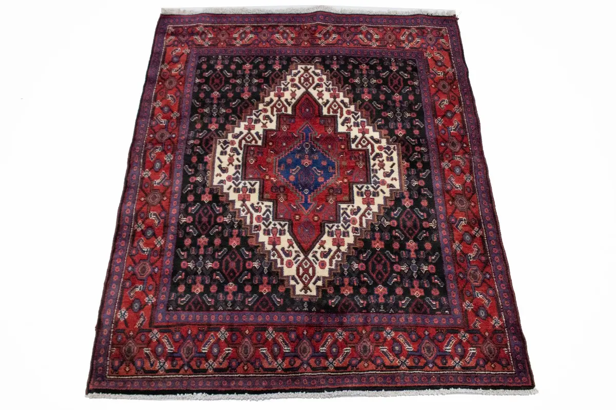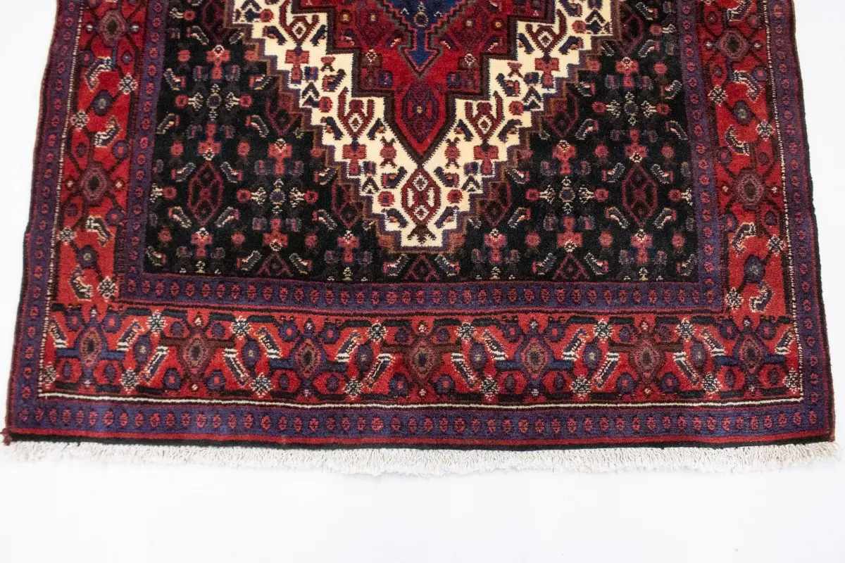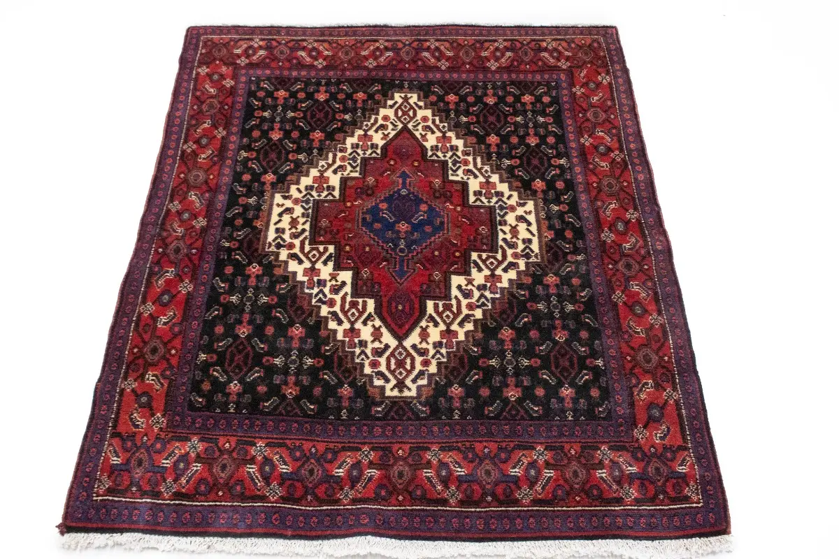 This genuine 4X5 navy blue vintage Persian rug was made by the hands of gifted weavers inspired by a variety of spectacular artistic designs, to recreate the aged look of the original piece with a richness of color and ornately patterned background field. What set this geometric Oriental area rug from the others are the material and dye used (wool pile and cotton foundation), knot count, ancient designs, fantastic grades, and its regional historical connection: it has deep roots, from the story of the people who produced it to the meaning of the symbols and colors displayed across its canvas that have been praised for centuries. This home decor carpet will be completely cozy and inviting that never will go out of style! Also, this Oriental rug would be among your most valuable treasures, it is a great investment that accrues value over time, and it will last for generations because was woven with high-quality, all-natural wool; it won’t rip, tear, or shed. Environmentally friendly, opulent yet affordable; this Persian rug will give you a thorough amount of character to help define your living space with elegance and warmth that will capture the eyes and attention of your audience (homeowners, designers, decorators, family and friends). RT-2033