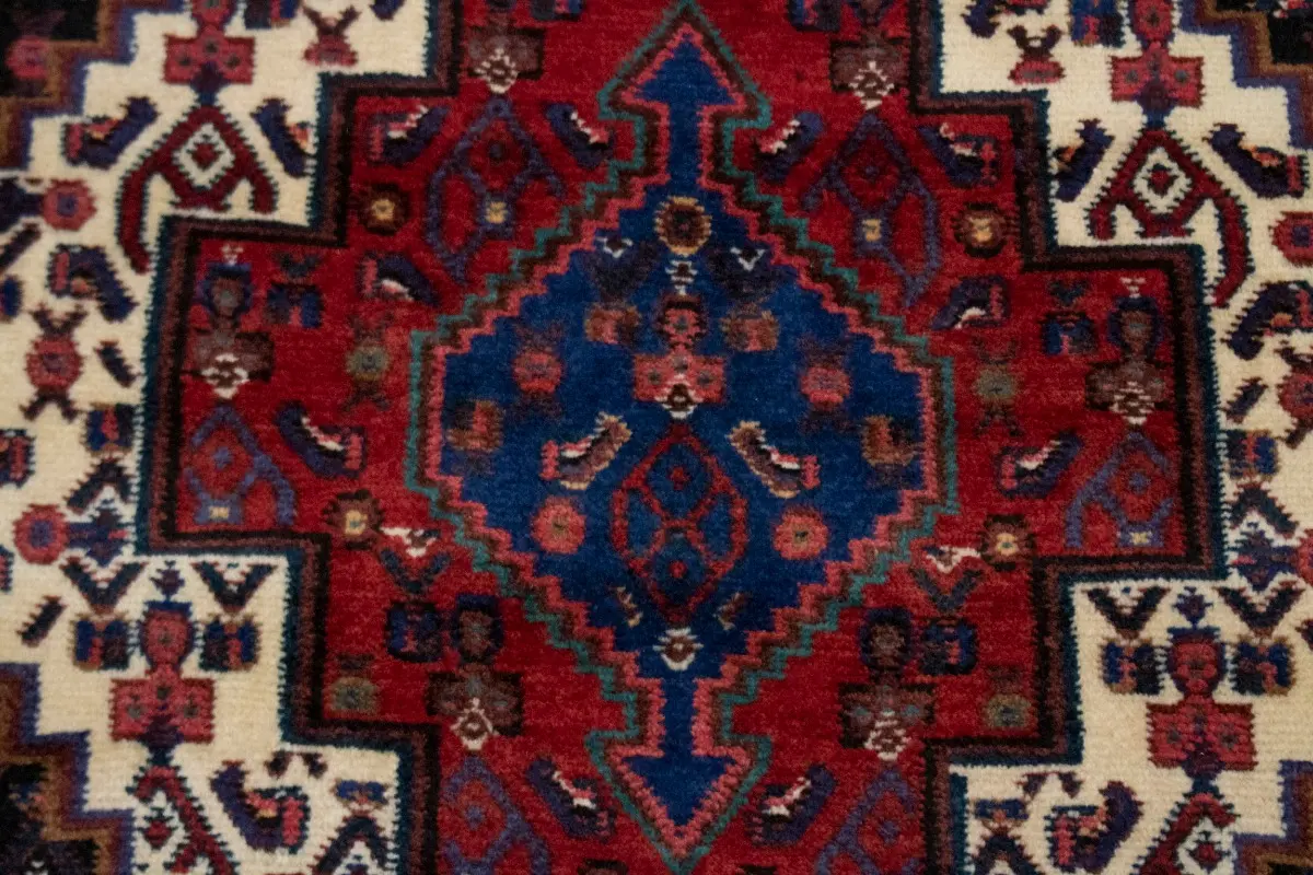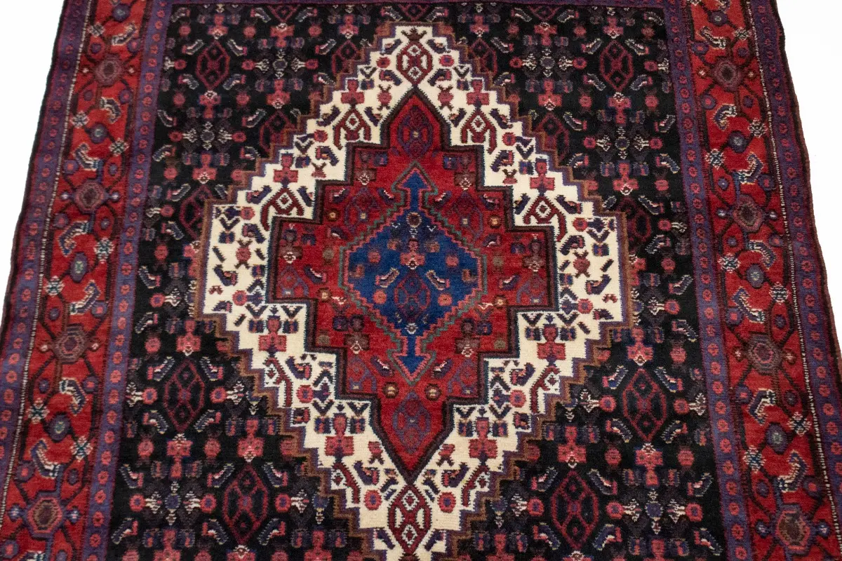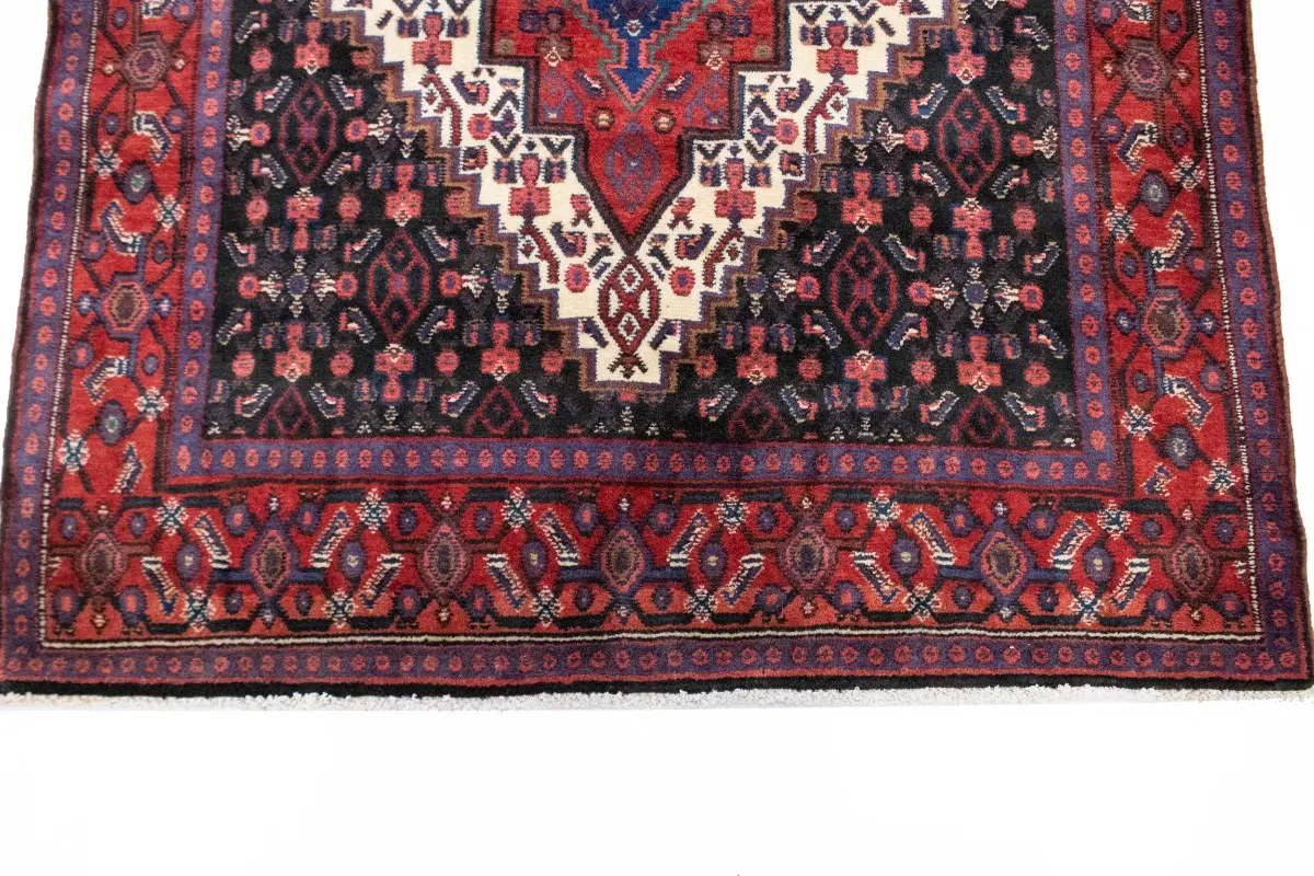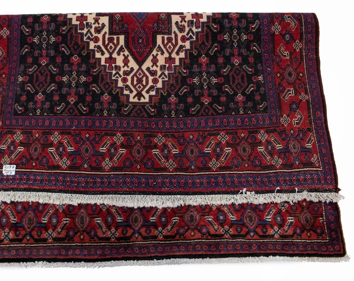 This genuine 4X5 navy blue vintage Persian rug was made by the hands of gifted weavers inspired by a variety of spectacular artistic designs, to recreate the aged look of the original piece with a richness of color and ornately patterned background field. What set this geometric Oriental area rug from the others are the material and dye used (wool pile and cotton foundation), knot count, ancient designs, fantastic grades, and its regional historical connection: it has deep roots, from the story of the people who produced it to the meaning of the symbols and colors displayed across its canvas that have been praised for centuries. This home decor carpet will be completely cozy and inviting that never will go out of style! Also, this Oriental rug would be among your most valuable treasures, it is a great investment that accrues value over time, and it will last for generations because was woven with high-quality, all-natural wool; it won’t rip, tear, or shed. Environmentally friendly, opulent yet affordable; this Persian rug will give you a thorough amount of character to help define your living space with elegance and warmth that will capture the eyes and attention of your audience (homeowners, designers, decorators, family and friends). RT-2033