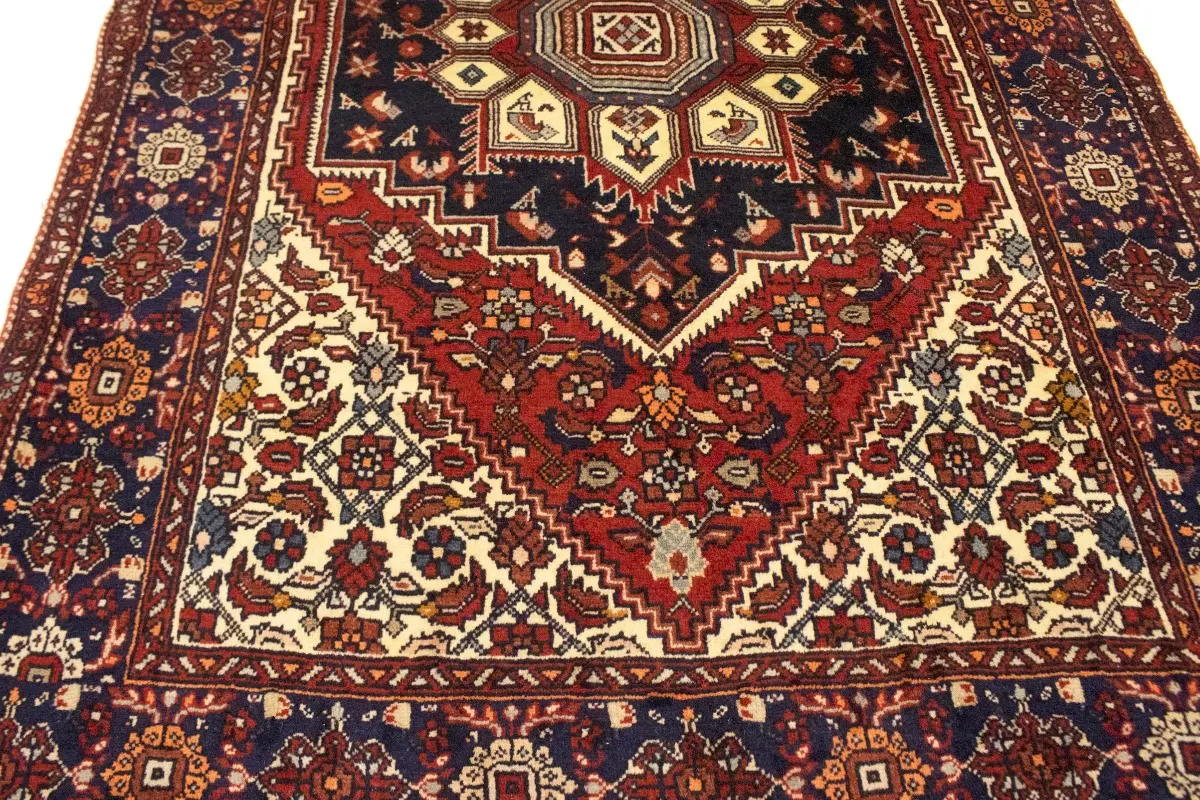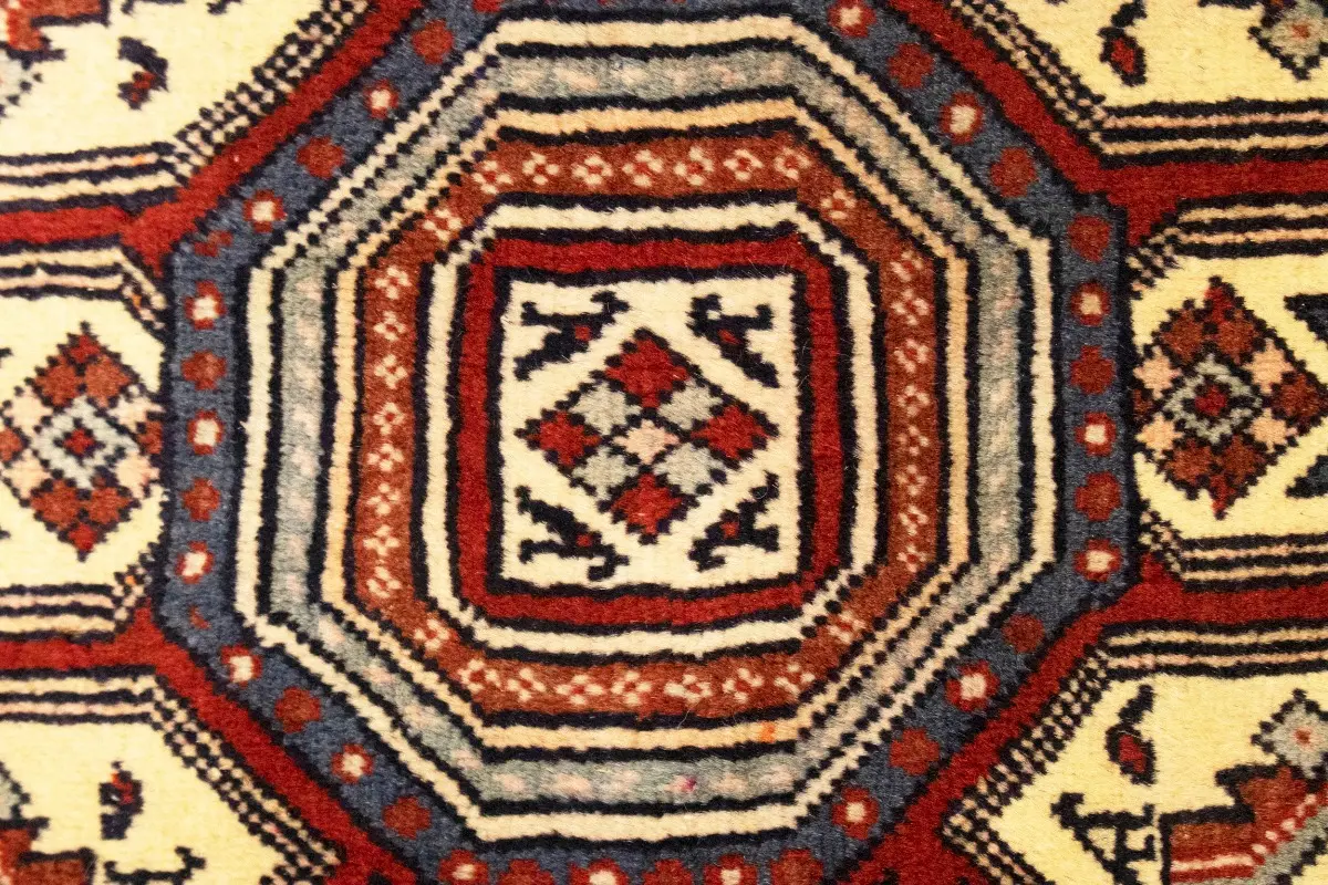 This authentic 3X5 cream vintage Persian rug was masterly knotted by the hands of weavers inspired by a variety of wonderful artistic designs, to recreate the aged look of the original piece with a richness of color and intricate patterned background field. What set this tribal Oriental area rug from the others are the material and dye used (wool pile and cotton foundation), knot count, antique designs, fantastic grades, and its regional historical connection: it has deep roots, from the story of the people who produced it to the meaning of the symbols and colors displayed across its canvas that have been praised for centuries. This home décor carpet will be completely cozy and inviting that never will go out of style! Also, this Oriental rug would be among your most valuable treasures, it is a great investment that accrues value over time, and it will last for generations because was woven with high-quality, all-natural wool; it won’t rip, tear, or shed. Environmentally friendly, opulent yet affordable; this Persian rug will give you a thorough amount of character to help define your living space with luxury and warmth that will capture the eyes and attention of your audience (homeowners, designers, decorators, family and friends). RT-1967