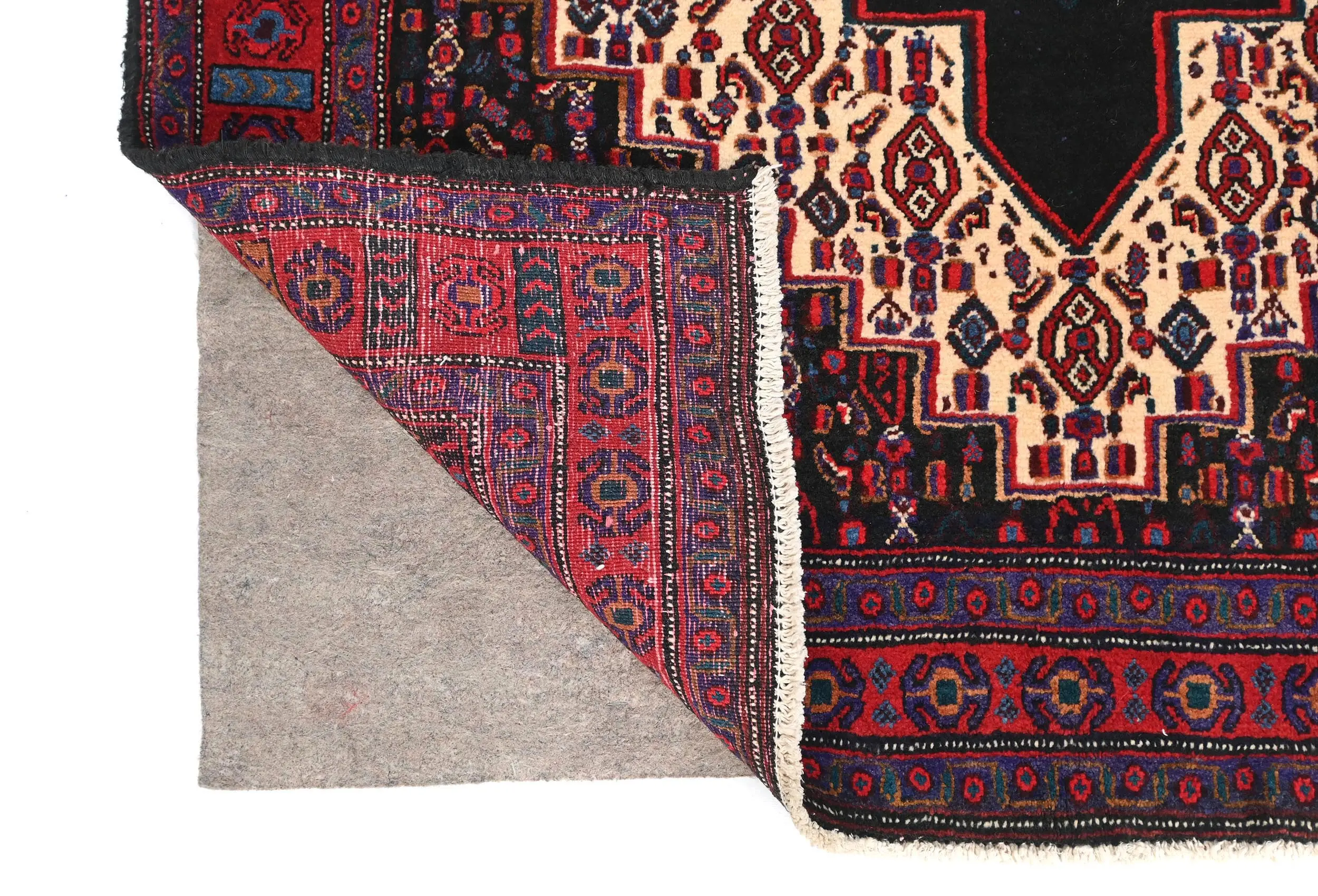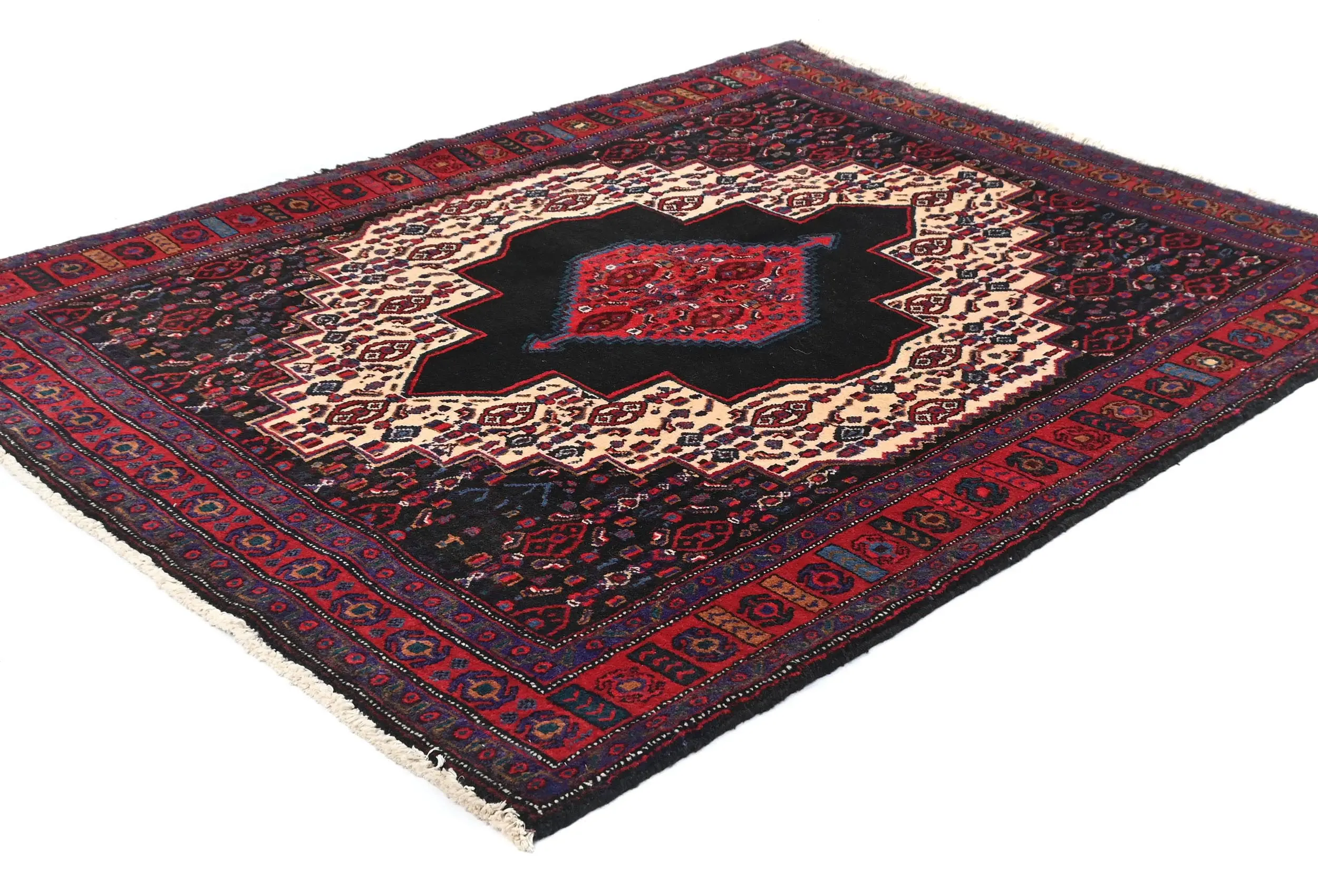 This genuine 4X5 Plum vintage Persian rug was made by the hands of gifted weavers inspired by a variety of spectacular artistic designs, to recreate the aged look of the original piece with a richness of color and ornately patterned background field. What set this geometric Oriental area rug from the others are the material and dye used (wool pile and cotton foundation), knot count, ancient designs, fantastic grades, and its regional historical connection: it has deep roots, from the story of the people who produced it to the meaning of the symbols and colors displayed across its canvas that have been praised for centuries. This home decor carpet will be completely cozy and inviting that never will go out of style! Also, this Oriental rug would be among your most valuable treasures, it is a great investment that accrues value over time, and it will last for generations because was woven with high-quality, all-natural wool; it won’t rip, tear, or shed. Environmentally friendly, opulent yet affordable; this Persian rug will give you a thorough amount of character to help define your living space with elegance and warmth that will capture the eyes and attention of your audience (homeowners, designers, decorators, family and friends). RT-7020